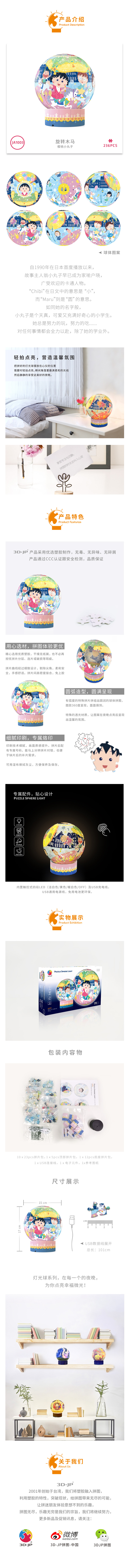 【折扣产品 不退换】6寸236片 灯光球拼图 塑料拼图 JA1003 樱桃小丸子-旋转木马