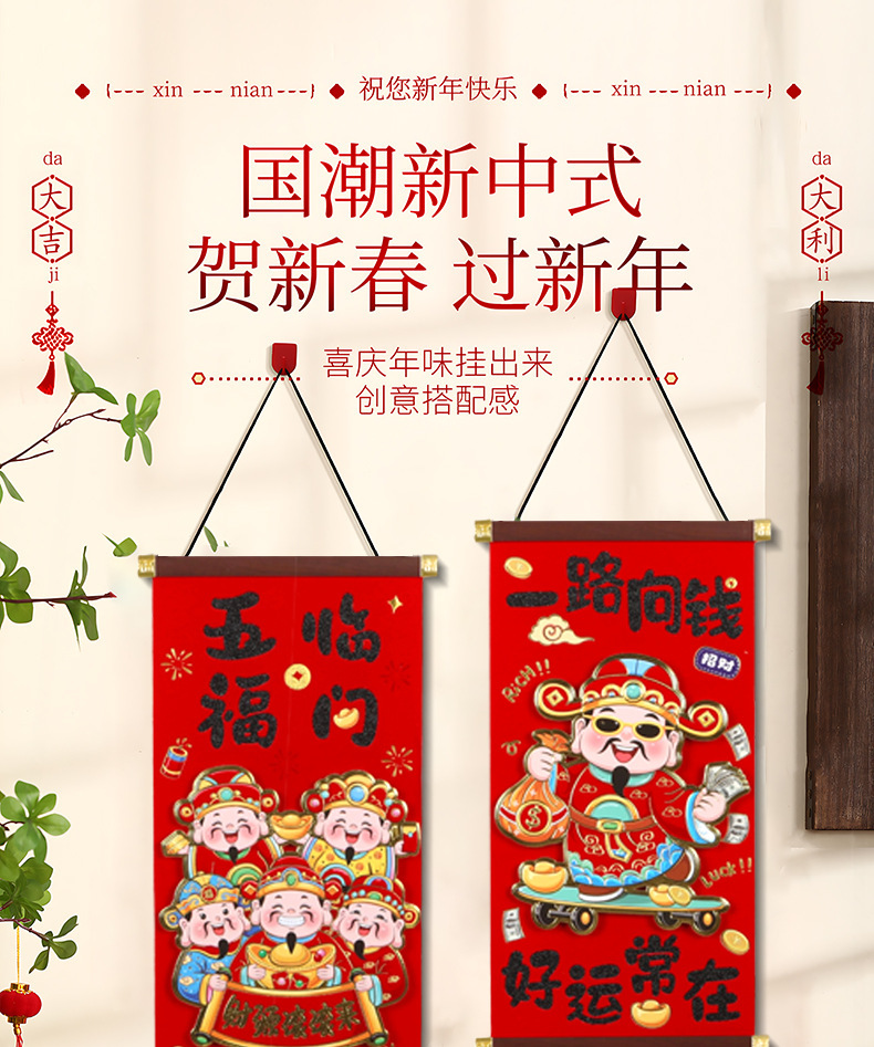 马年新年装饰挂件财神挂饰门挂墙挂2026过年节日喜庆氛围布置用品