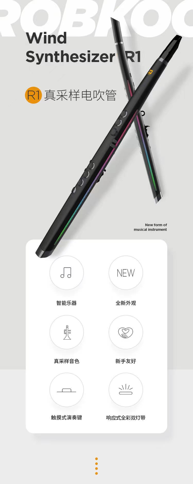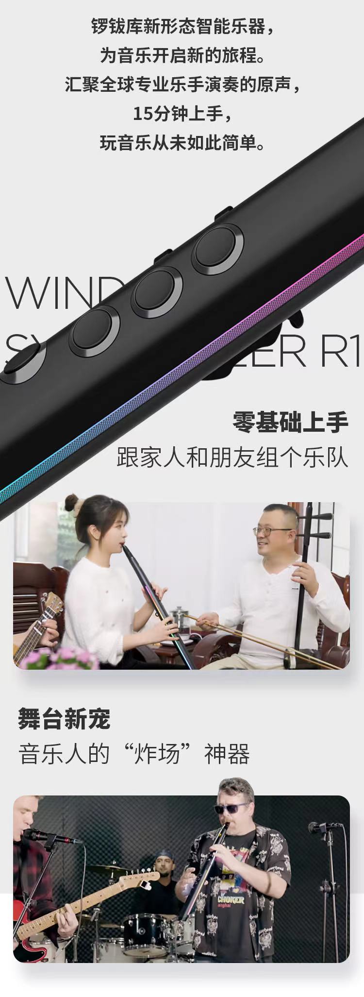 乐器不好学。好学的要么声音不够好,要么太像玩具。锣钹科技集合世界一流工业设计和音频科技,献上这款吹奏型的新形态电子乐器。全球顶尖的真实乐器原声、超大响应式全彩双灯带、老少皆宜的简易操作