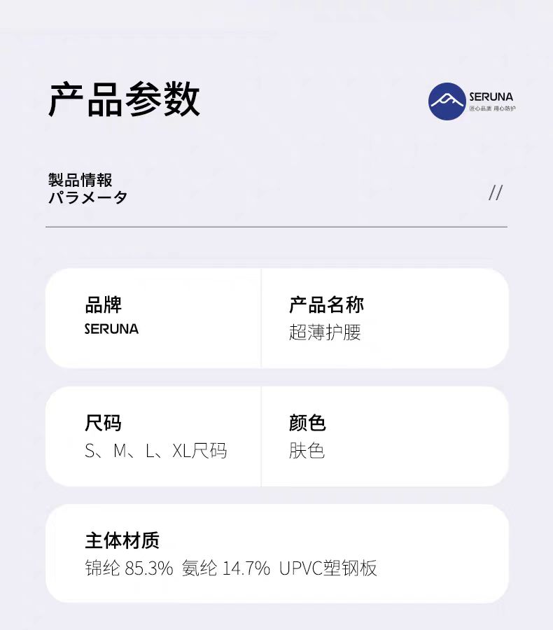 SERUNA专业运动护腰久坐神器轻薄亲肤款
