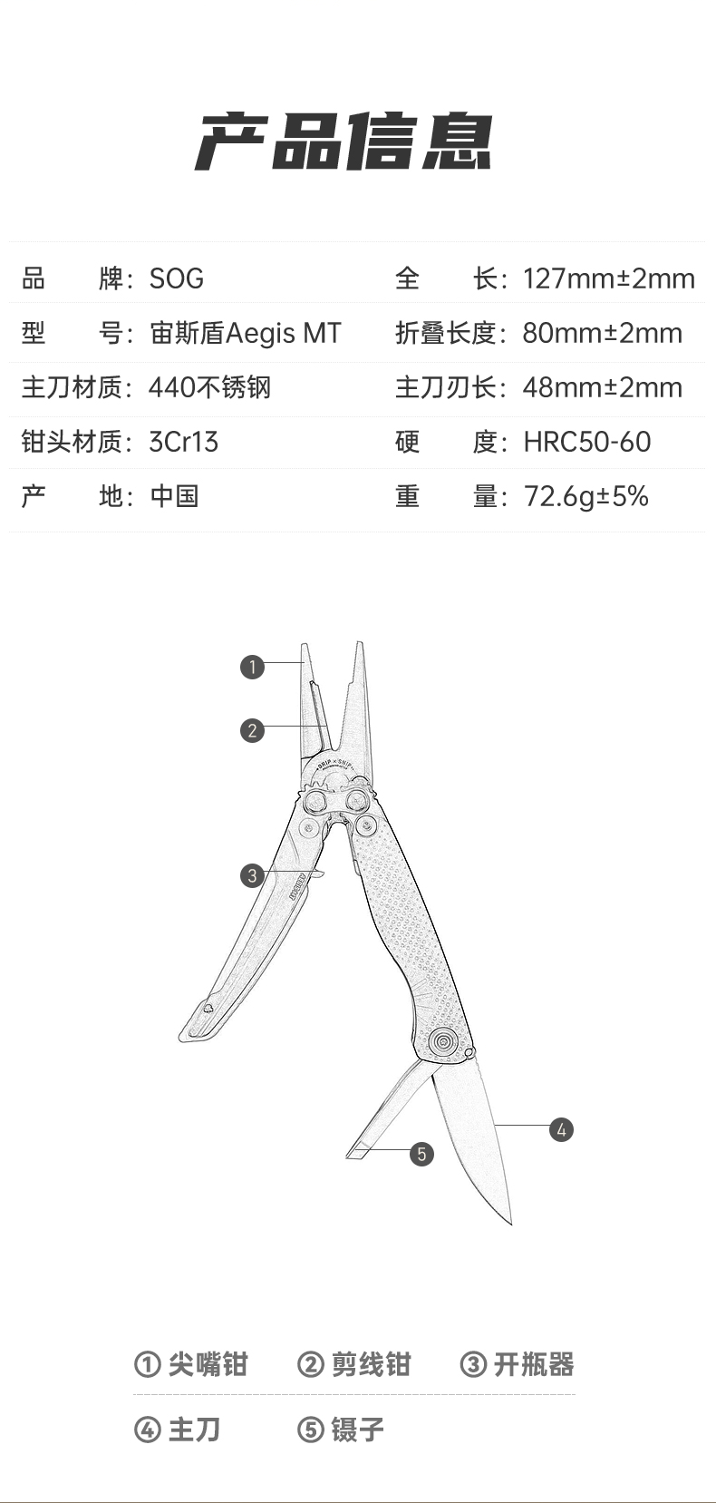 SOG索格 AEGIS MT 多功能钓鱼钳户外工具