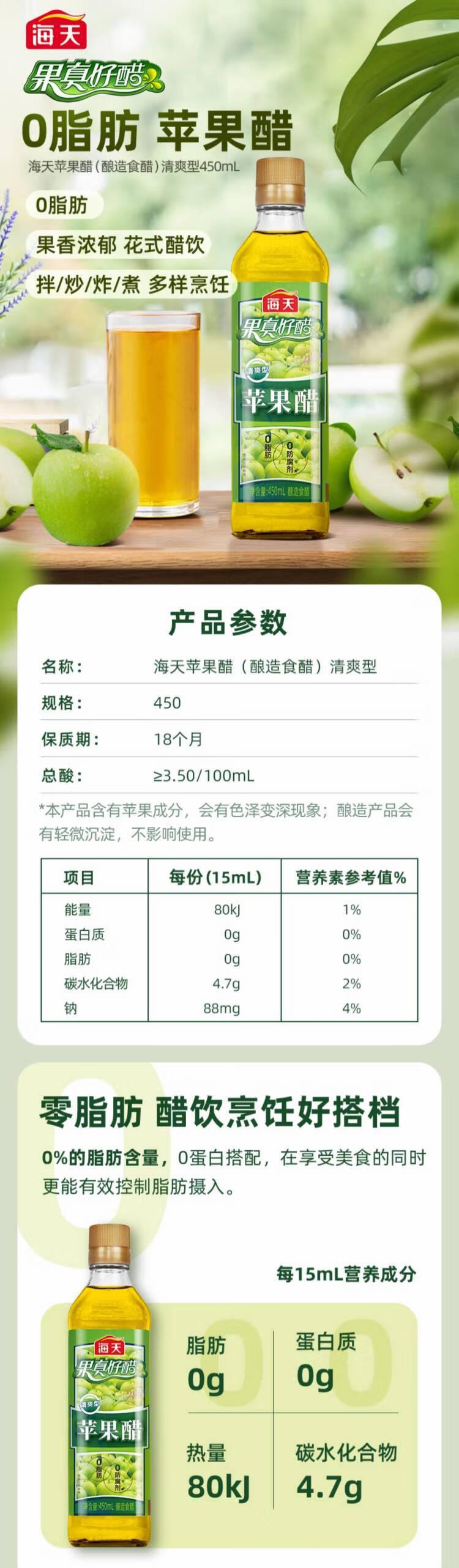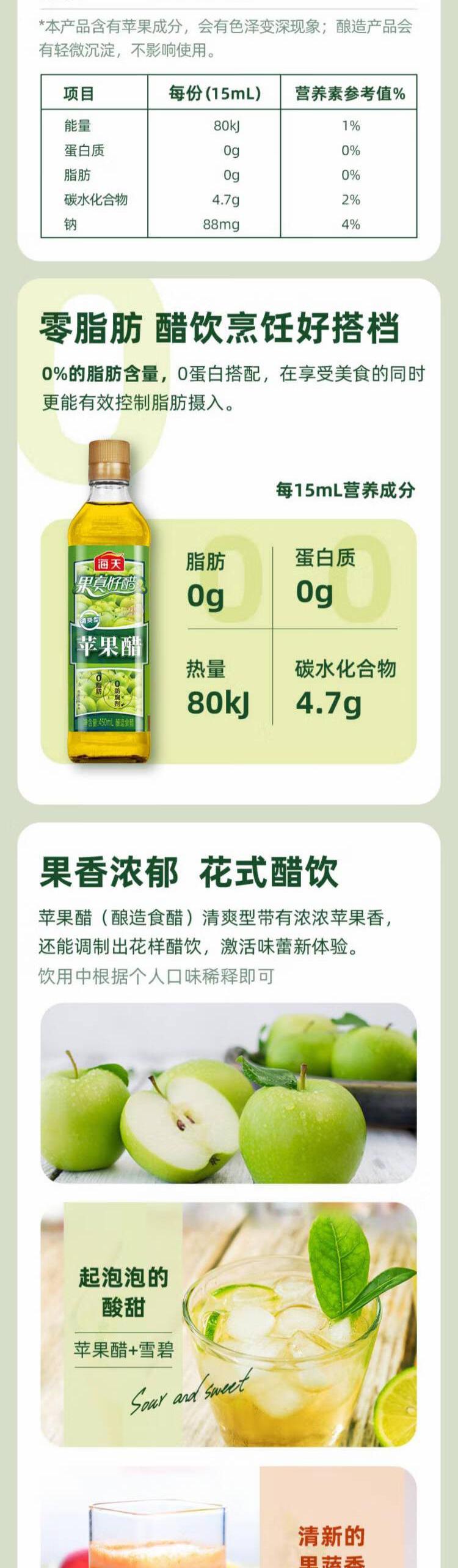 海天 苹果醋(清爽型)450mL*1瓶陈醋白醋新鲜健康美味 KJDF-20230524-05