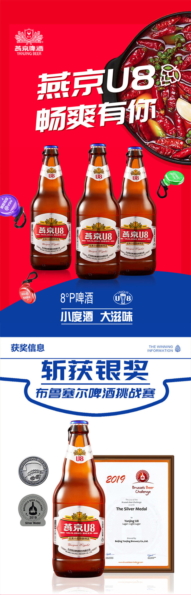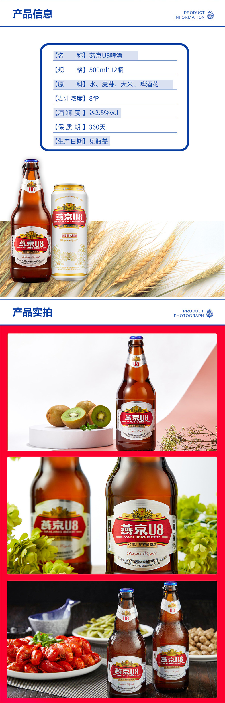 燕京啤酒U8棕瓶 整箱啤酒 500ml*6瓶