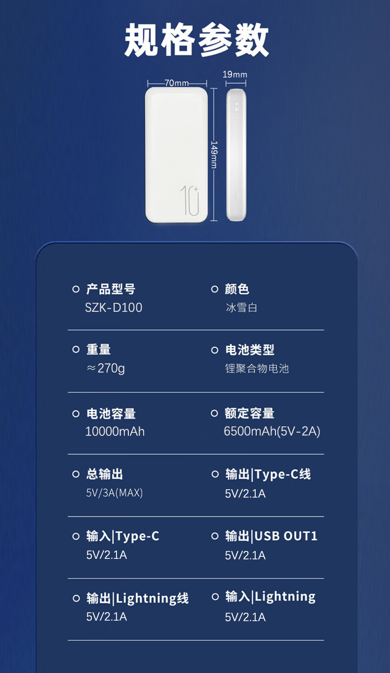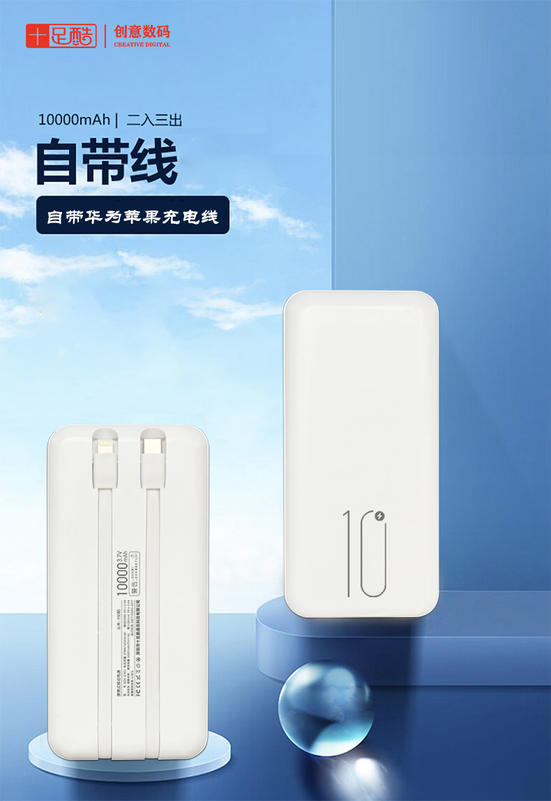 十足酷自带双线移动电源SZK-D100