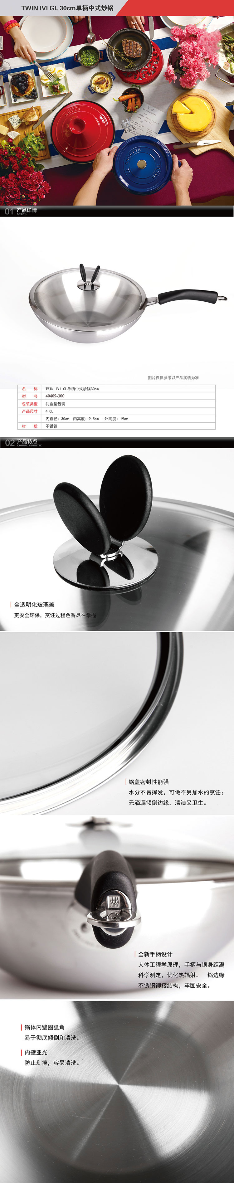 双立人ZW-C40 TWIN IVI GL 30cm单柄中式炒锅