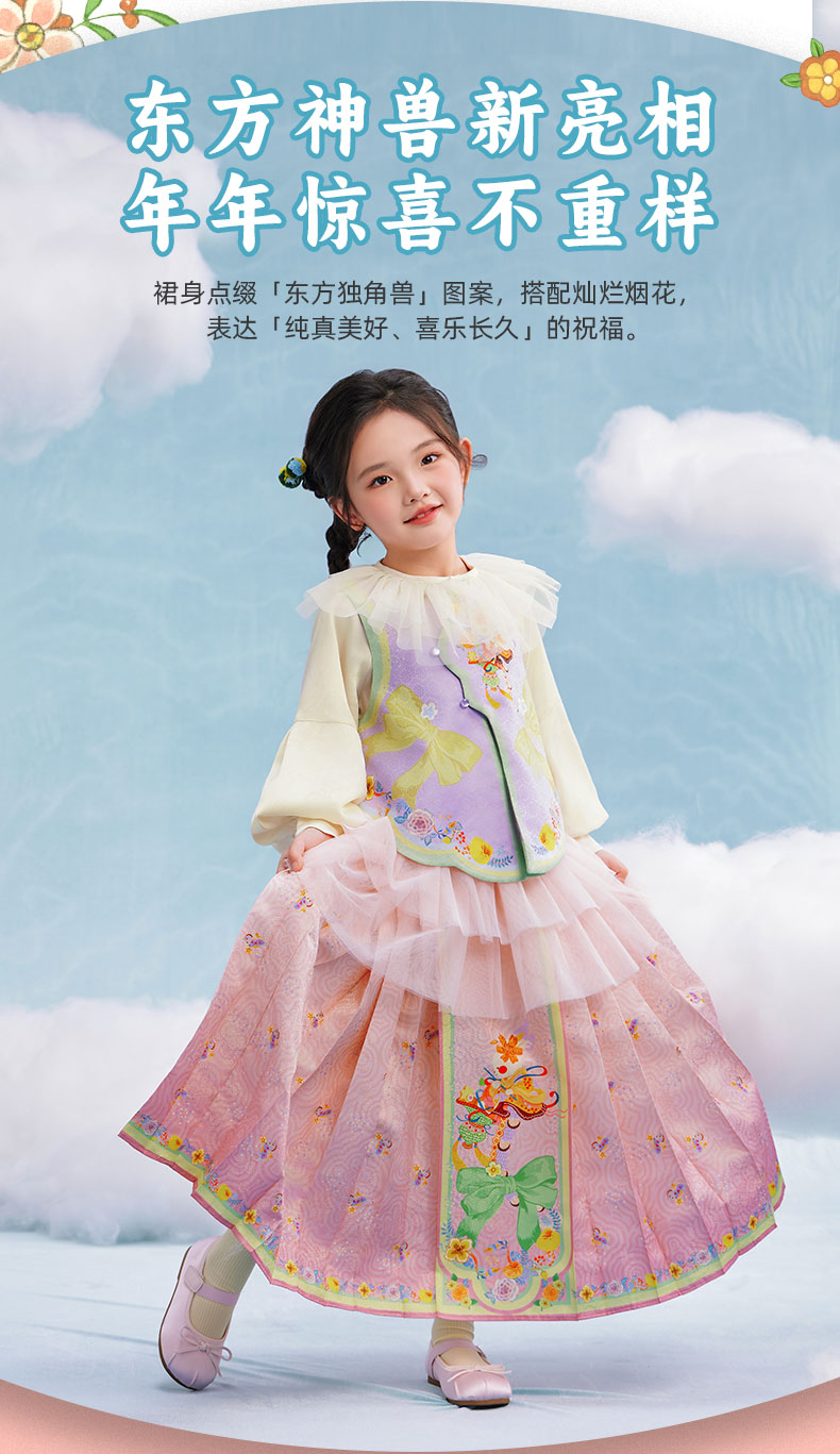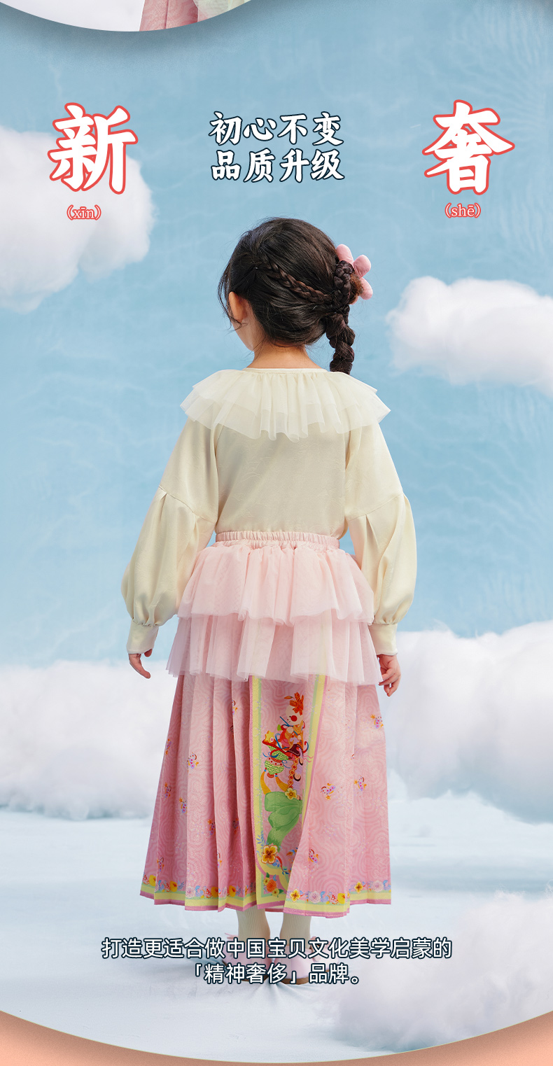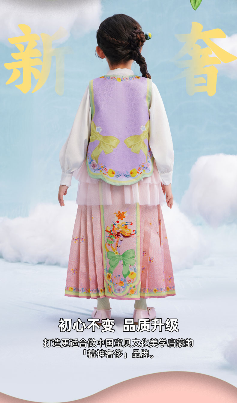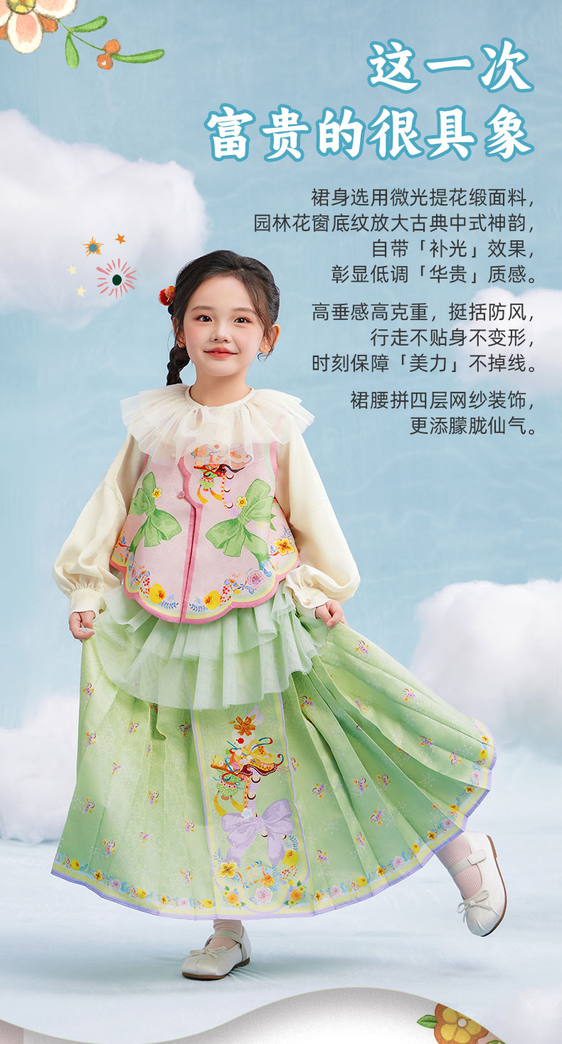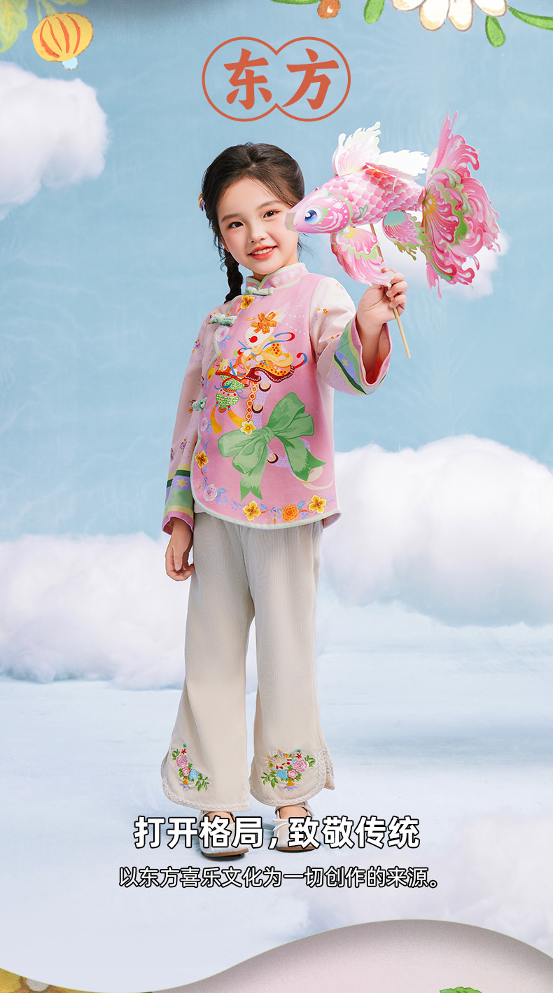 【童装服饰丨年衣 儿童国风汉服系列】衣身选用优质面料,微弹属性包容度高,质感丝滑细腻触感柔软,做工走线紧密, 款式设计潇洒灵动富有古典神韵,垂坠流畅更显优雅,上身挺括有型,可满足多场景造型需求