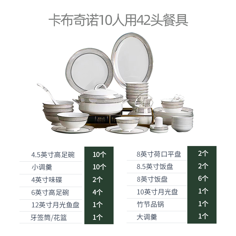 凡瑞斯骨瓷卡布奇诺10人用42头套装餐具乔迁送礼