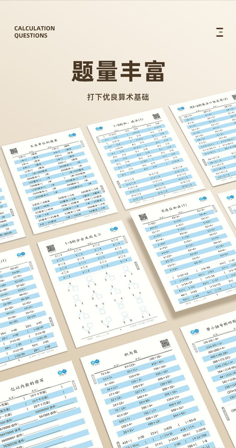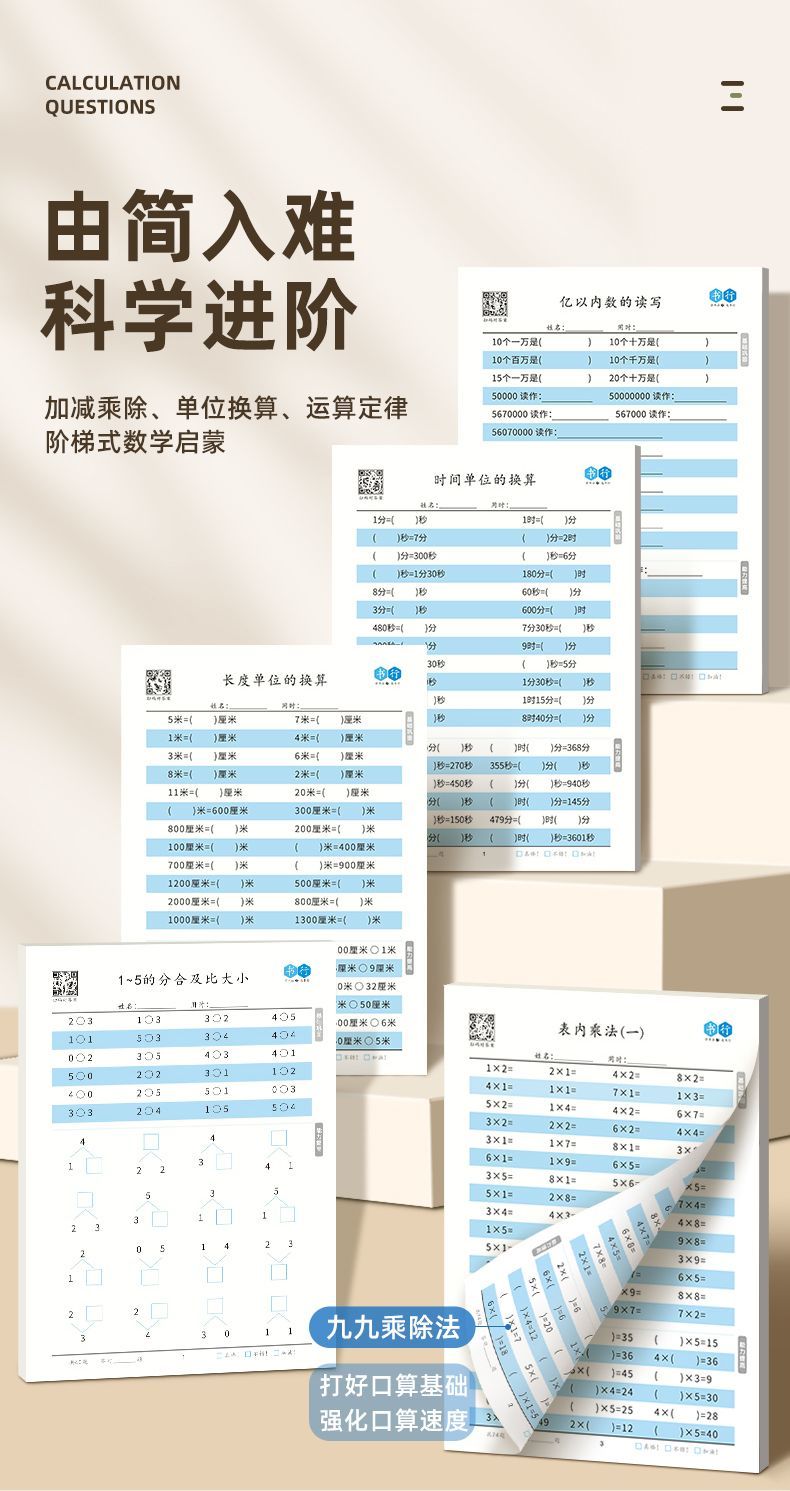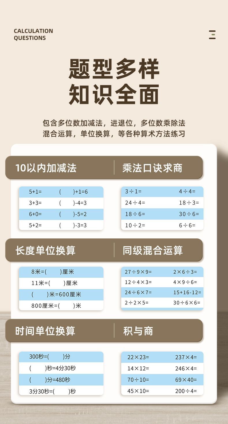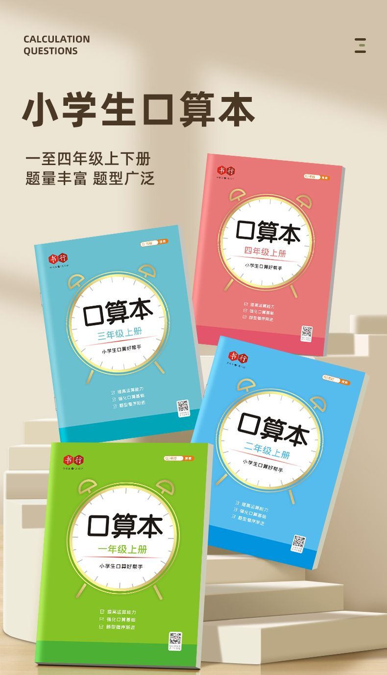 小学生口算本数学横式竖式计算小学生1-4年级加减乘除法速算数学混合运算练习题