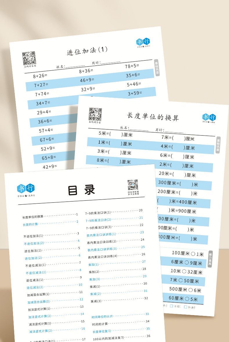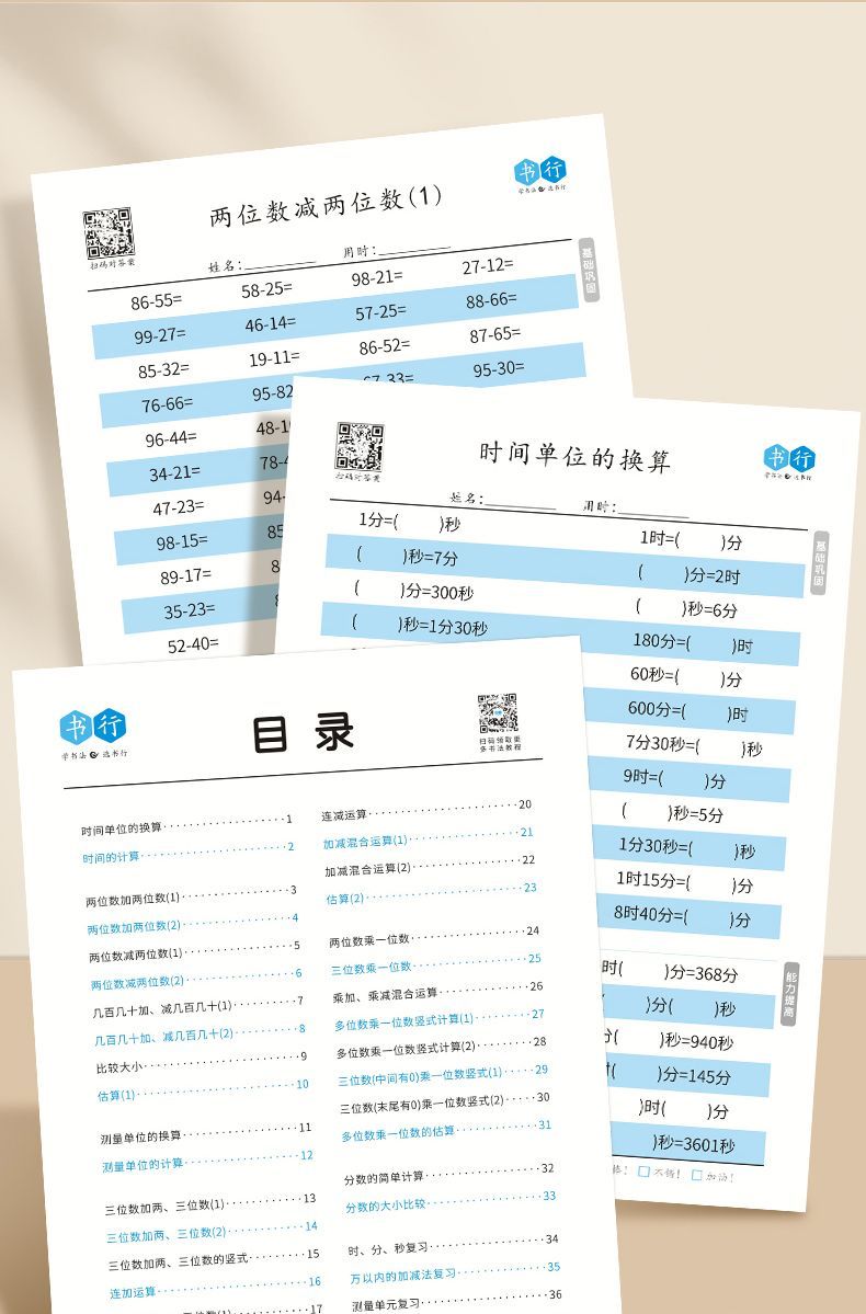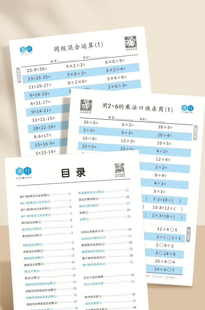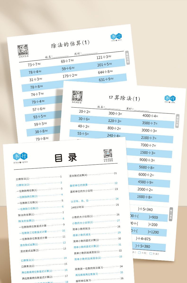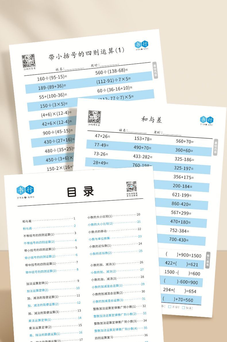 小学生口算本数学横式竖式计算小学生1-4年级加减乘除法速算数学混合运算练习题