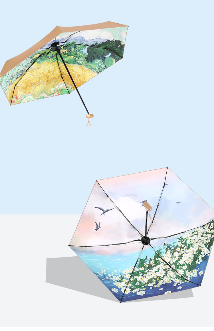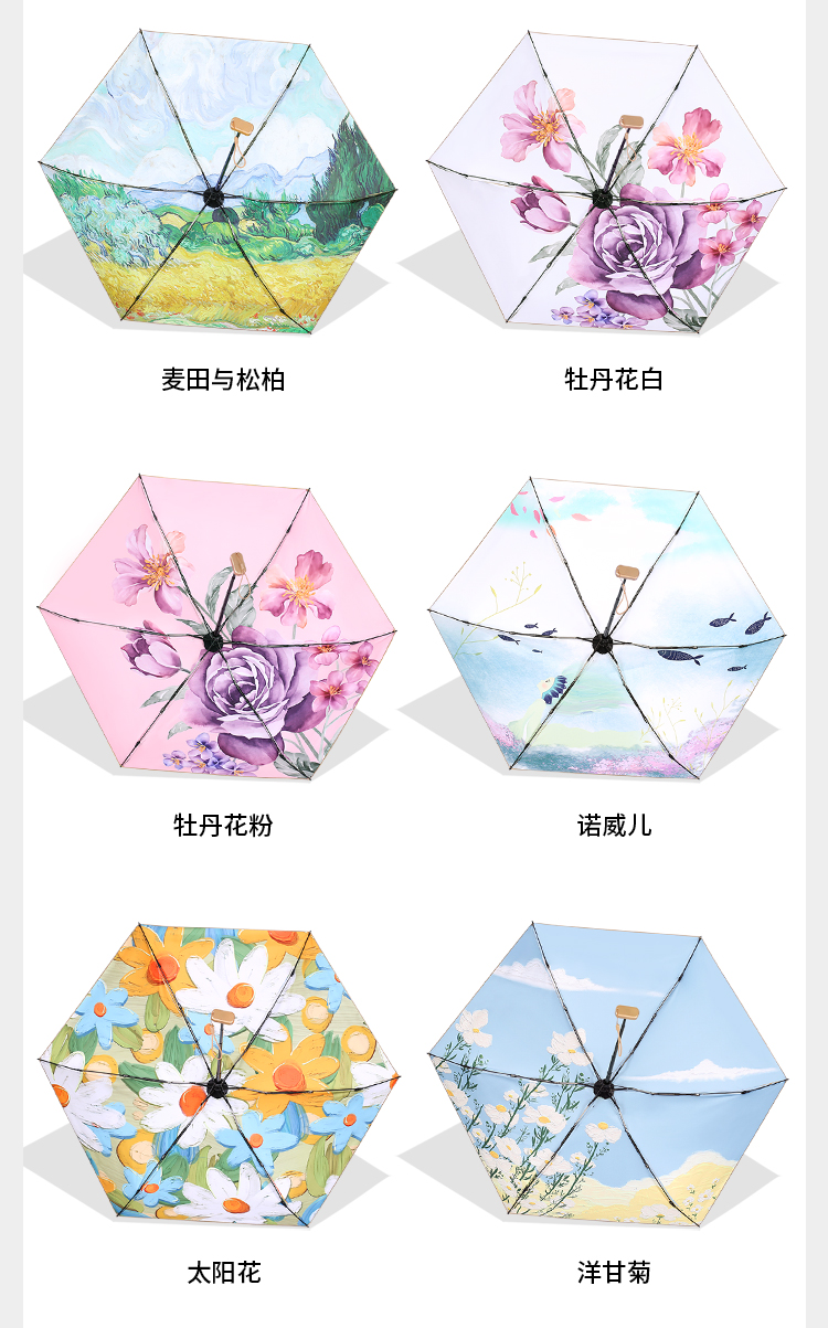 【恒鼎四季晴雨伞,六折金胶伞】15色可选,油画系列,好看。四季可用,掌心之物,方便携带,轻到无感,金胶更高级更扛风更防晒~