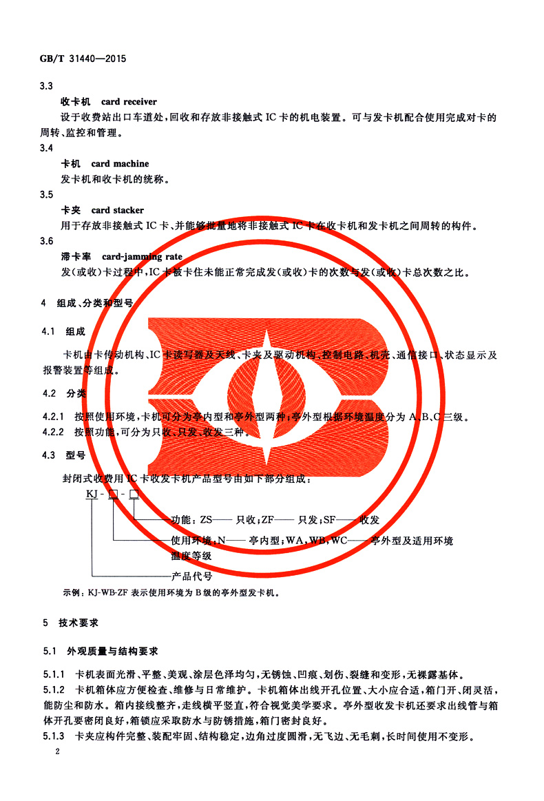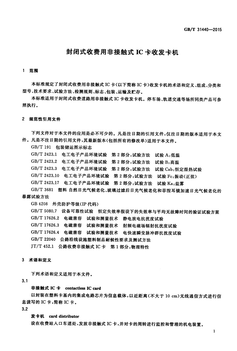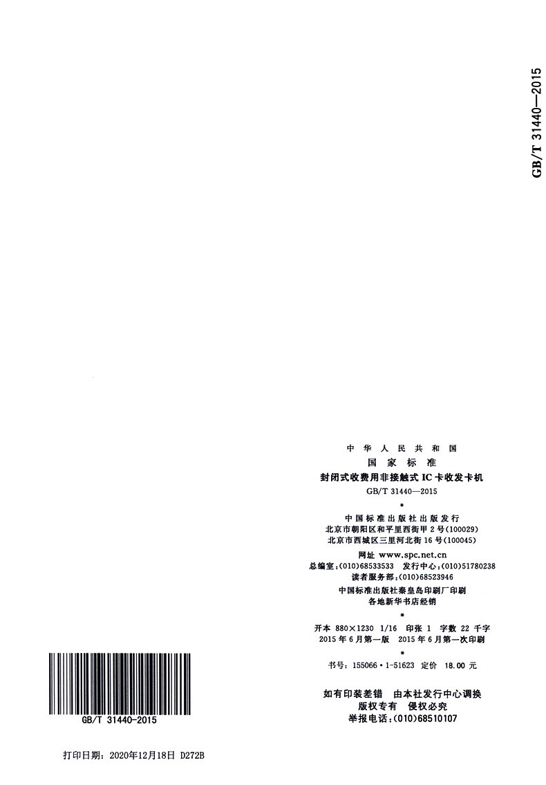 书名:速印不退 GB/T 31440-2015 封闭式收费用非接触式IC卡收发卡机