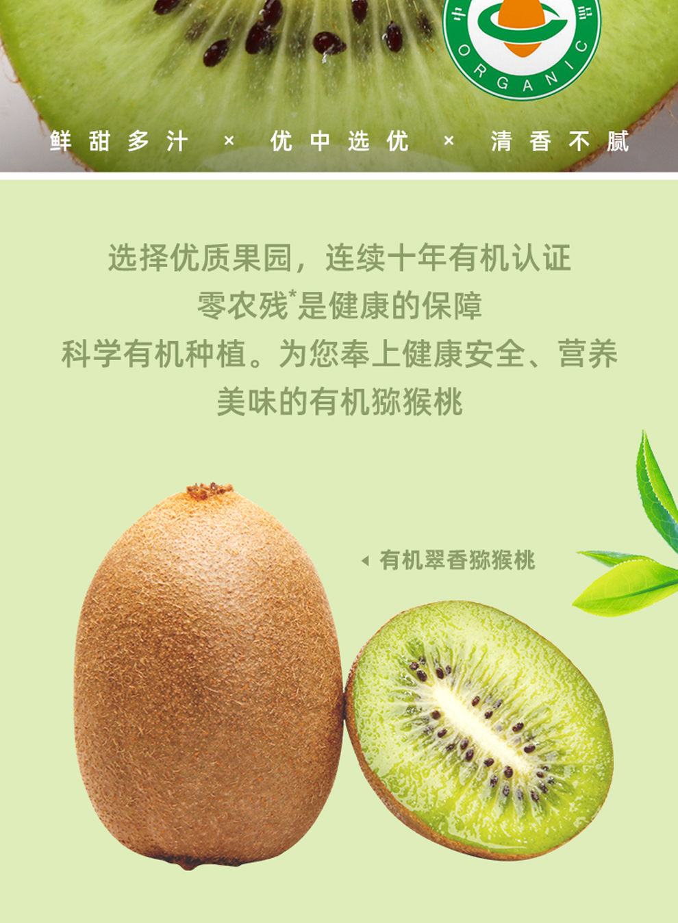 恋奇异有机瑞玉猕猴桃 有机奇异果基地十年有机认证种植水果4.8斤装【京东快递】