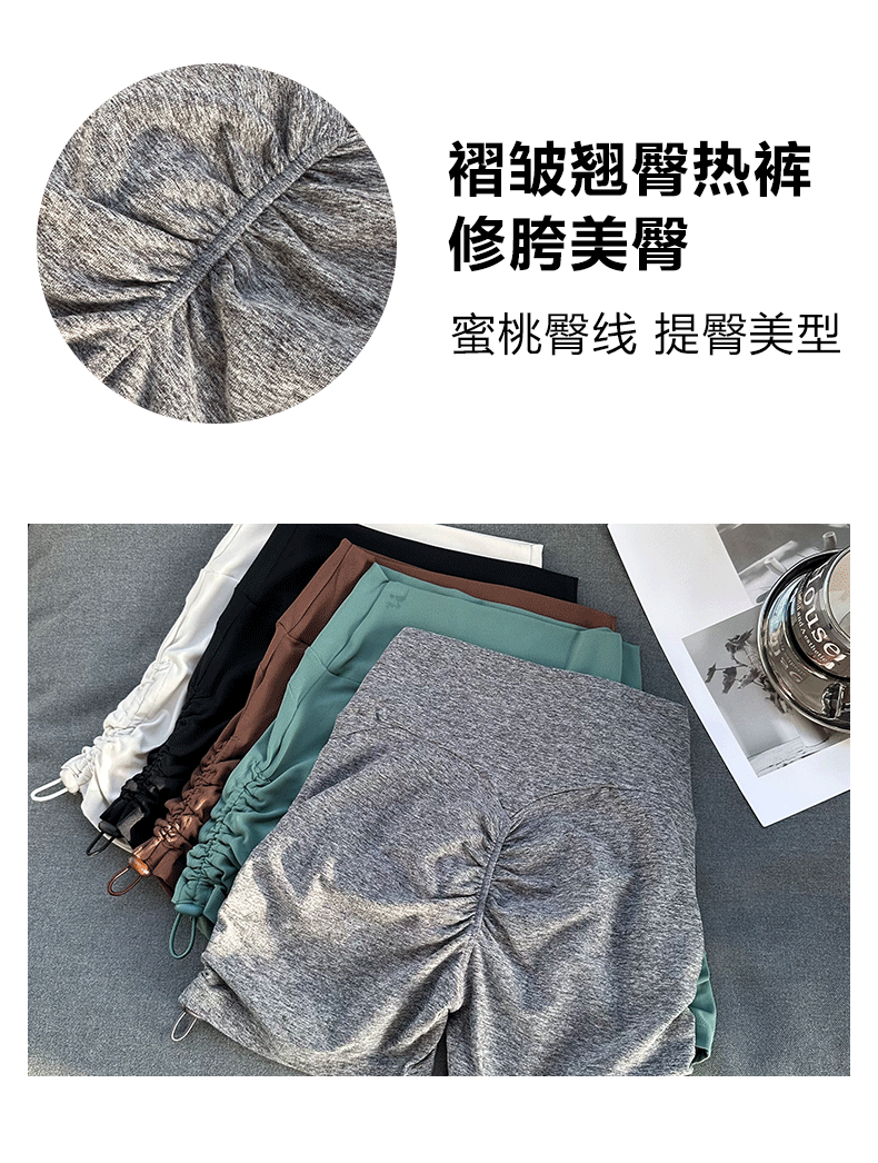 beemen夏季轻薄 蜜桃臀三分裤 瑜伽裤 抽绳运动短裤 提臀健身短裤女夏