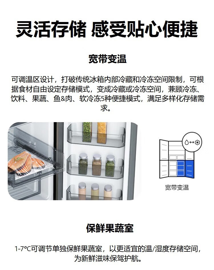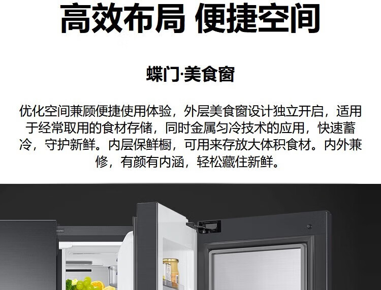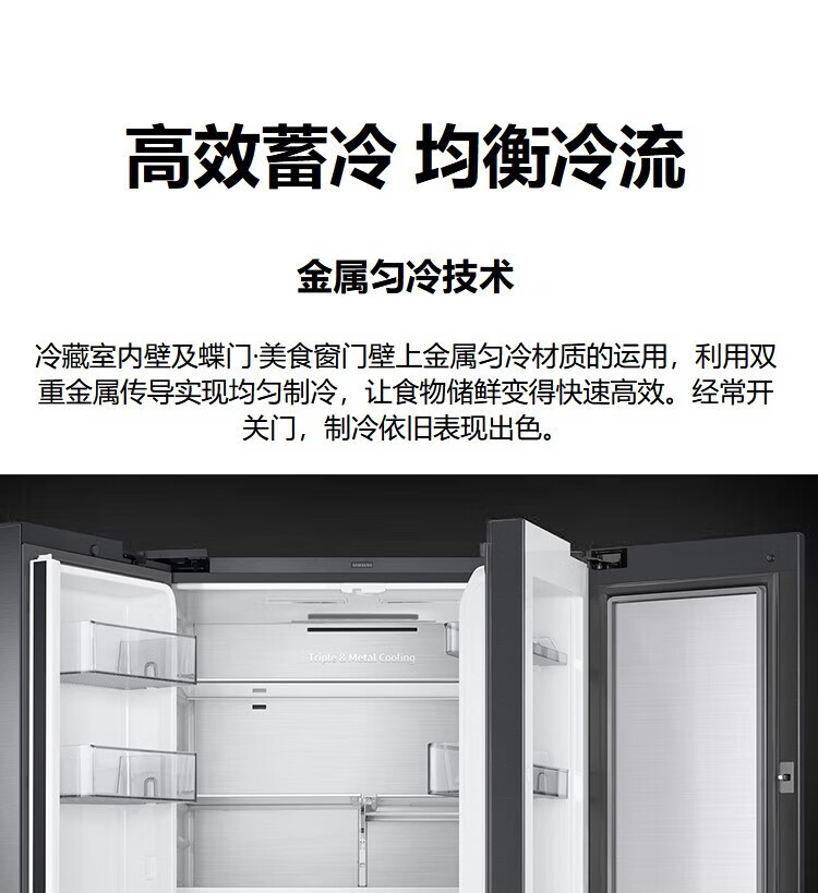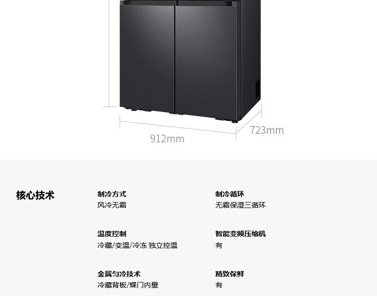 三星(SAMSUNG)RF65A93T0SG/SC 647L无霜风冷智能变频金属匀冷保湿三循环四开门电冰箱 一级能效 典雅黑 企业业务