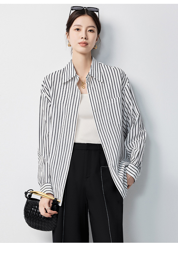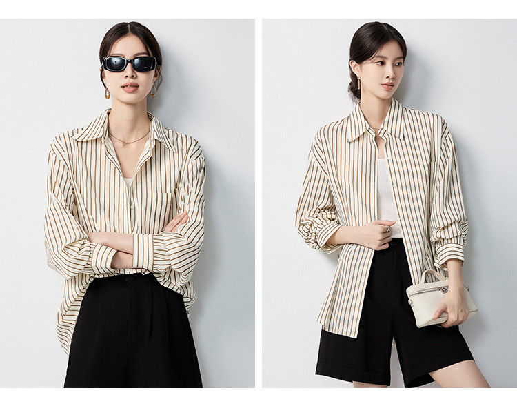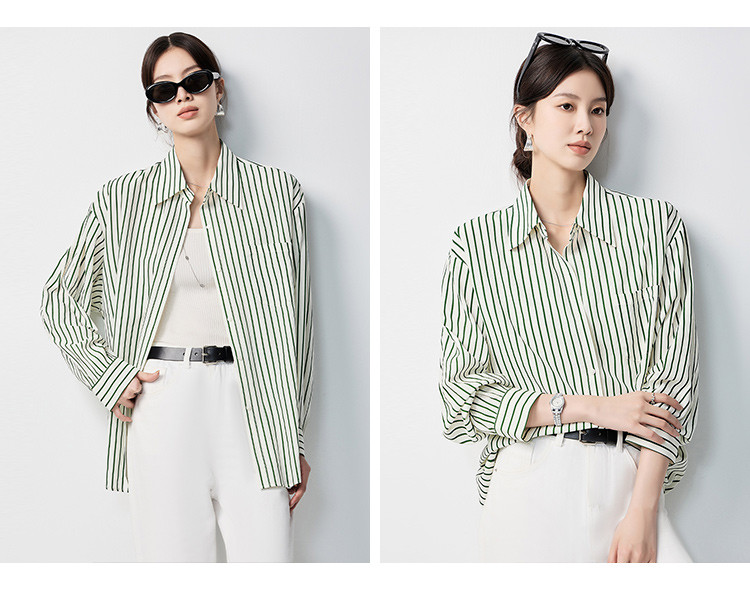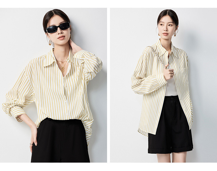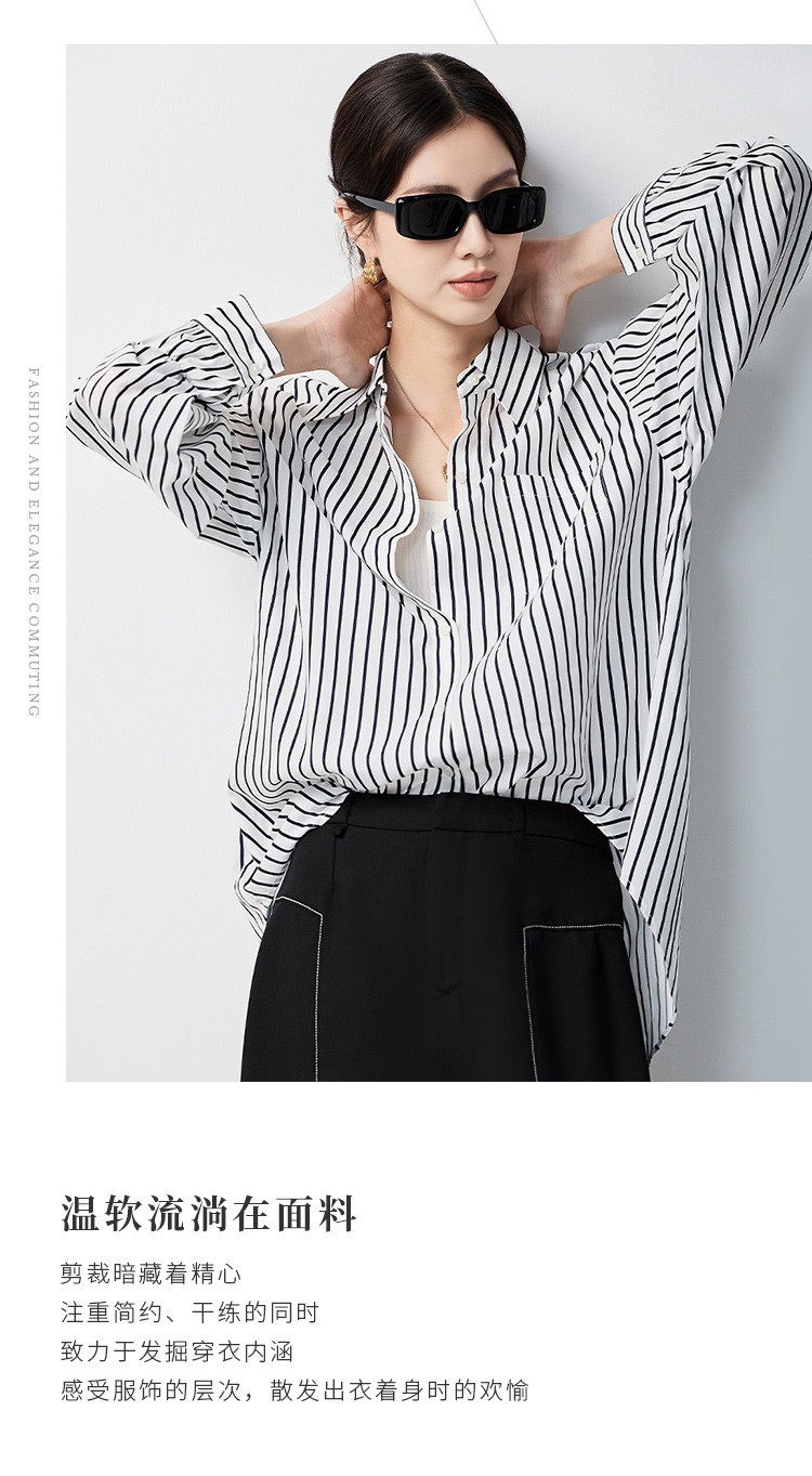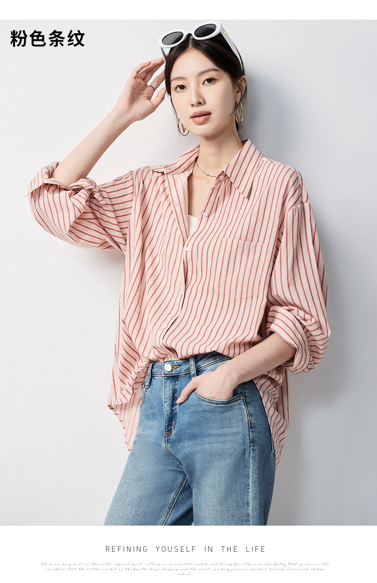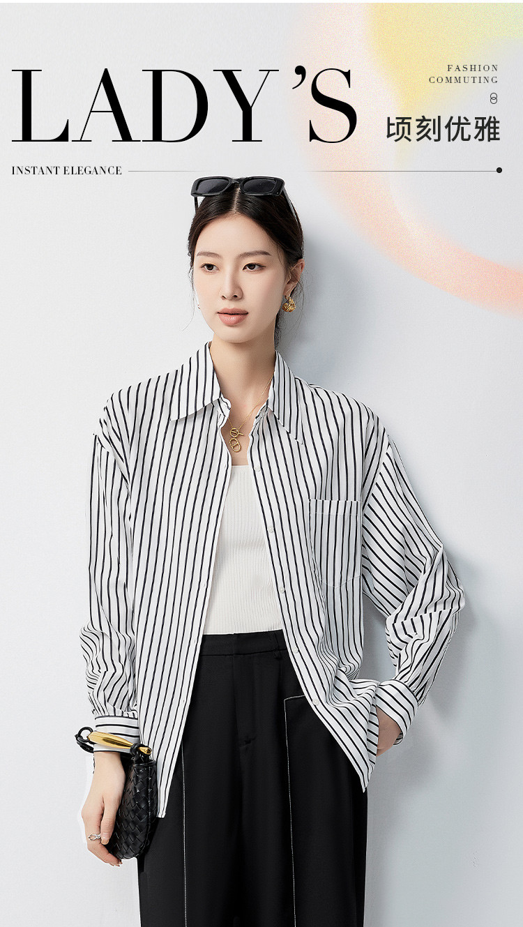 【多色可选&简约条纹】罗蒙女士长袖衬衫商务休闲大众日常衬衣女