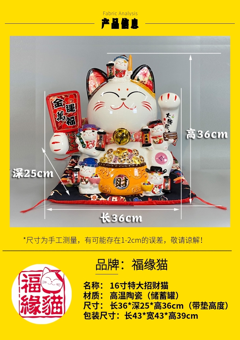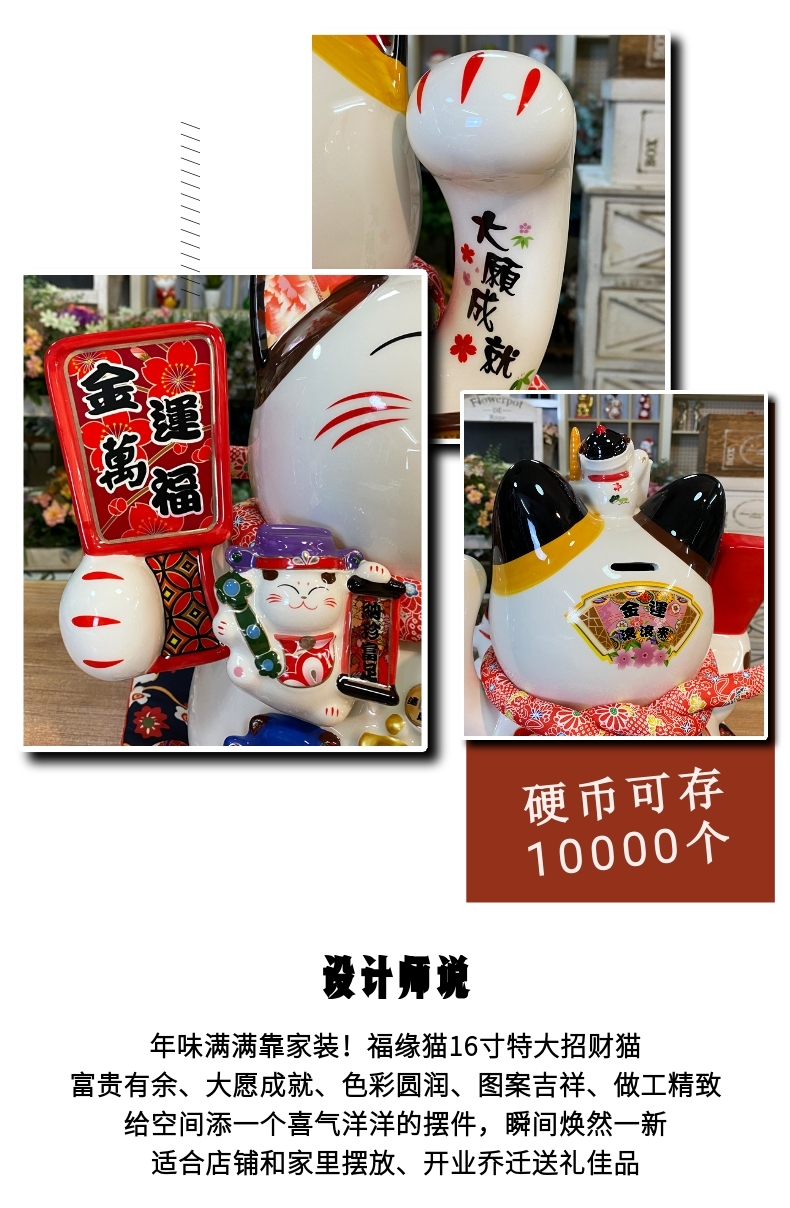 K-FYM-16寸招财猫存钱罐 开业摆件礼品居家玄关创意陶瓷