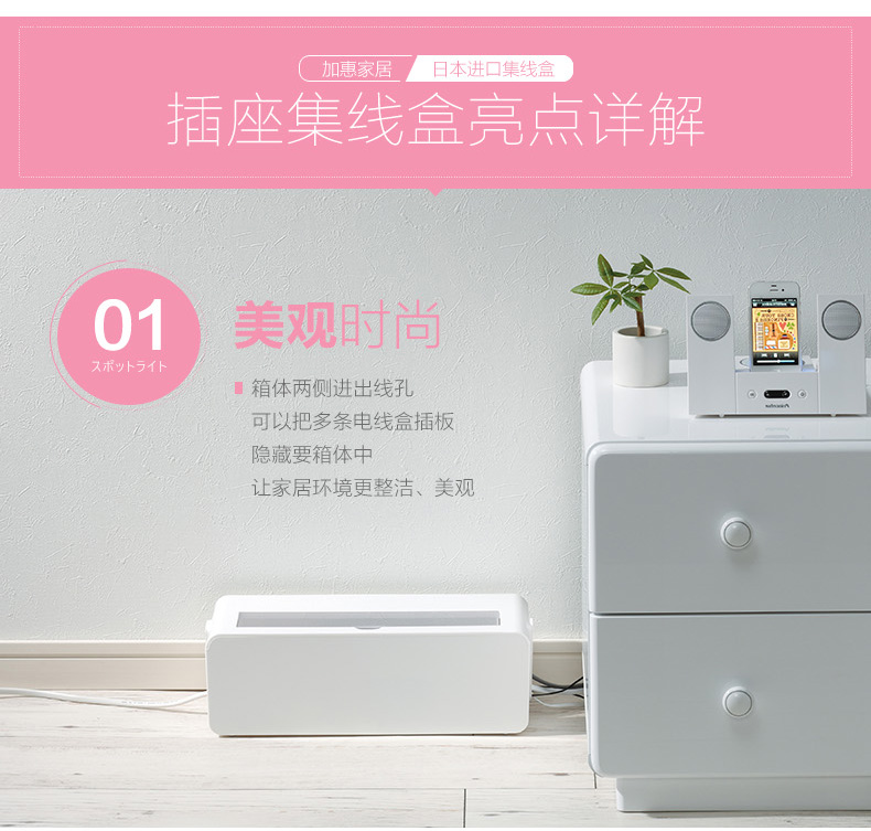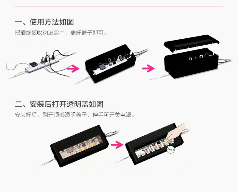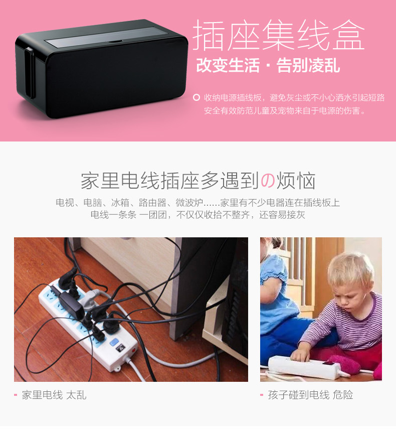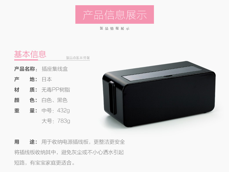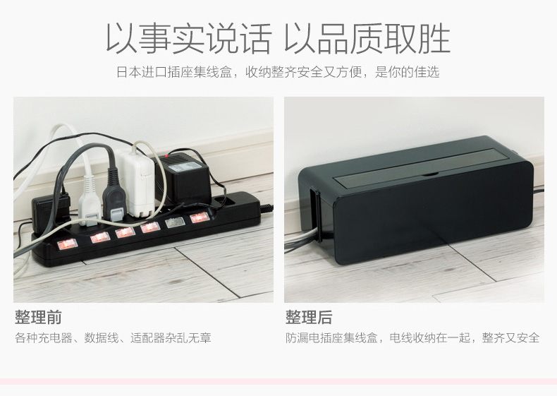 日本进口inomata电线收纳盒插座集线盒拖板集线器插头电源理线盒