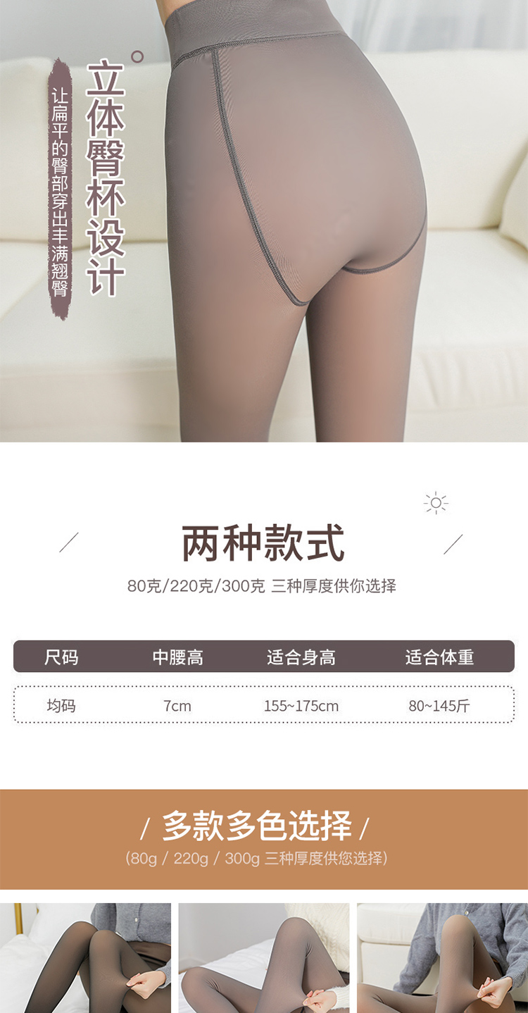 好物推荐【修身显瘦~时尚高品质!】2021秋冬新款高腰假透肉打底裤 性感空姐灰高颜值连裤袜加绒外穿保暖光腿加厚连裤袜