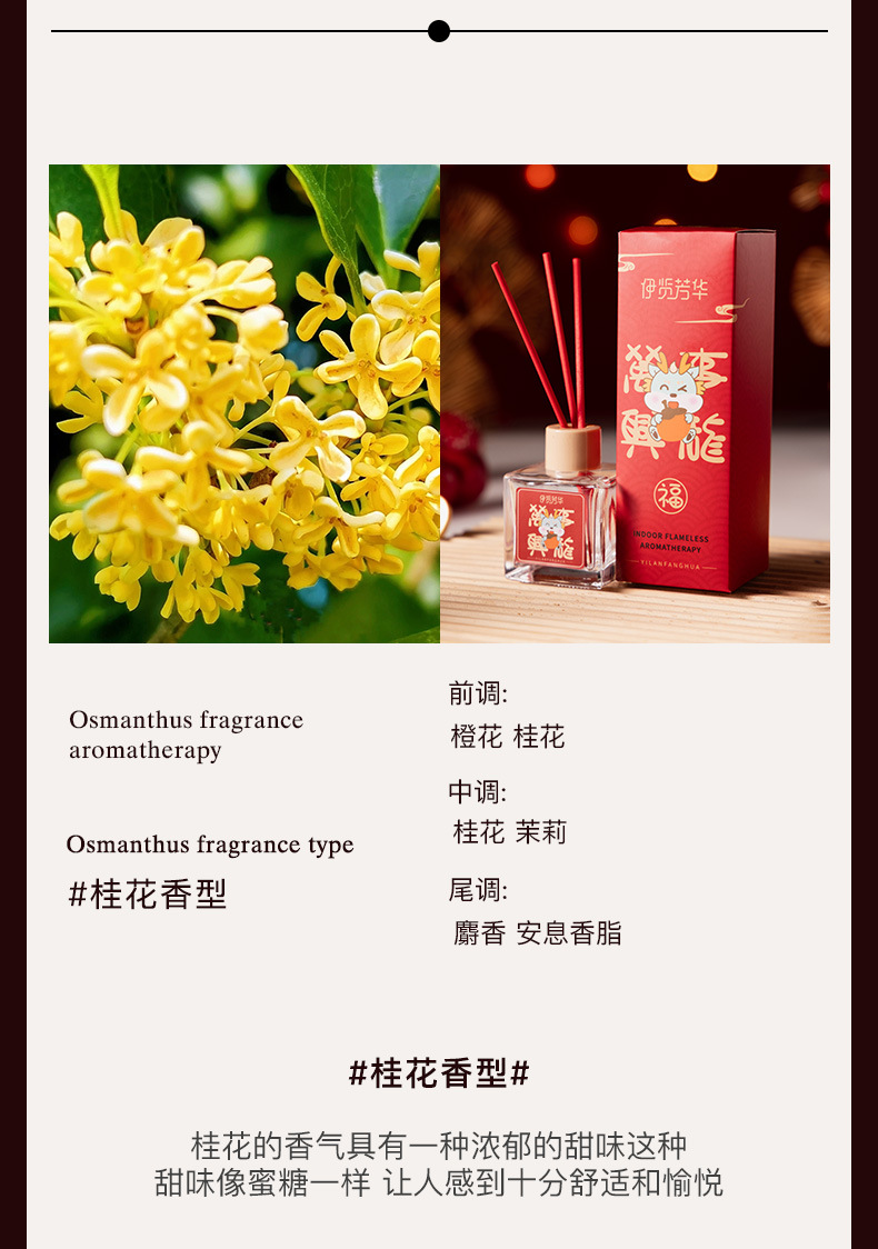 「19.9到手5瓶!四款香型」伊览芳华龙年香薰 龙年限定万事兴隆新年红无火香薰居家日用卧室客厅香氛摆件家居饰品