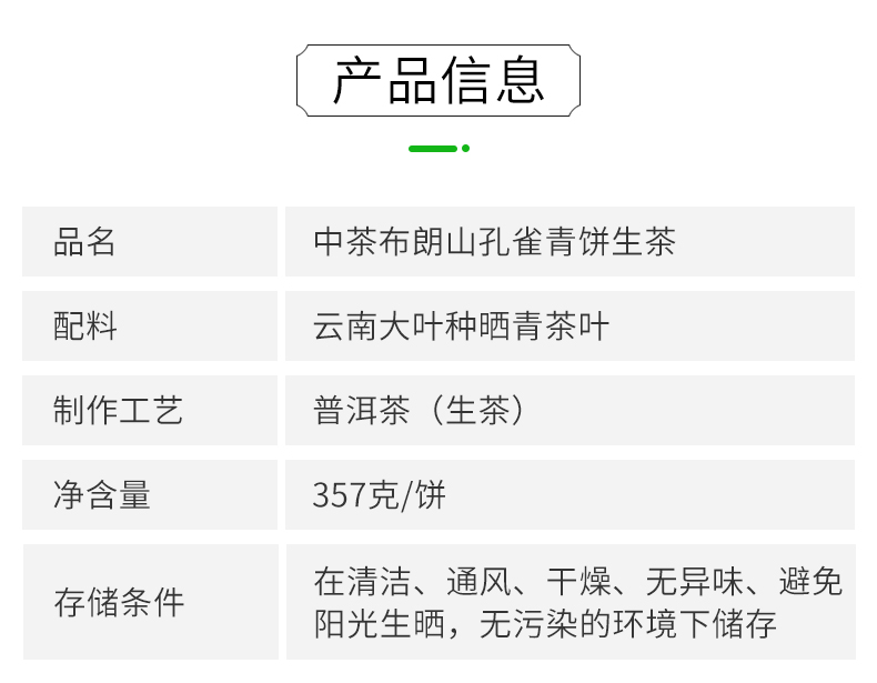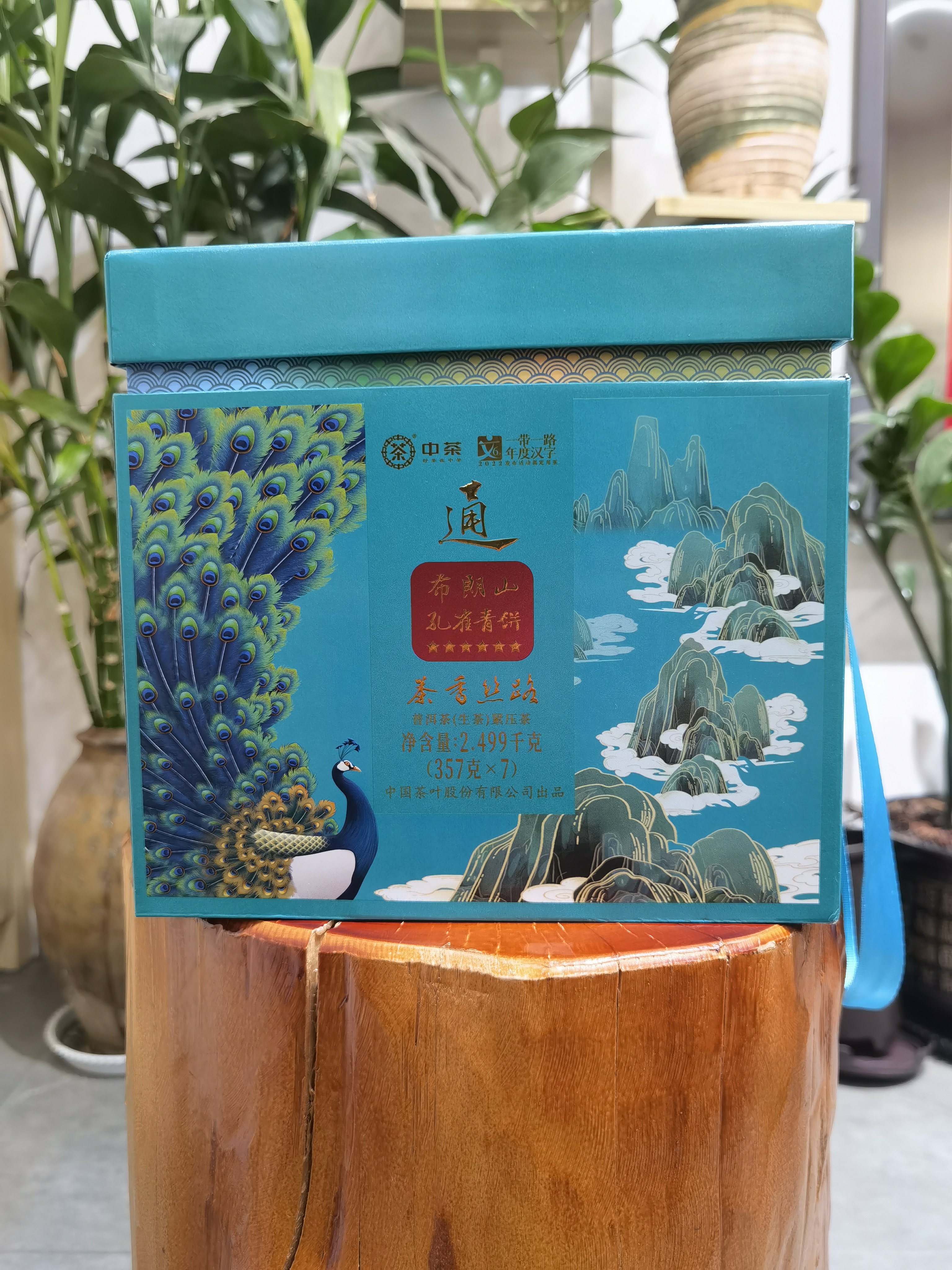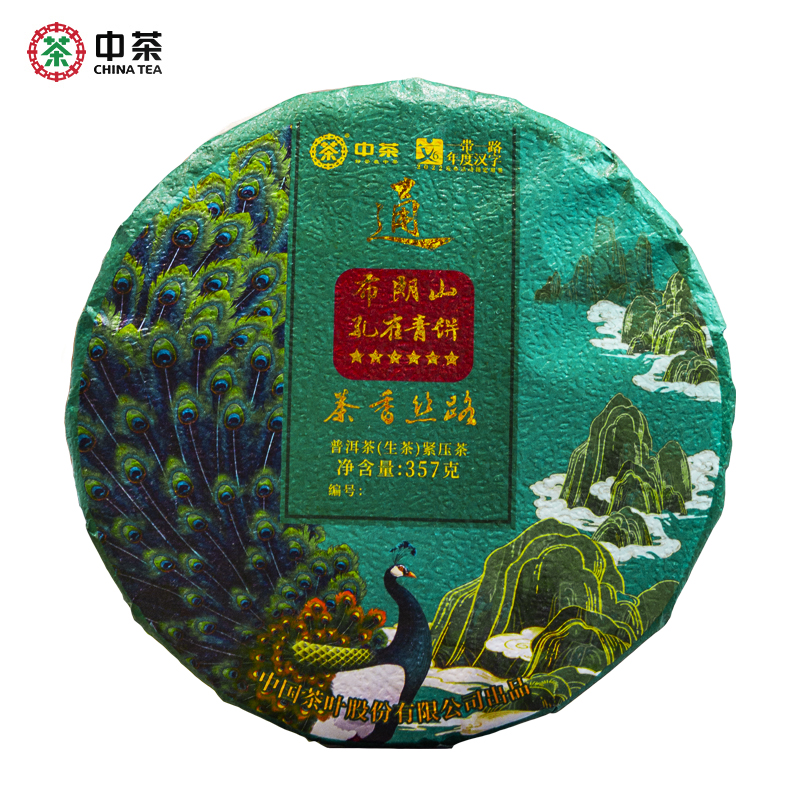 中粮-中茶2022年"一带一路"年度汉字(通)茶香丝路布朗山孔雀青饼生普357g /云南干仓直发