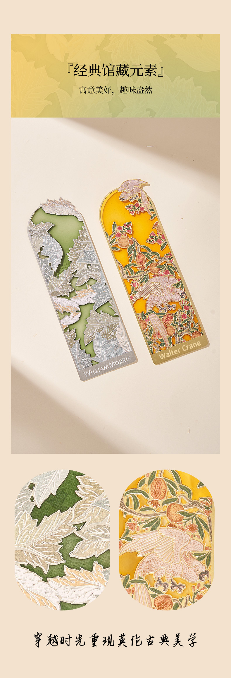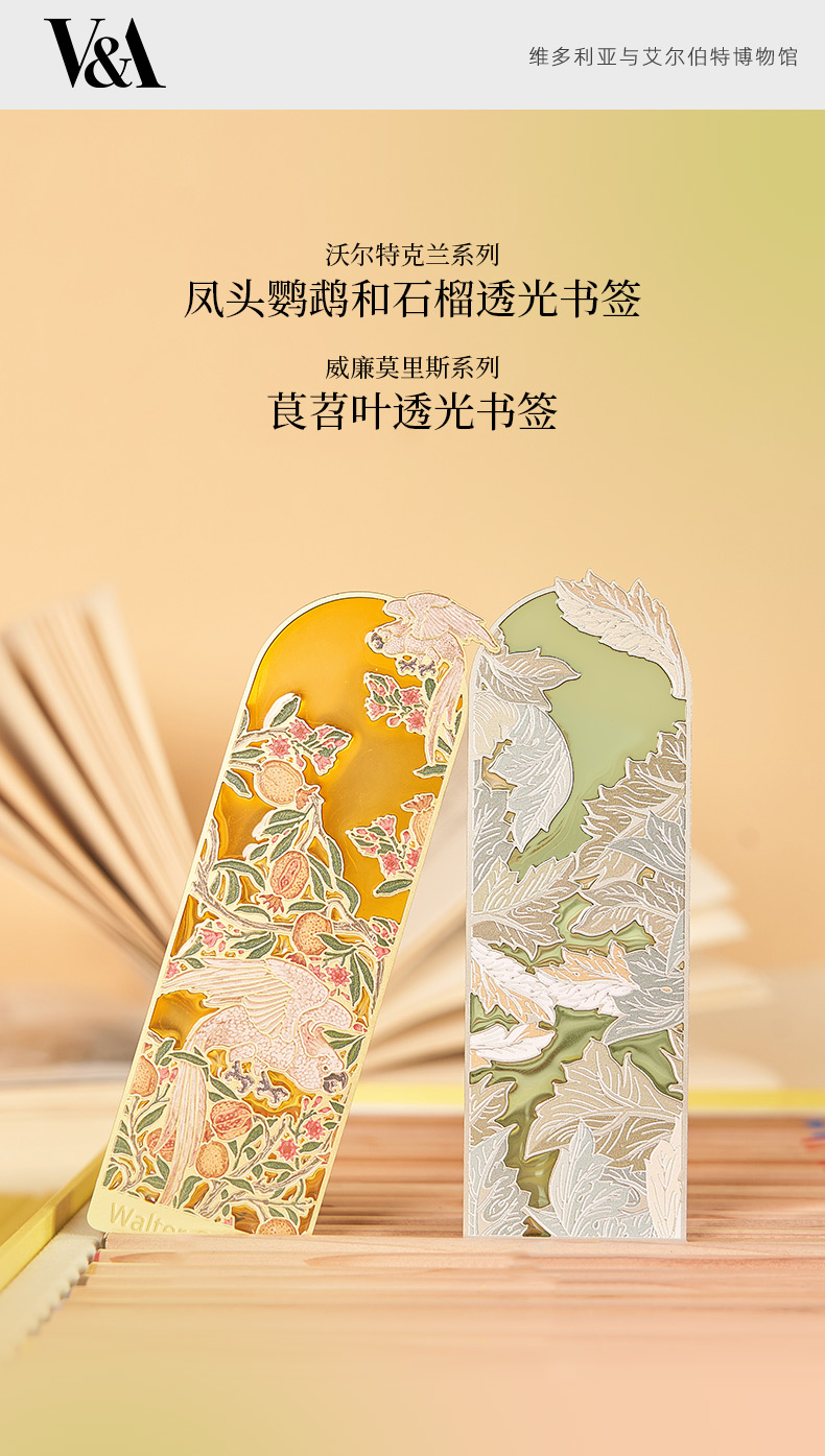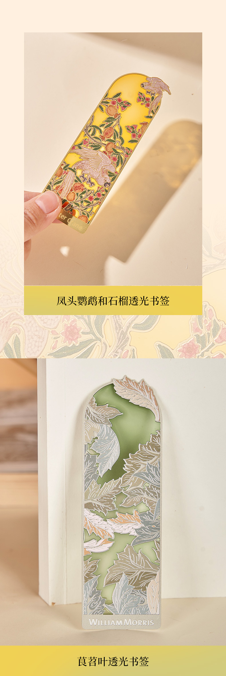 V&A博物馆 沃尔特克兰系列凤头鹦鹉和石榴透光书签 威廉莫里斯系列茛苕叶透光书签