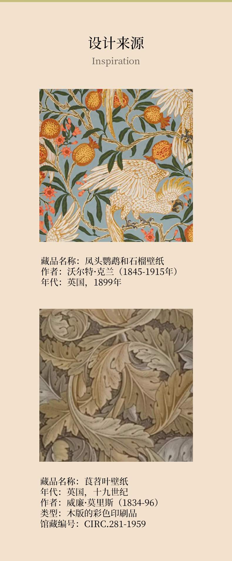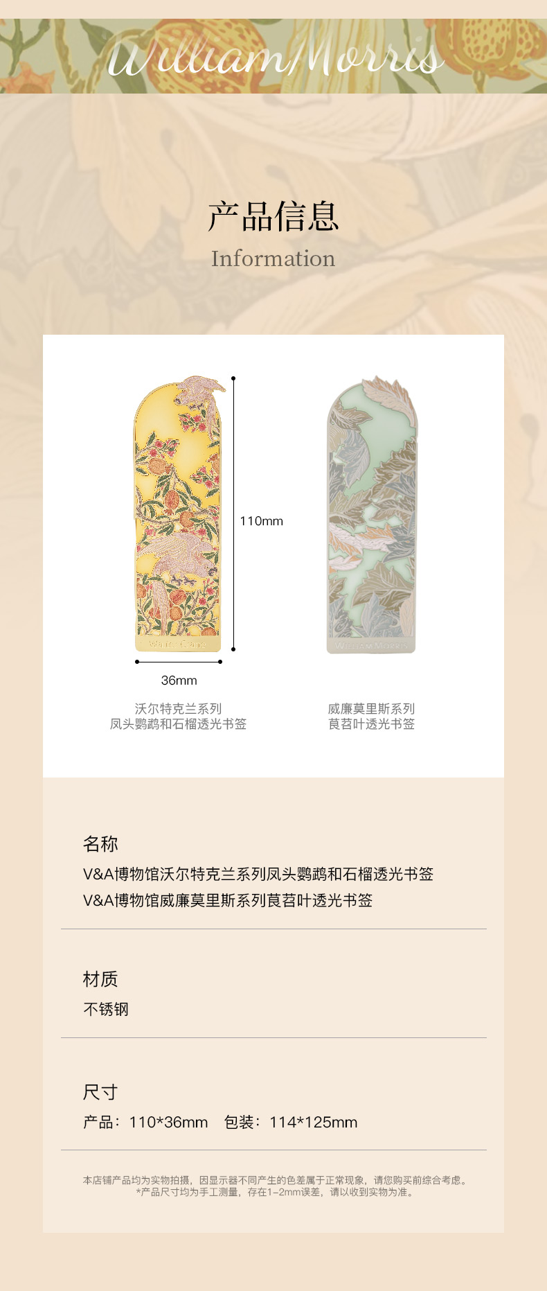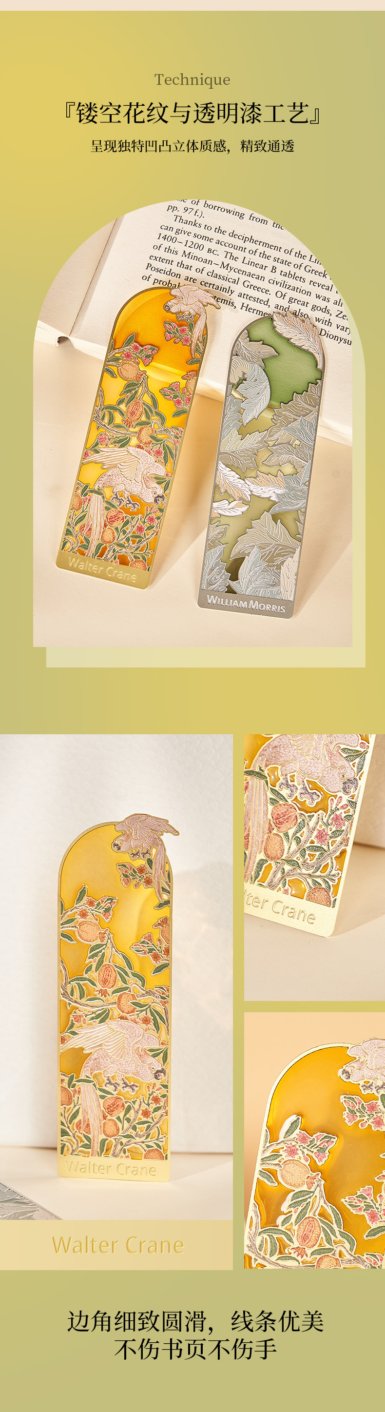 V&A博物馆 沃尔特克兰系列凤头鹦鹉和石榴透光书签 威廉莫里斯系列茛苕叶透光书签