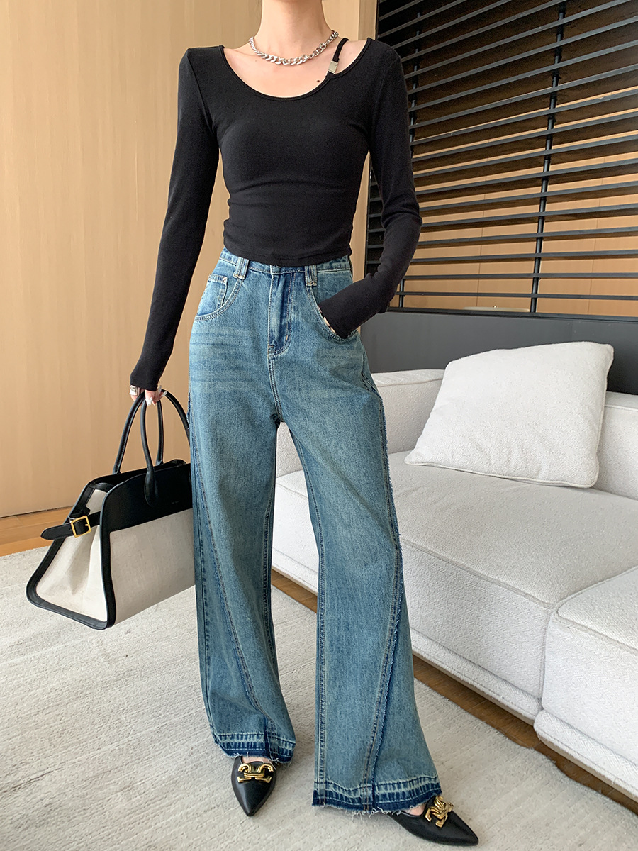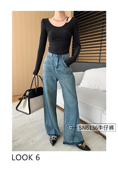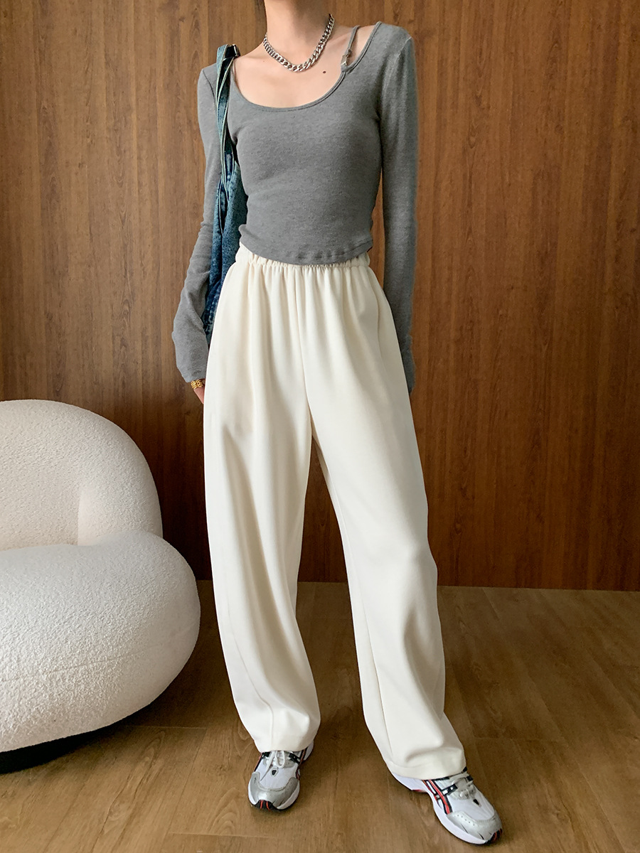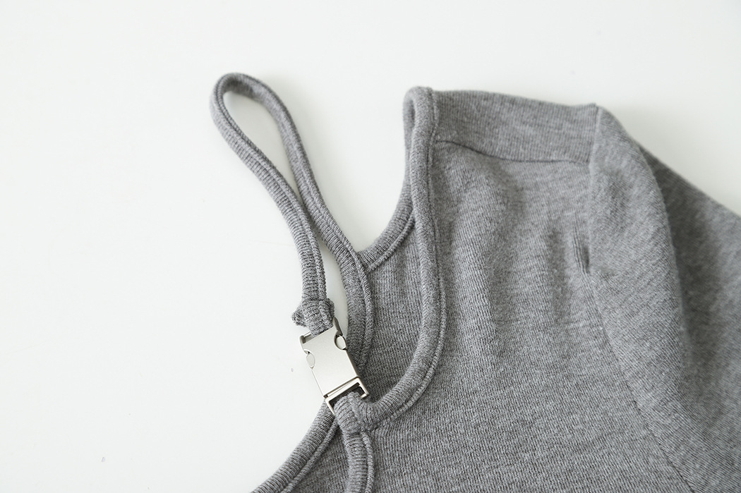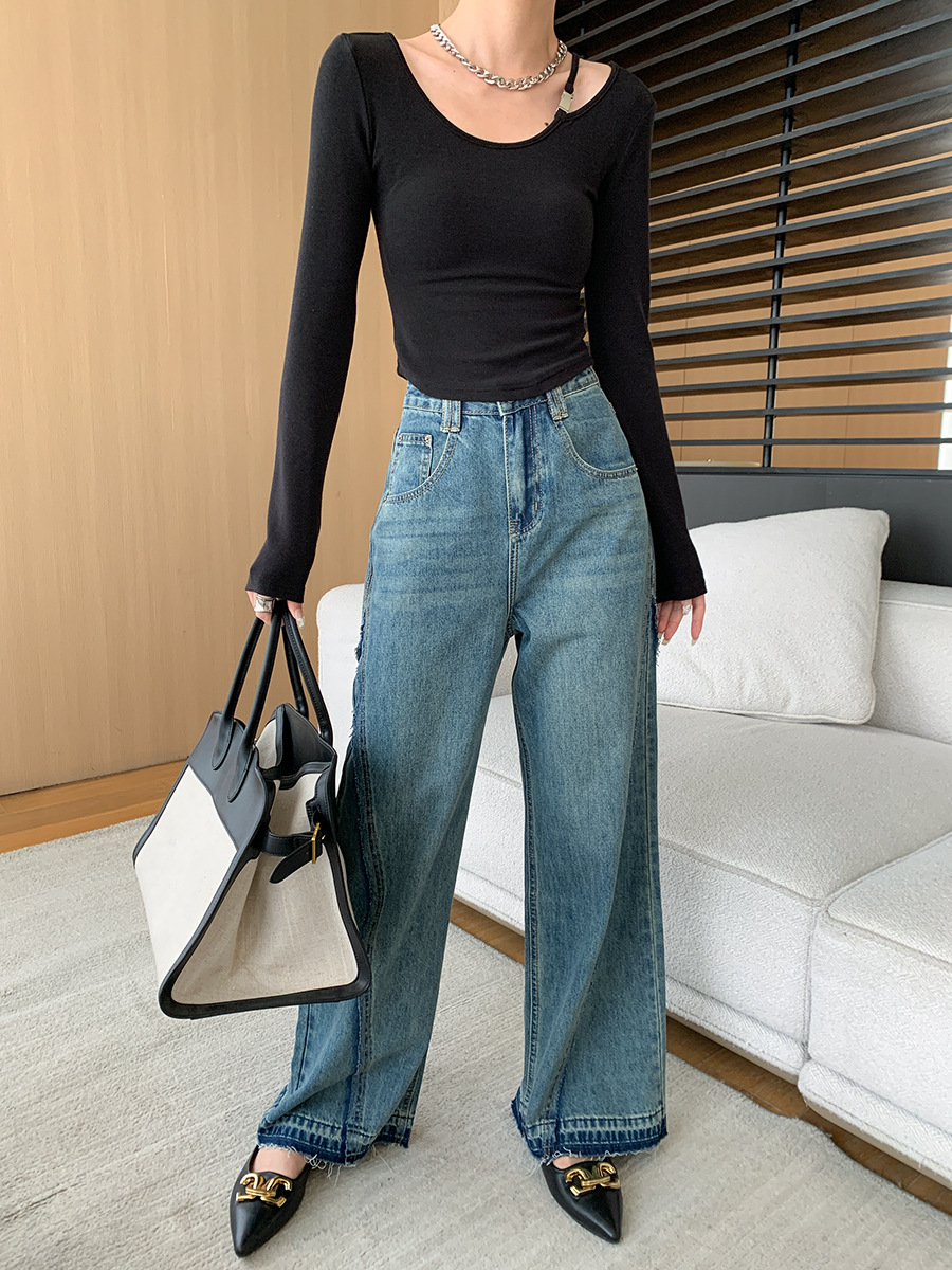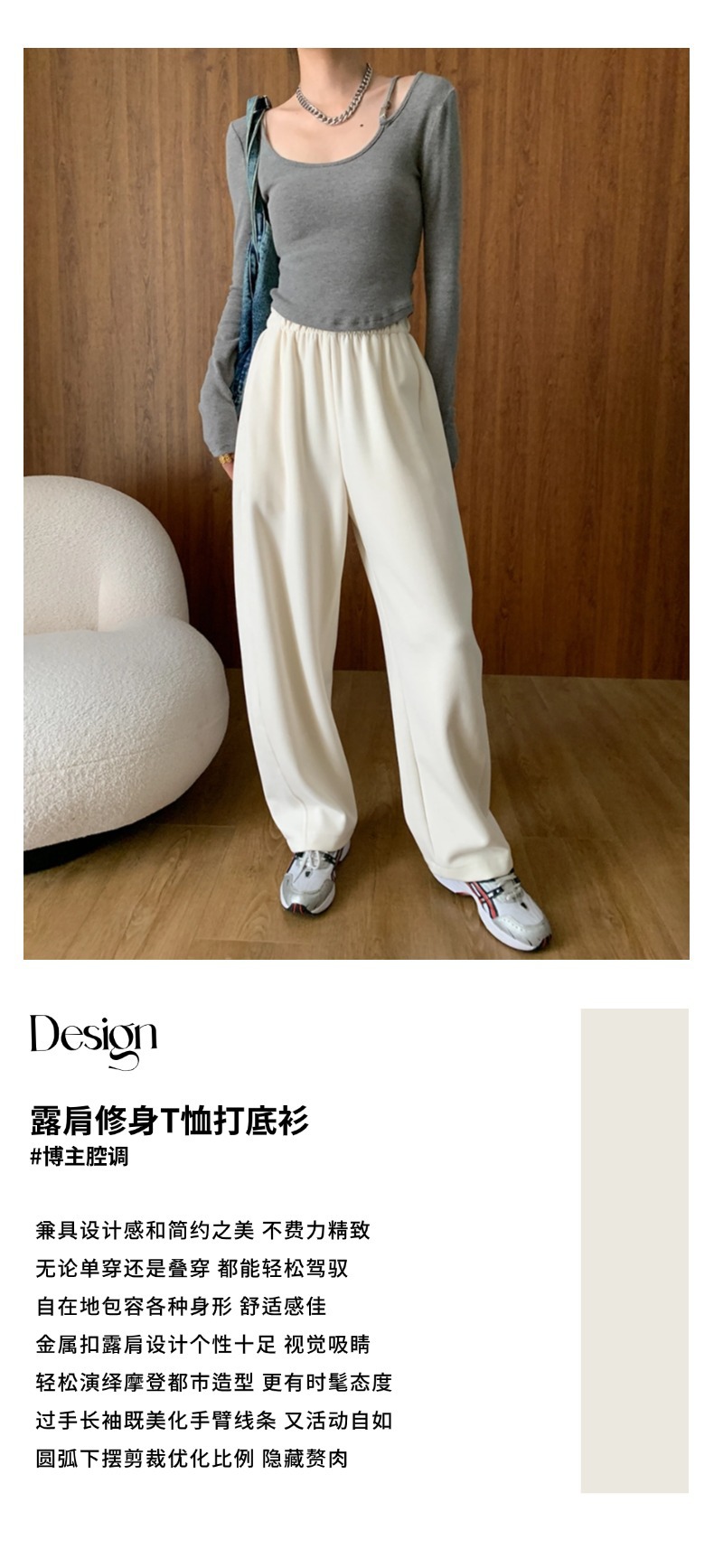 ✨高密轻柔金属扣短款T女设计感简约修身不对称长袖上衣 小众设计感露肩修身T恤打底衫2025新款