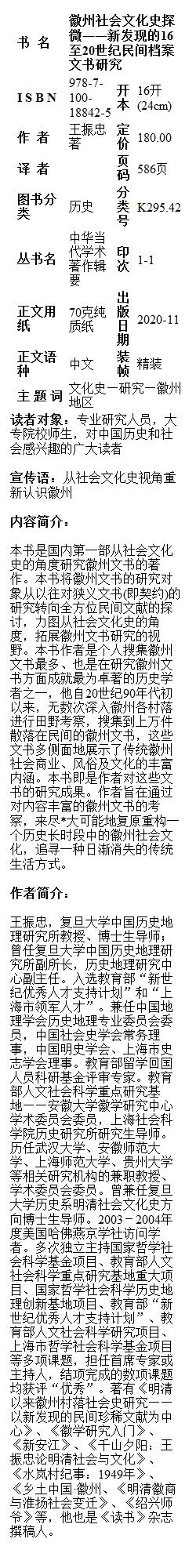 徽州社会文化史探微――新发现的16至20世纪民间档案文书研究 王振忠 著(中华当代学术著作辑要)