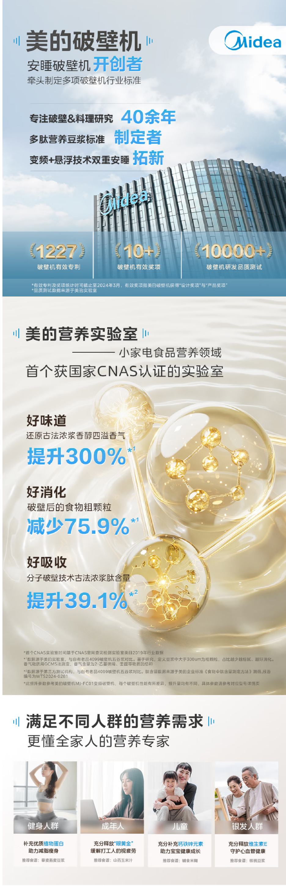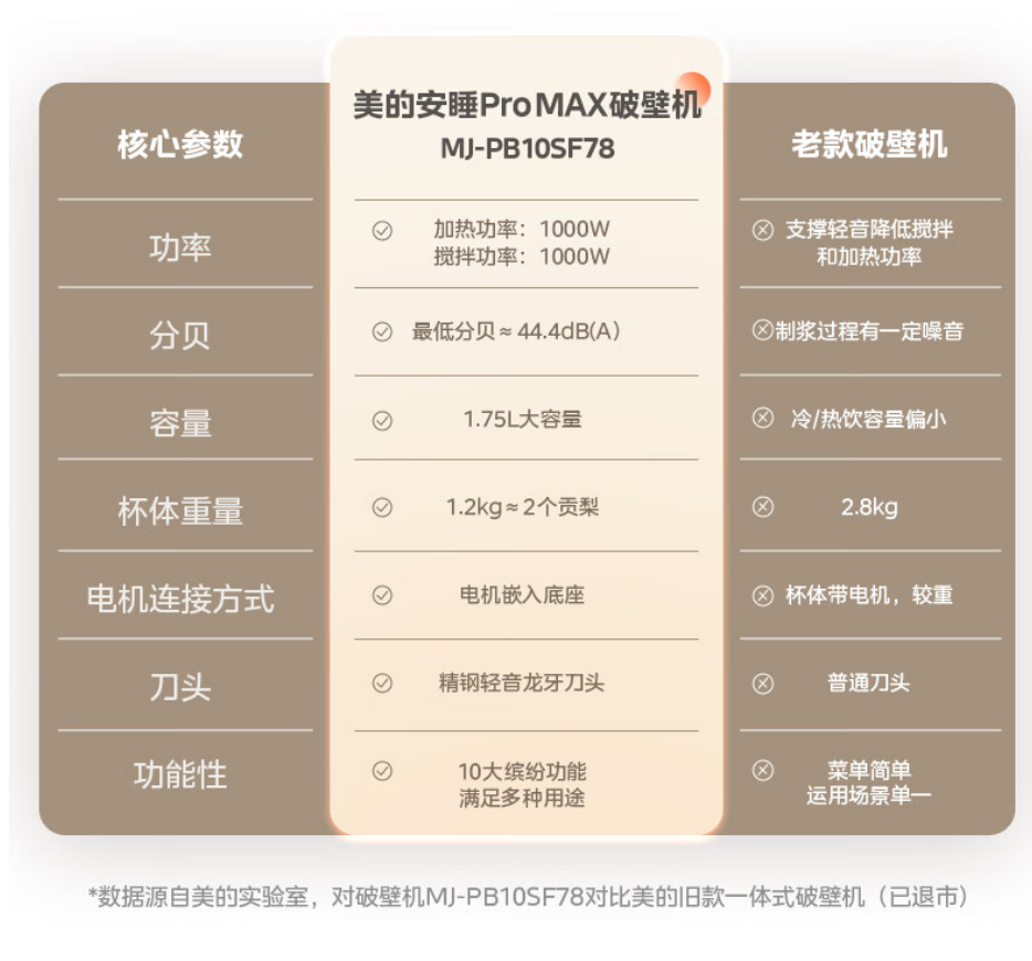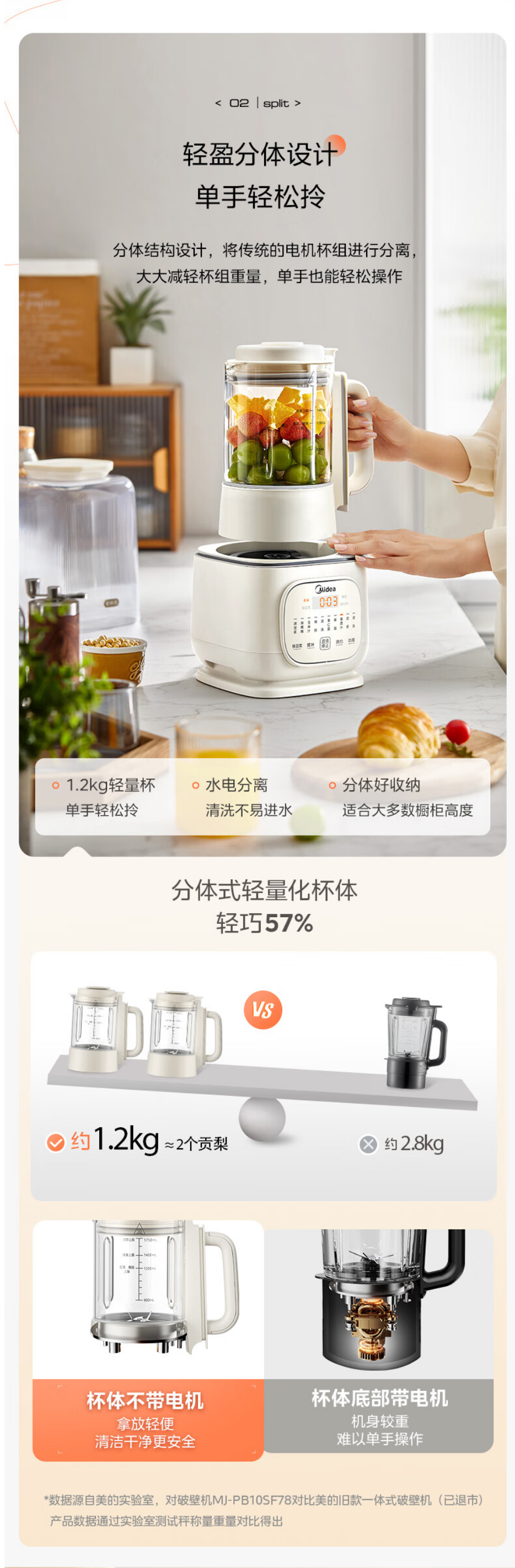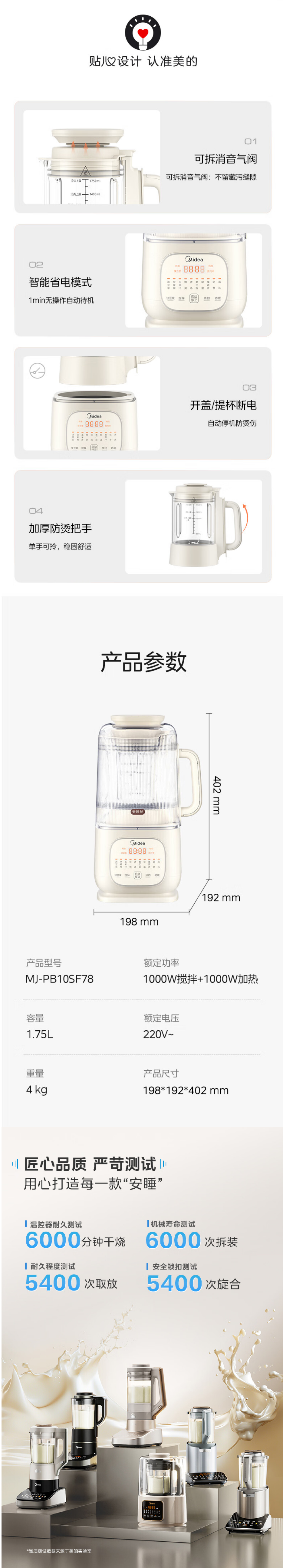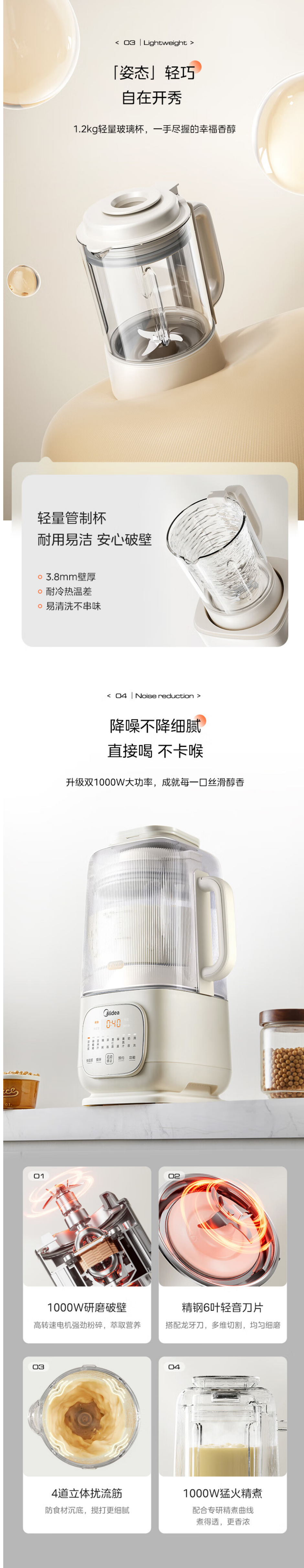 美的(Midea)安睡低音破壁机 1.75L大容量家用豆浆机柔音降噪设计 轻量杯榨汁料理辅食机 100094168879