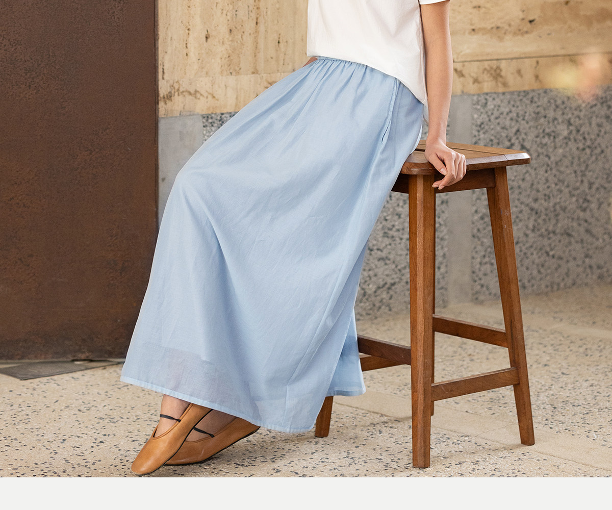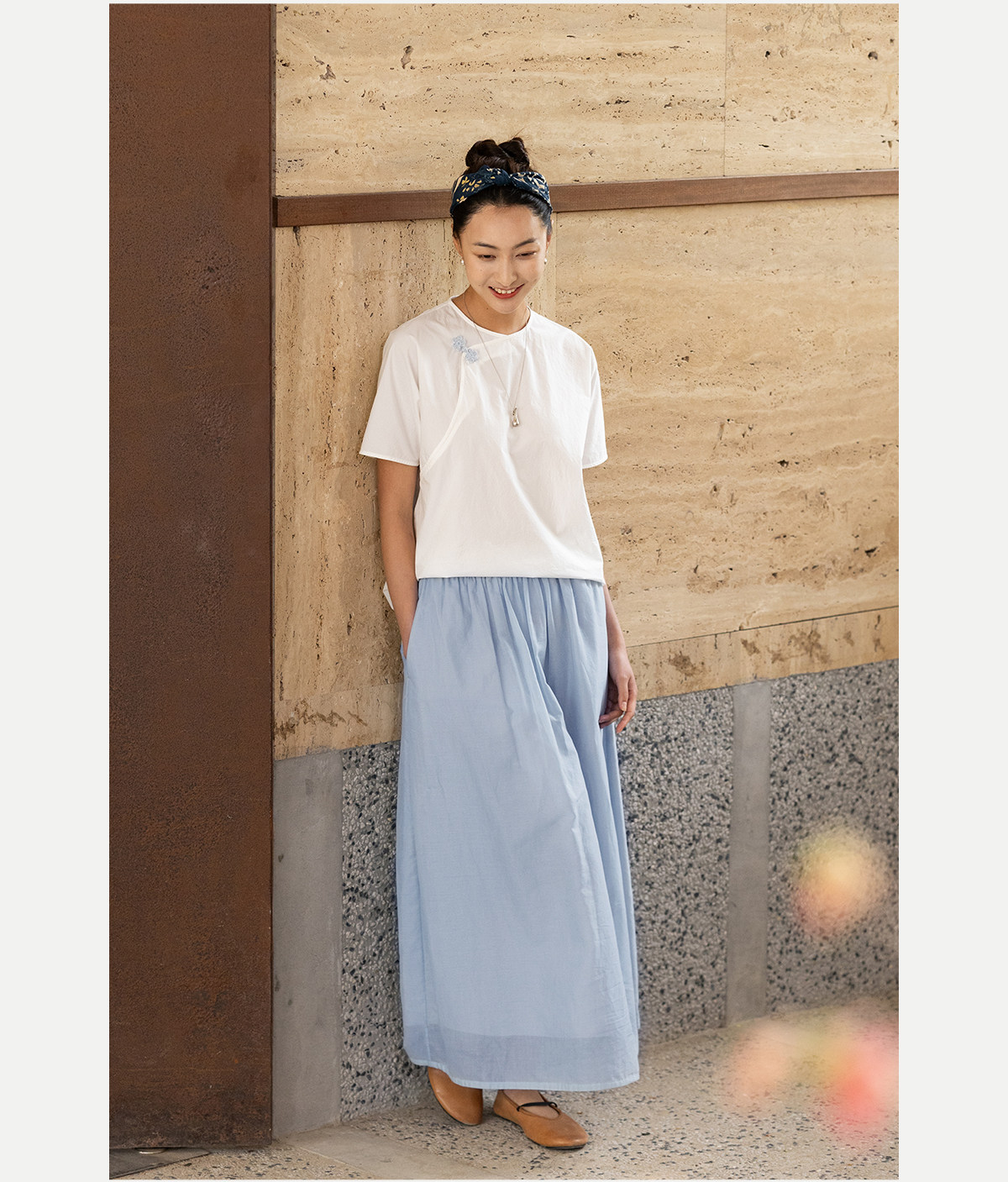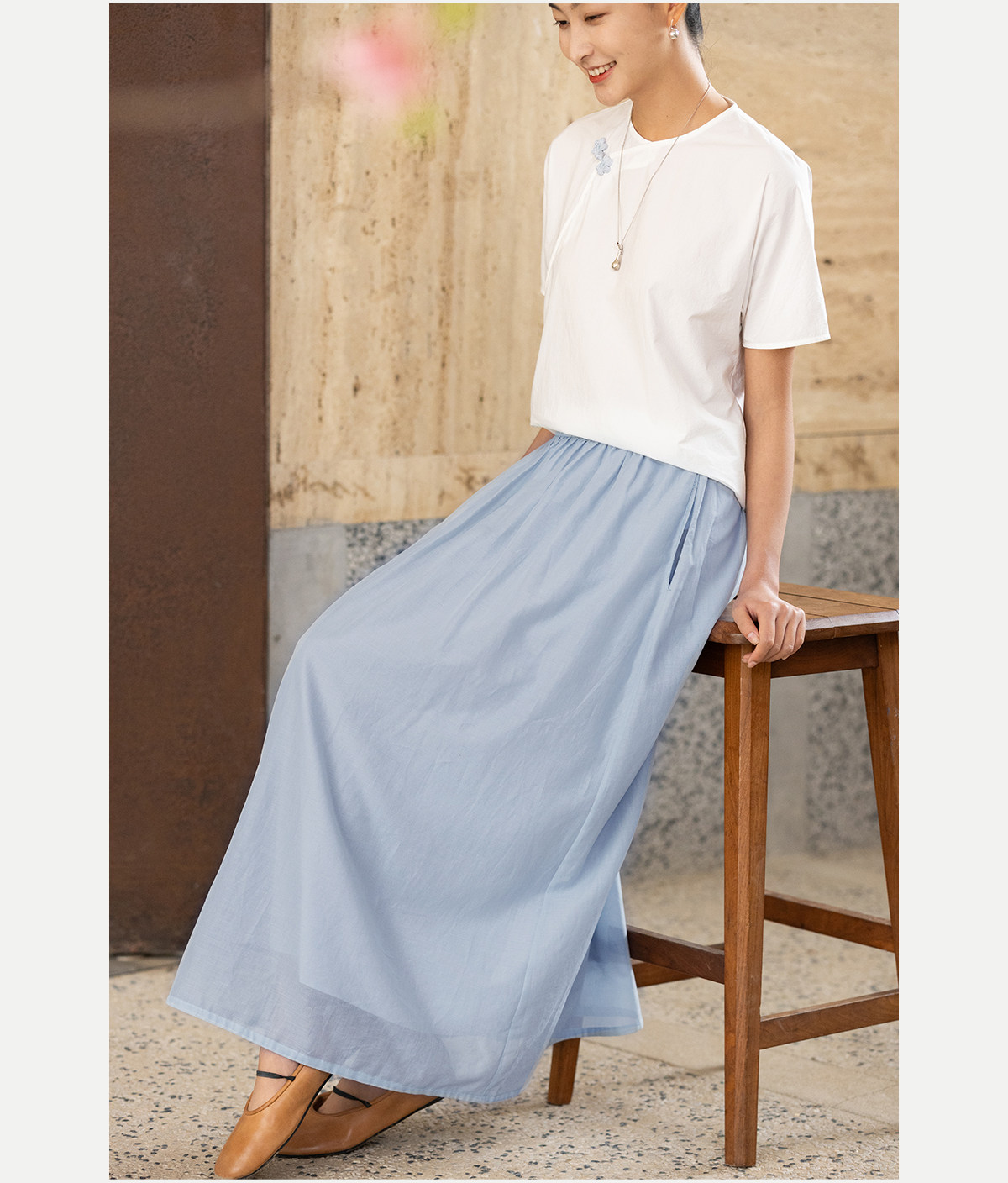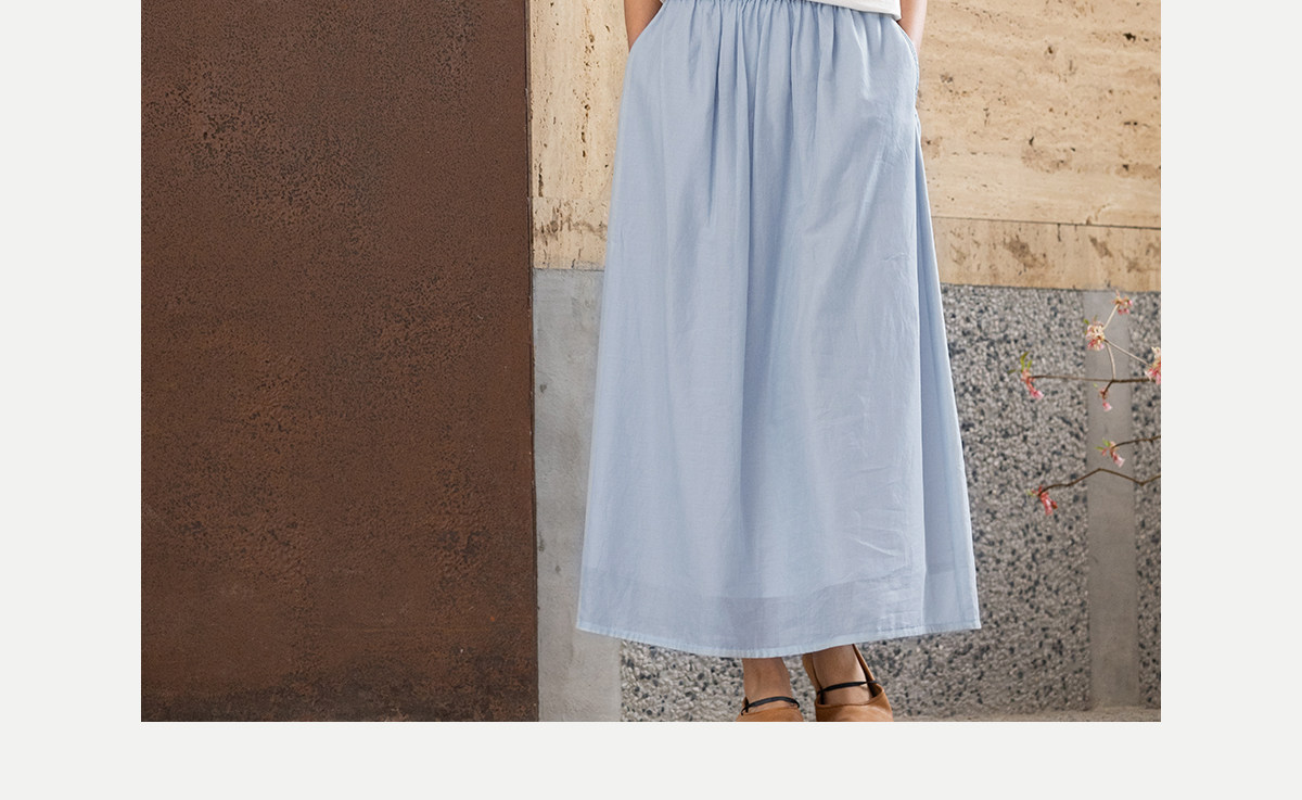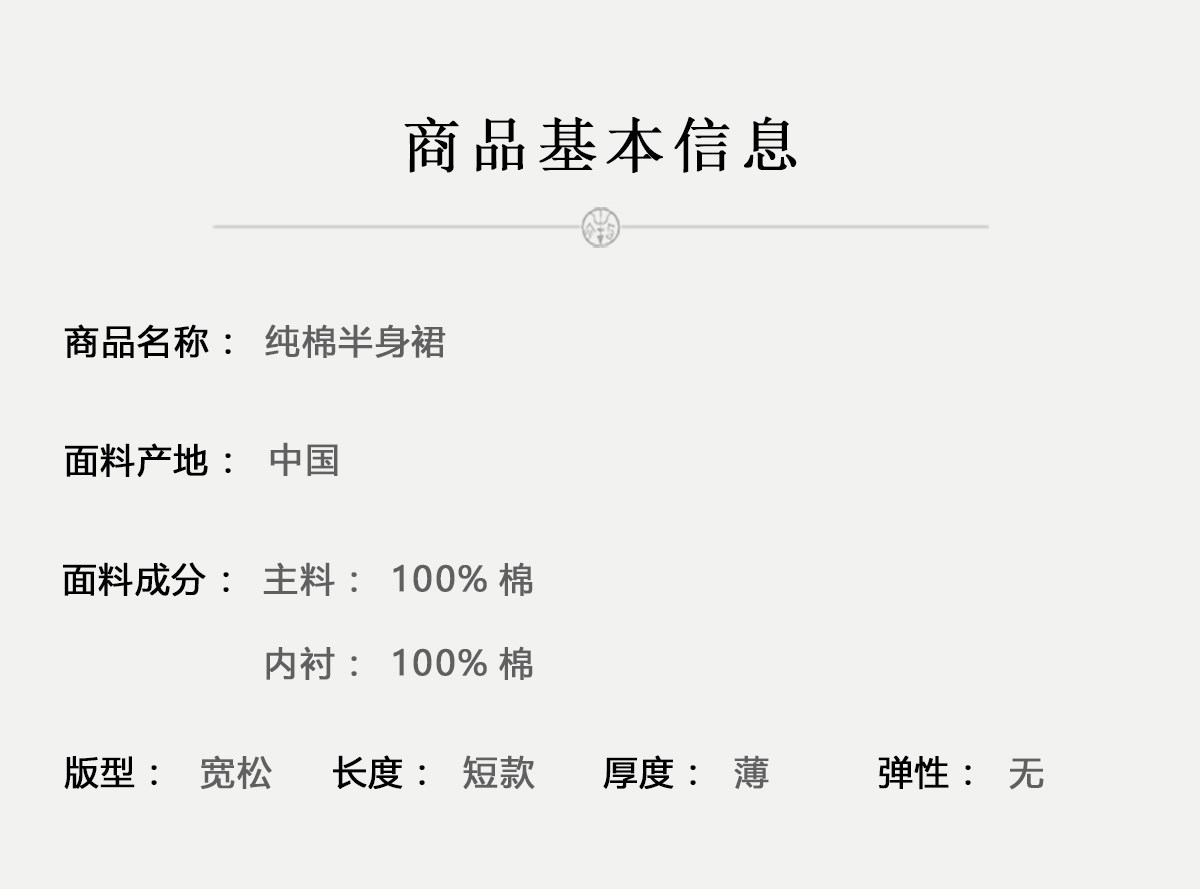 牧衣游原创 100支纯棉半身裙新款宽松百搭轻薄松紧腰A字半裙 冬白