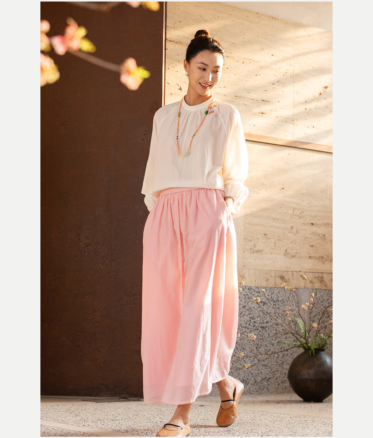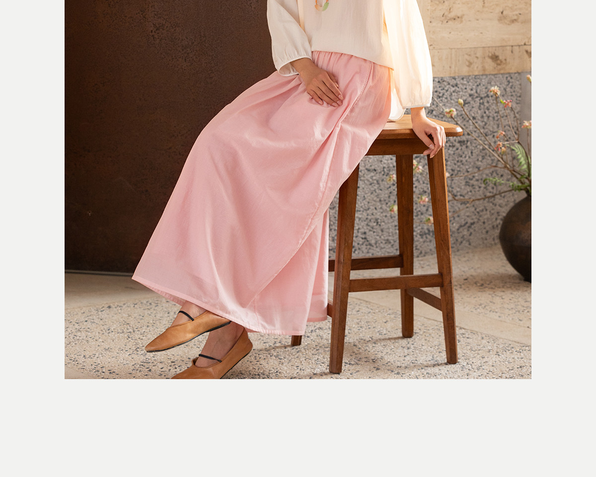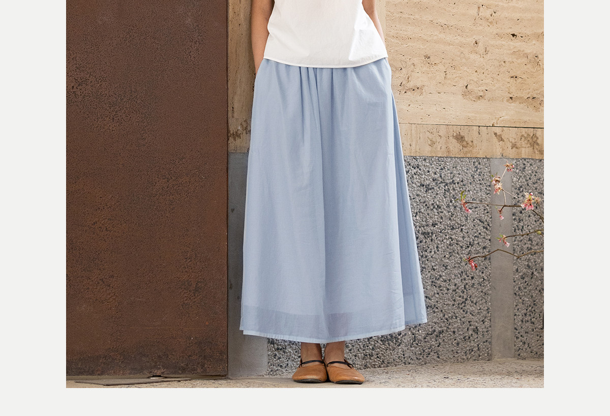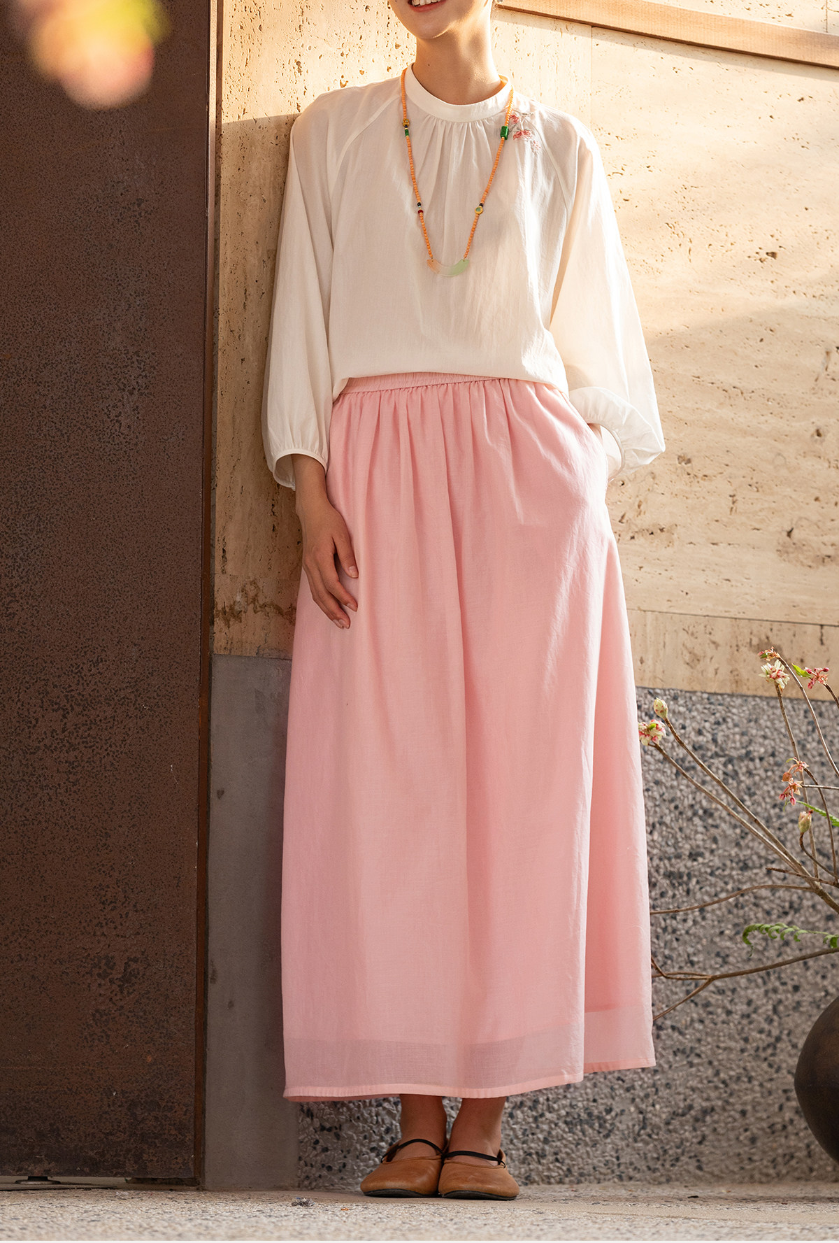 牧衣游原创 100支纯棉半身裙新款宽松百搭轻薄松紧腰A字半裙 冬白