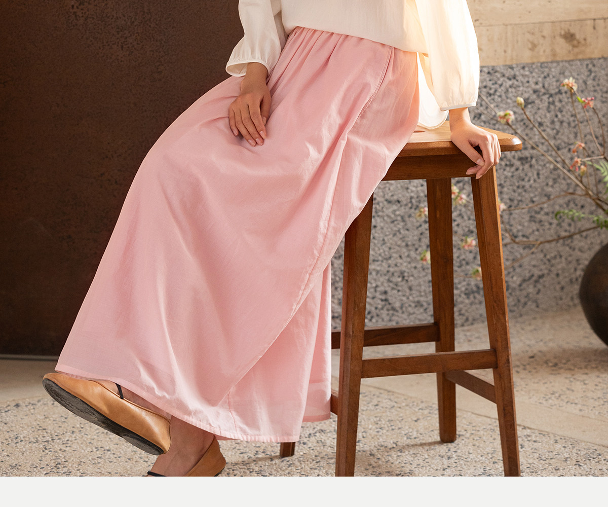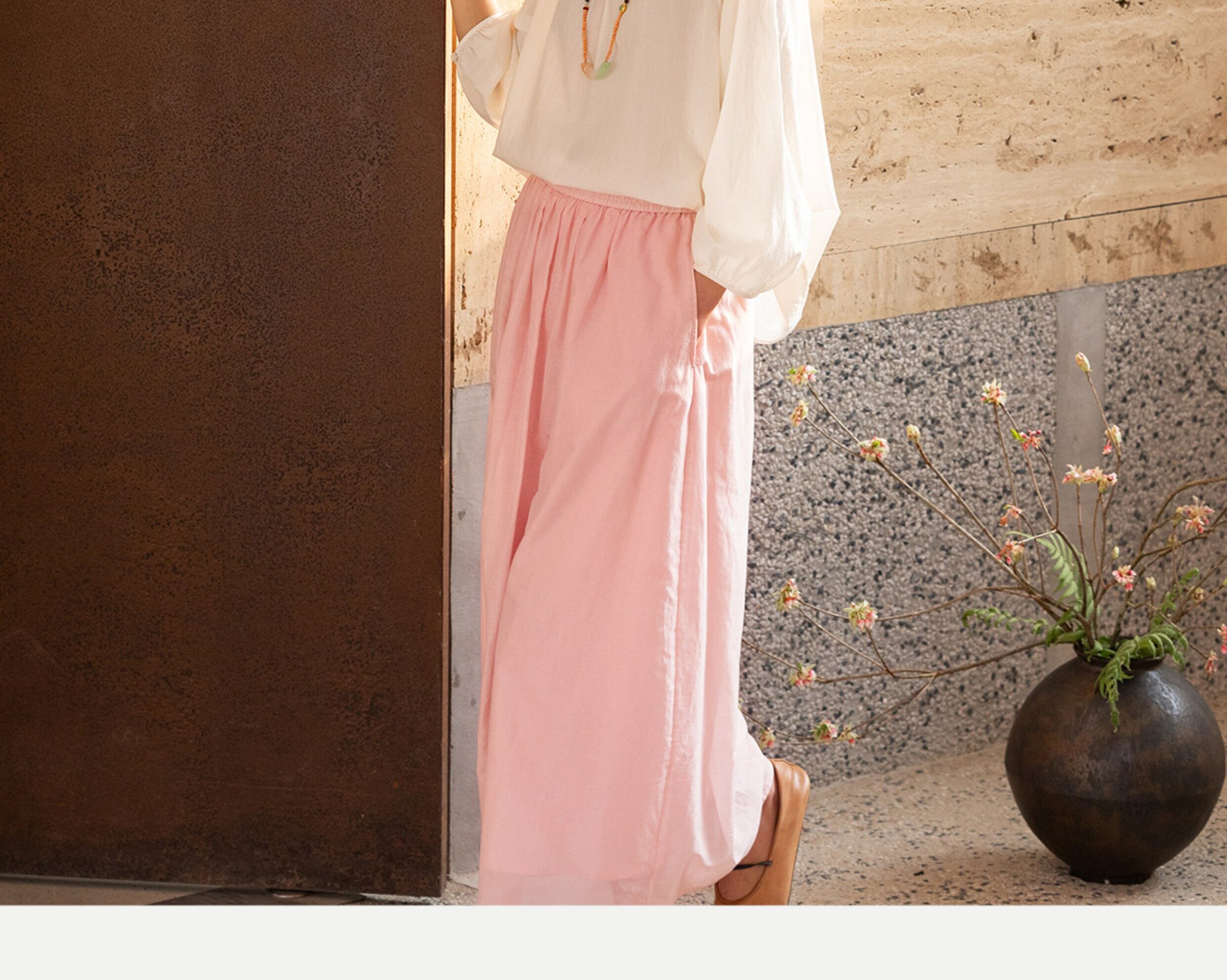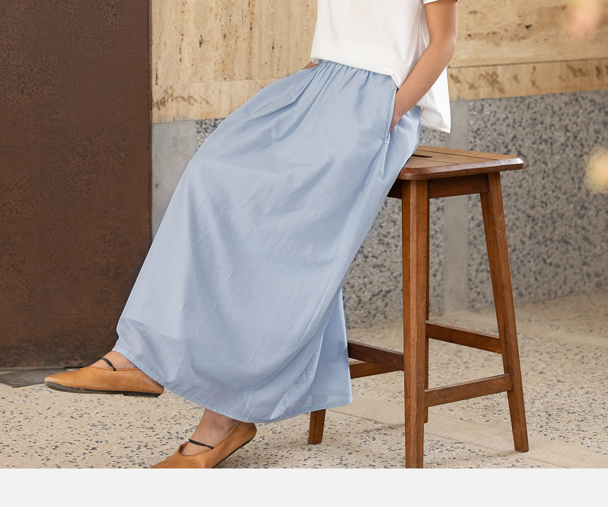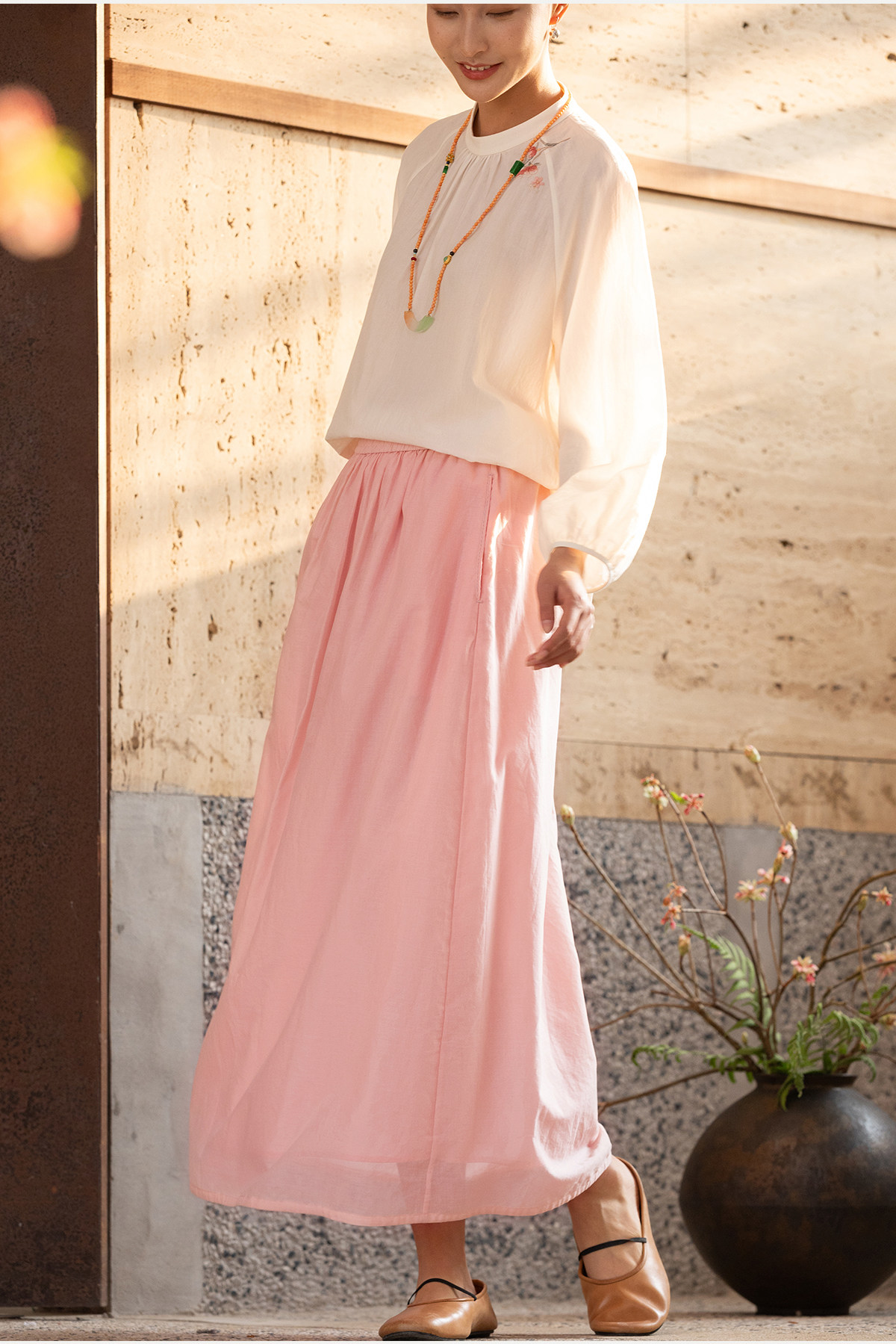 牧衣游原创 100支纯棉半身裙新款宽松百搭轻薄松紧腰A字半裙 冬白