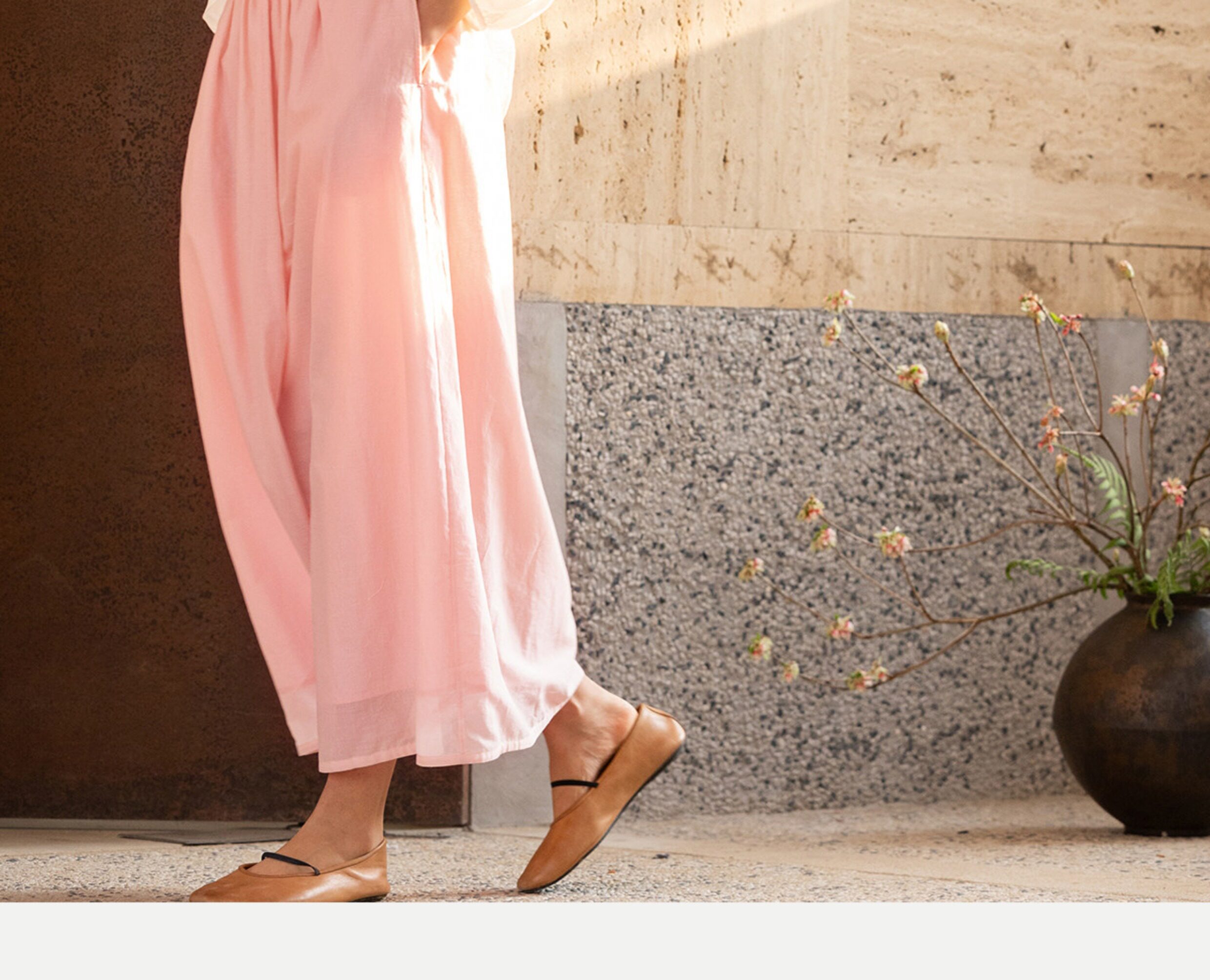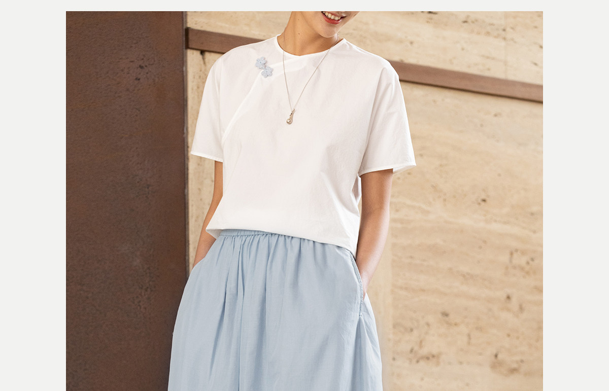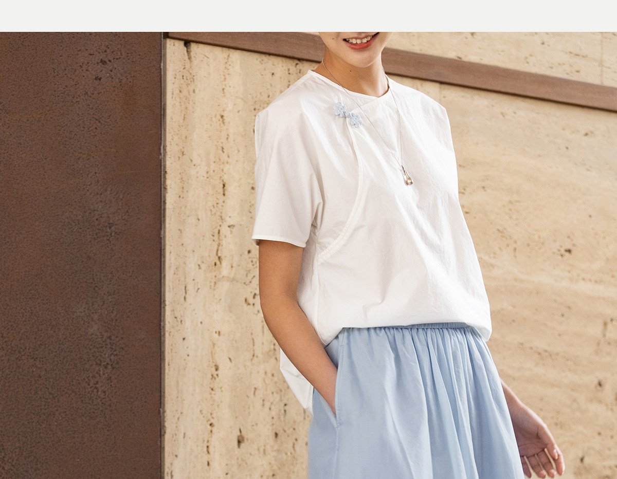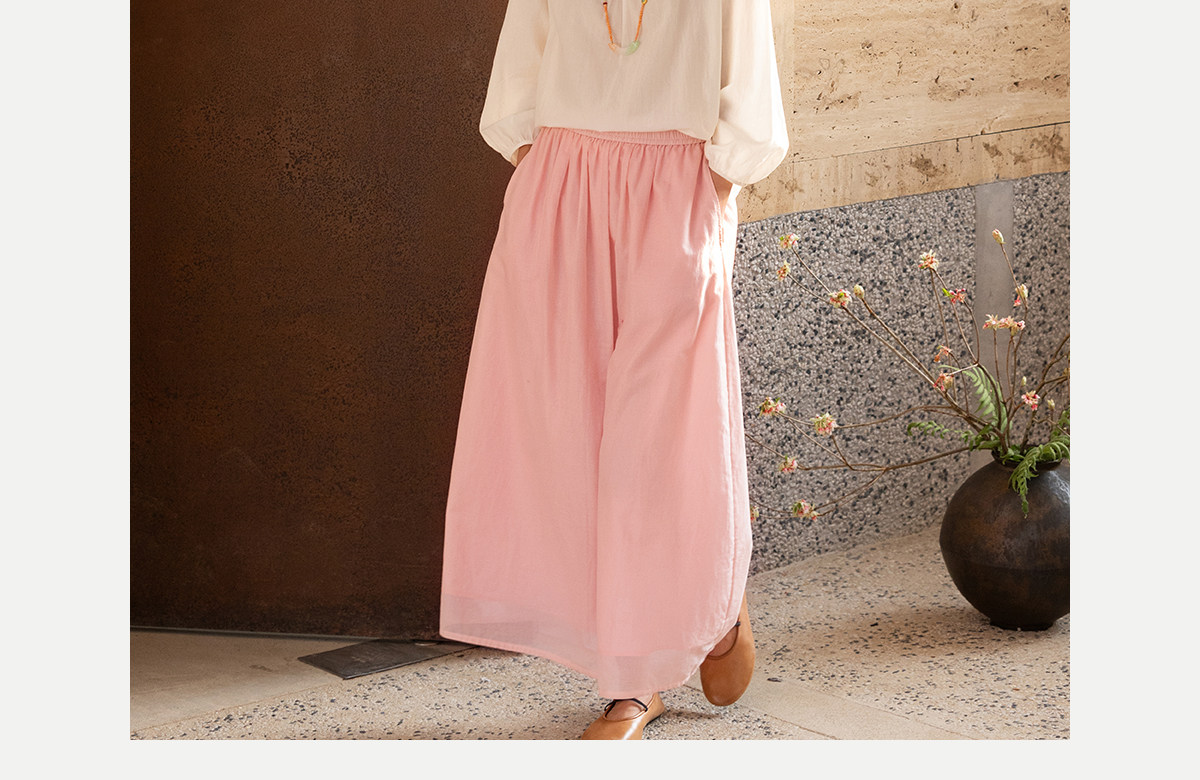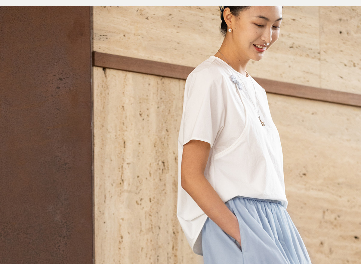 牧衣游原创 100支纯棉半身裙新款宽松百搭轻薄松紧腰A字半裙 冬白