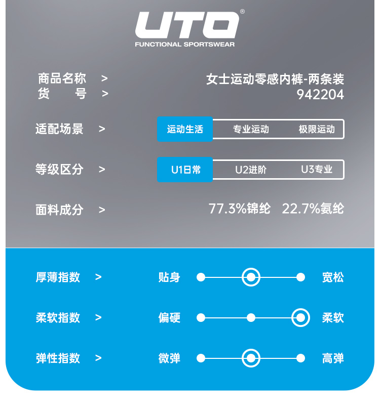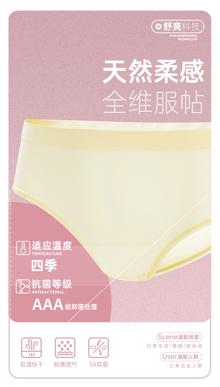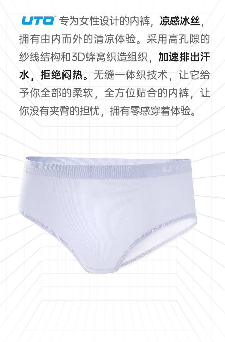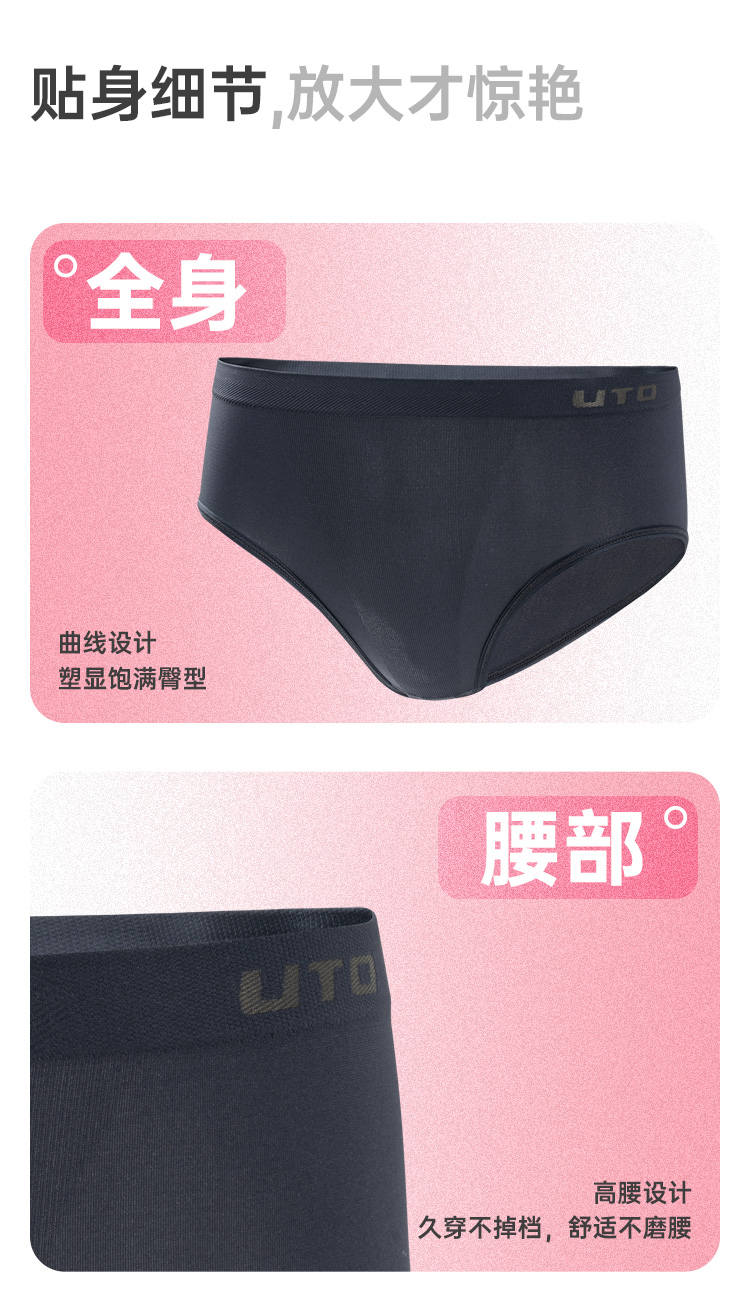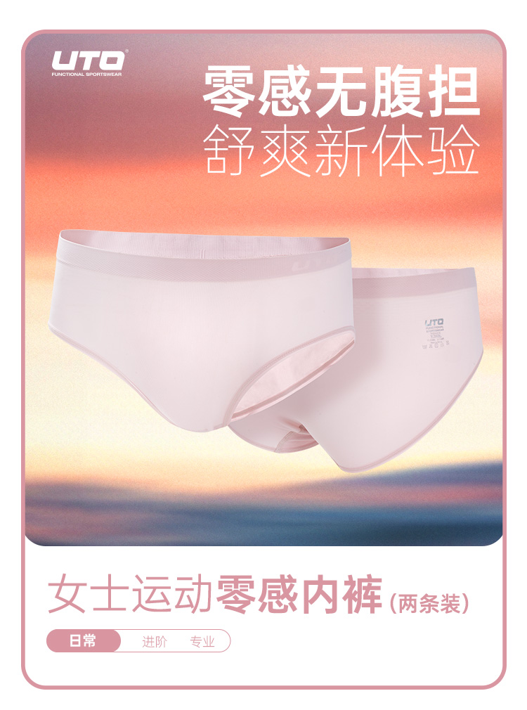 UTO/悠途女士运动裸感内裤【两条装】跑步瑜伽舒适透气无痕三角裤