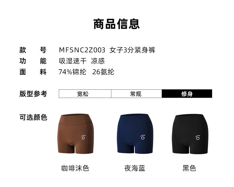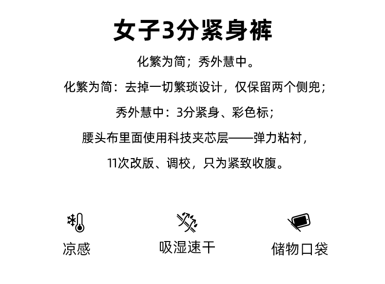 马孔多女子3分紧身裤 高腰 紧致收腹 超弹 凉感 吸湿速干 两侧兜储物 疾风之速腰部抽绳
