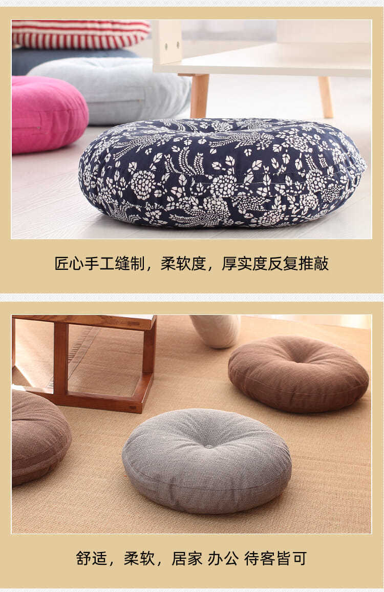 飘窗瑜伽地板大号亚麻蒲团坐垫加厚圆形布艺阳台日式榻榻米打坐垫