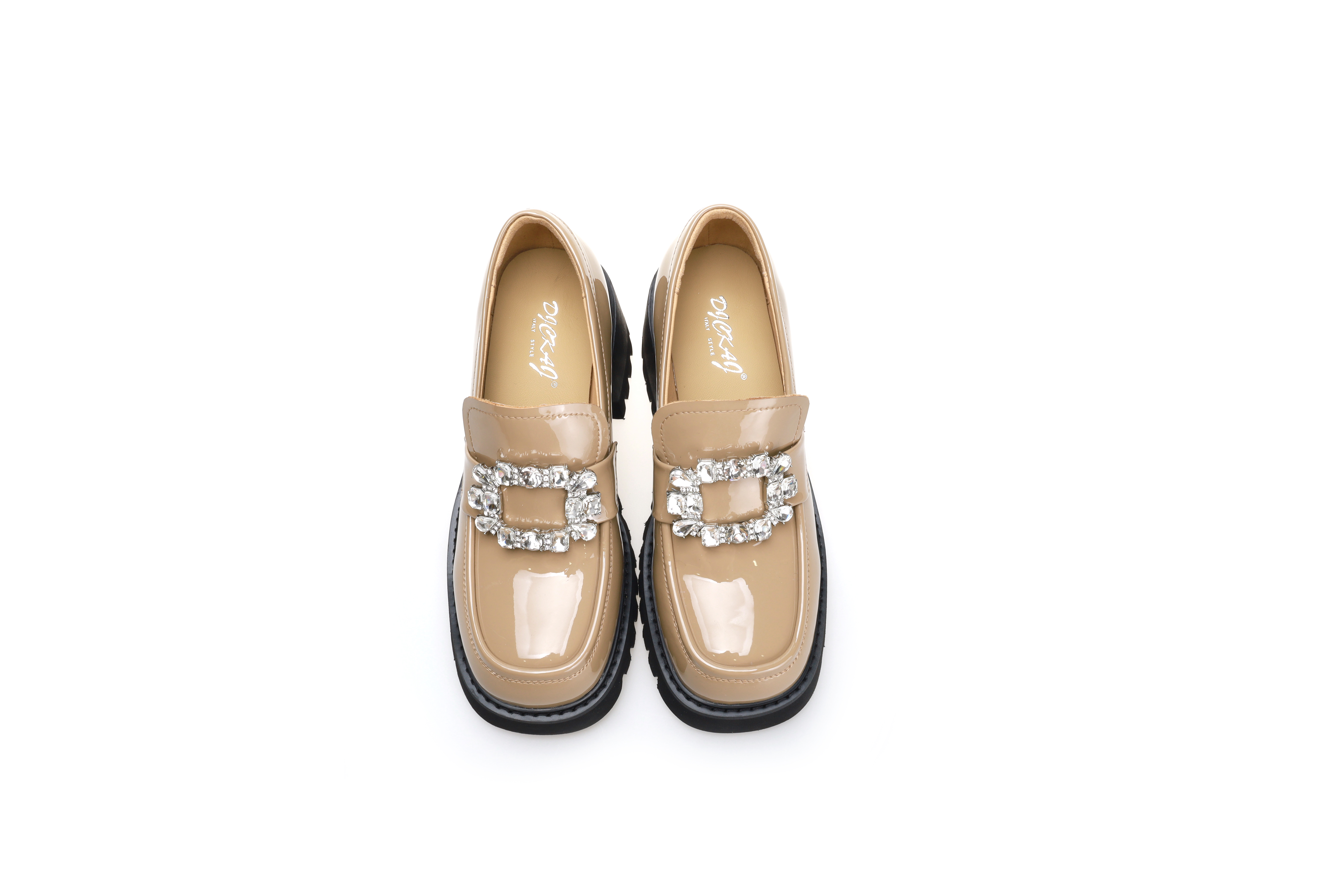 豪麟名鞋奥莱迪嘉女鞋乐福鞋牛移膜革DJHJA42WS008卡其色 原价1660元