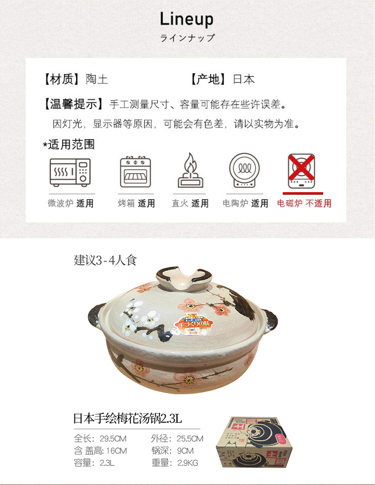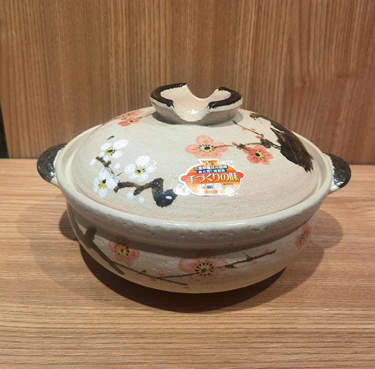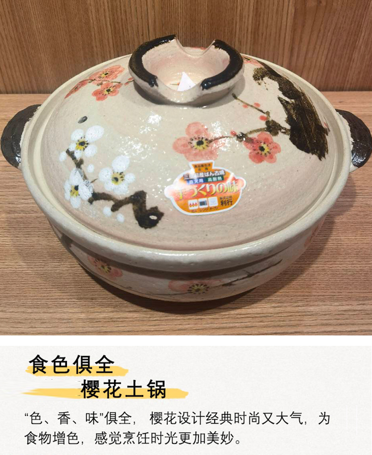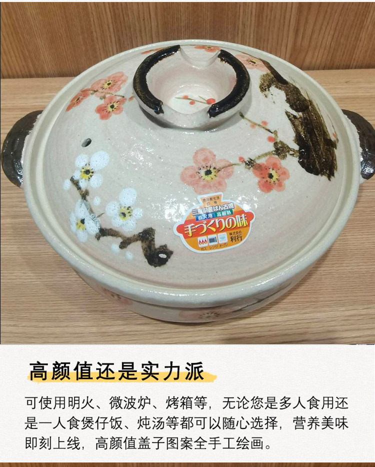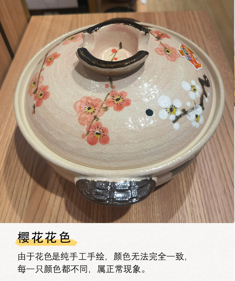 【样品特惠8折,仅1件,无货退款】日本万古烧手绘梅花土锅煲仔饭煲汤锅家用砂锅汤锅2.3L/3.4L