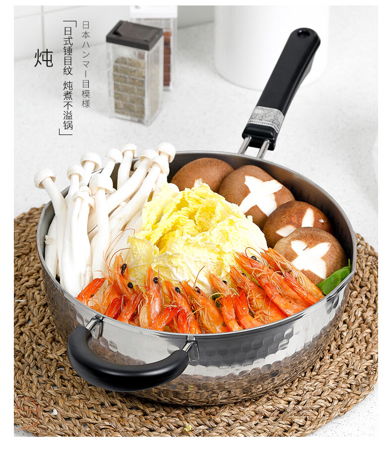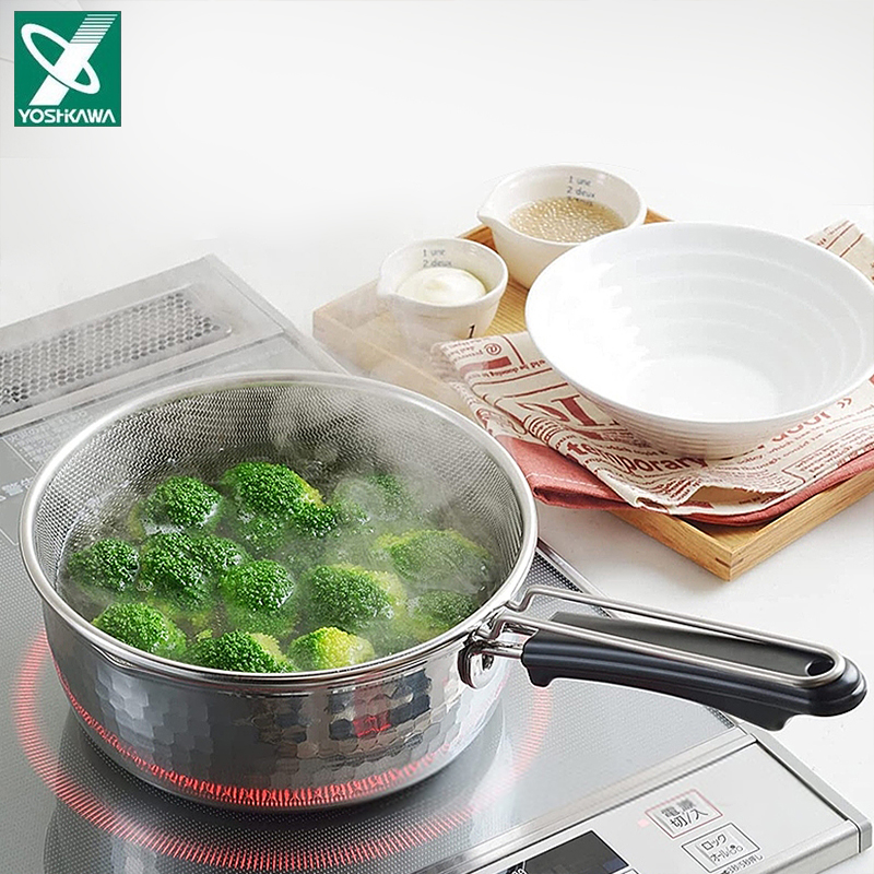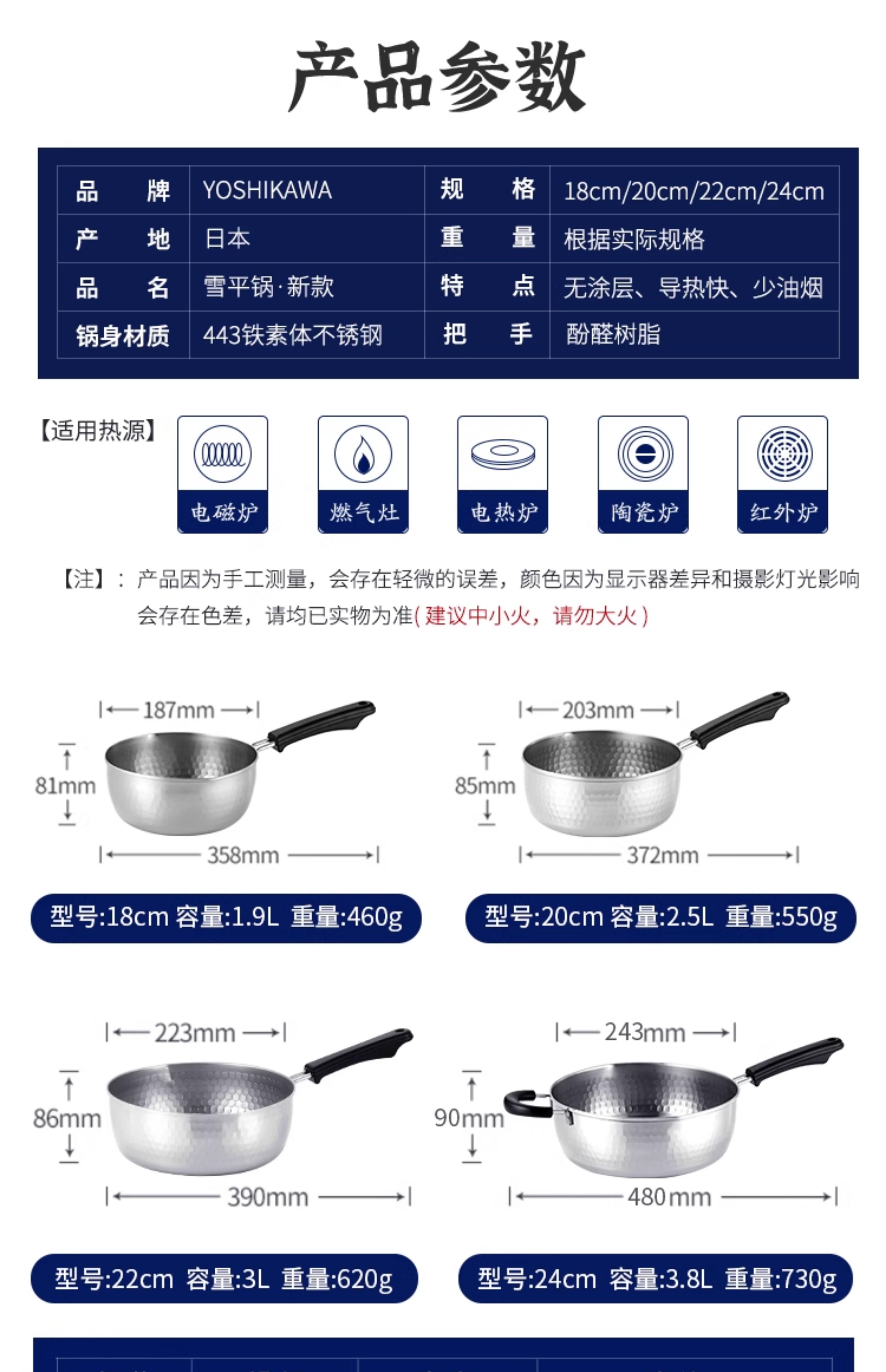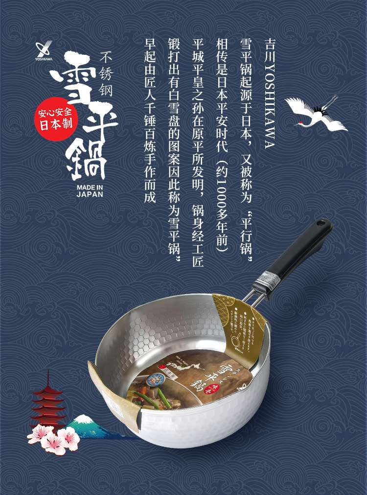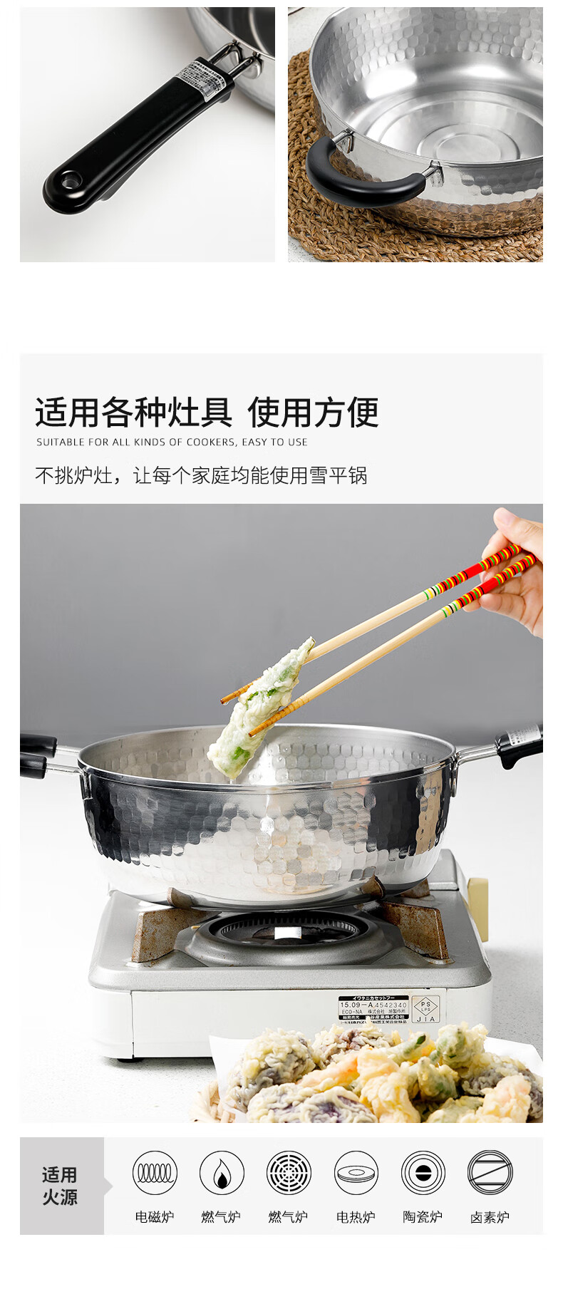YOSHIKAWA 日本进口吉川雪平锅 不锈钢锅汤锅奶锅泡面煮面油炸锅树脂手柄24cm