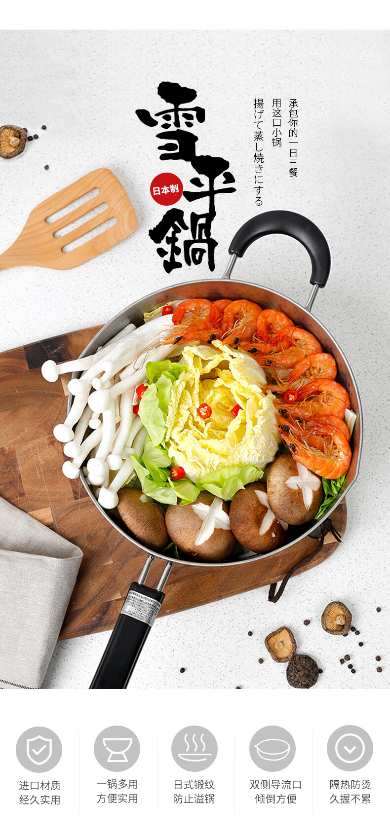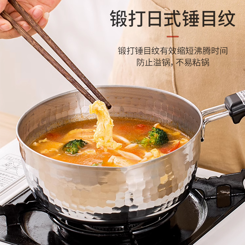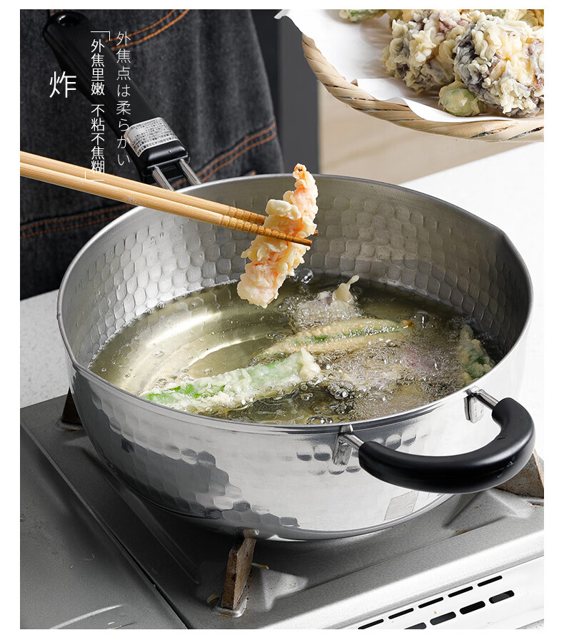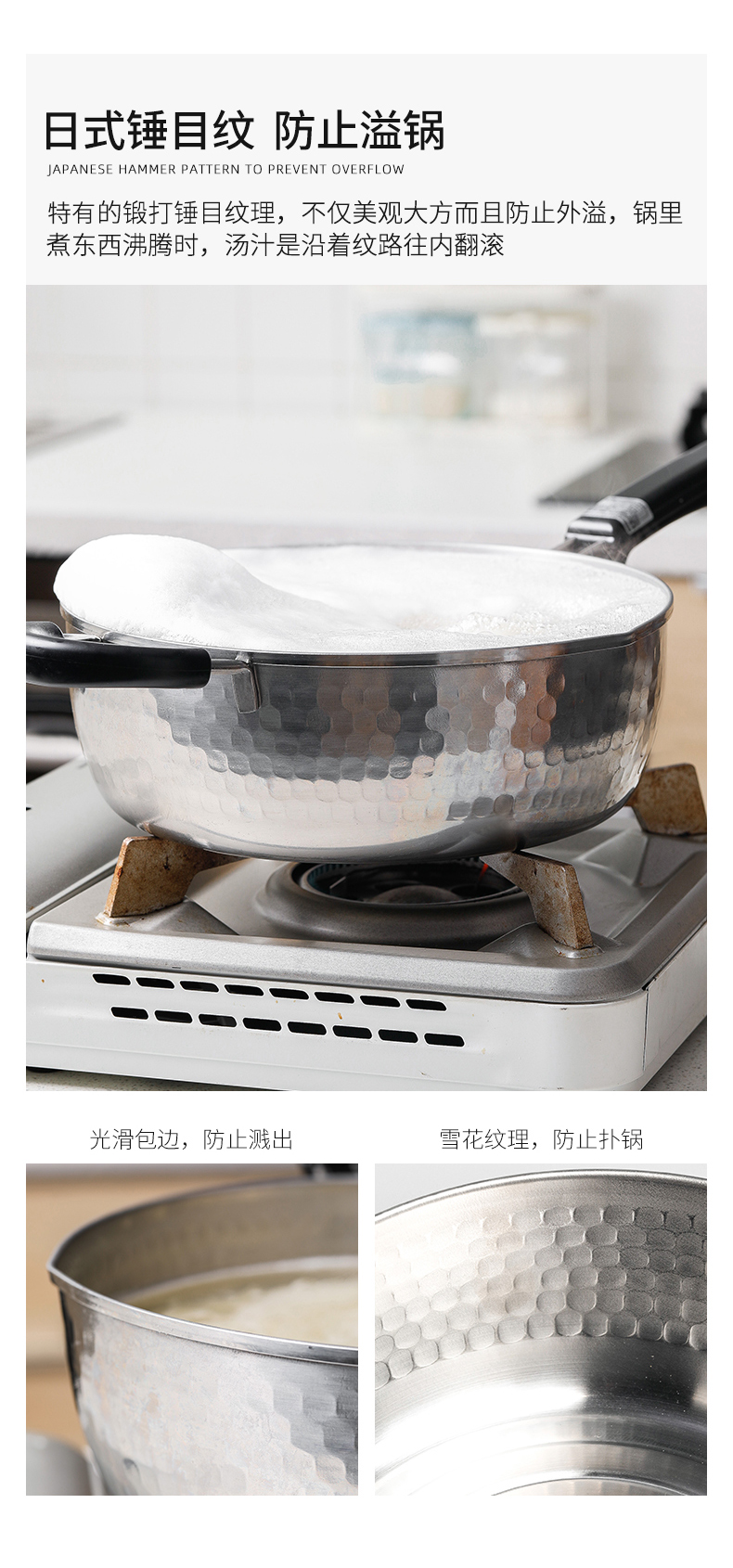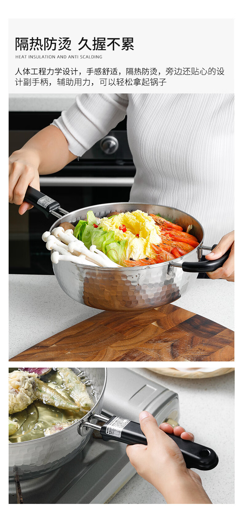 YOSHIKAWA 日本进口吉川雪平锅 不锈钢锅汤锅奶锅泡面煮面油炸锅树脂手柄24cm
