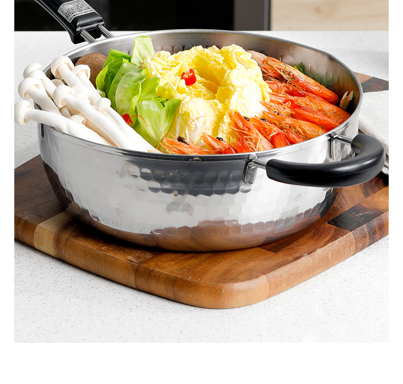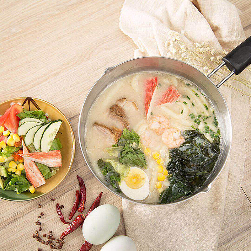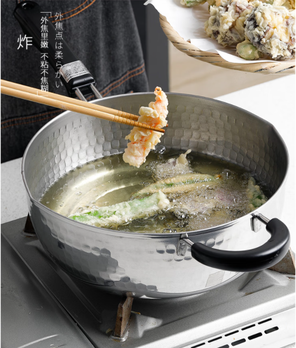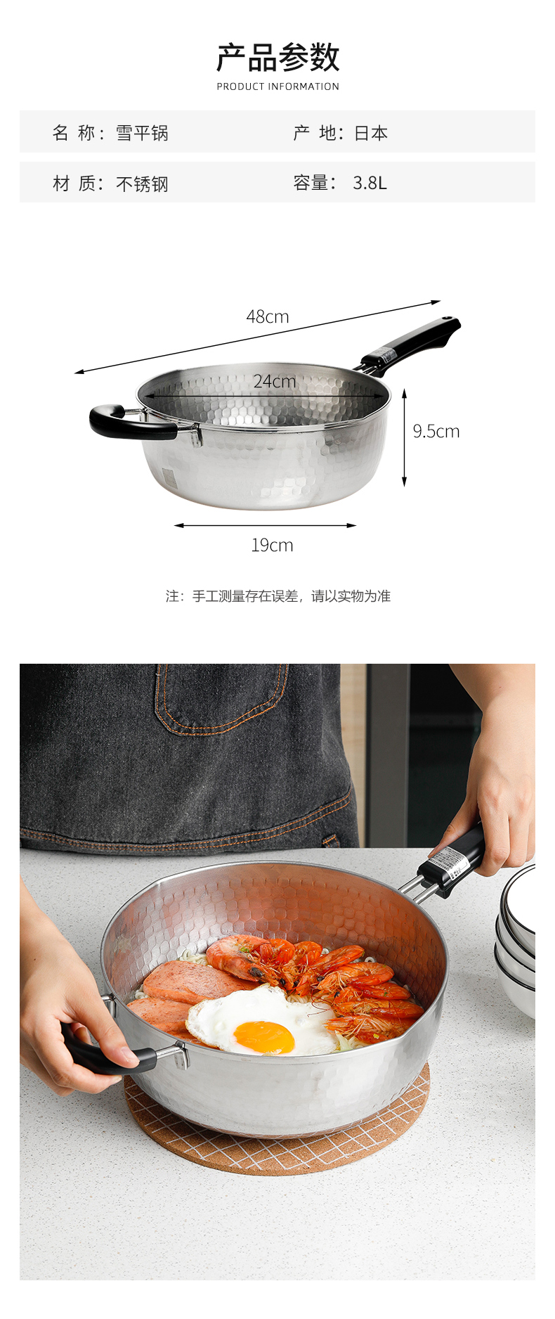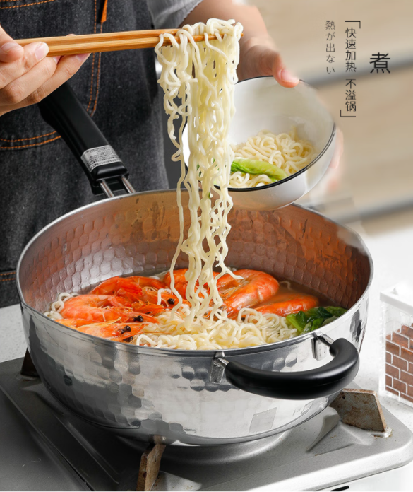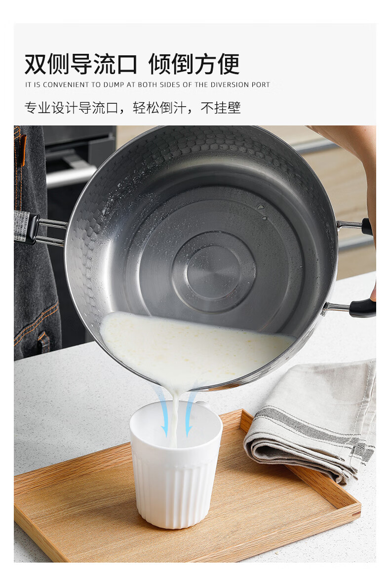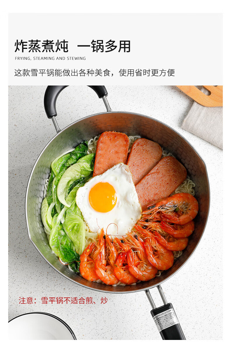 YOSHIKAWA 日本进口吉川雪平锅 不锈钢锅汤锅奶锅泡面煮面油炸锅树脂手柄24cm