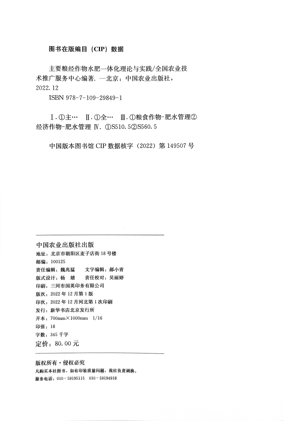 主要粮经作物水肥一体化理论与实践 全国农业技术推广服务中心 粮食作物 肥水管理 经济作物 29849