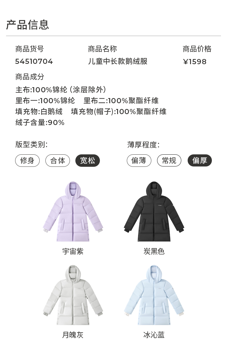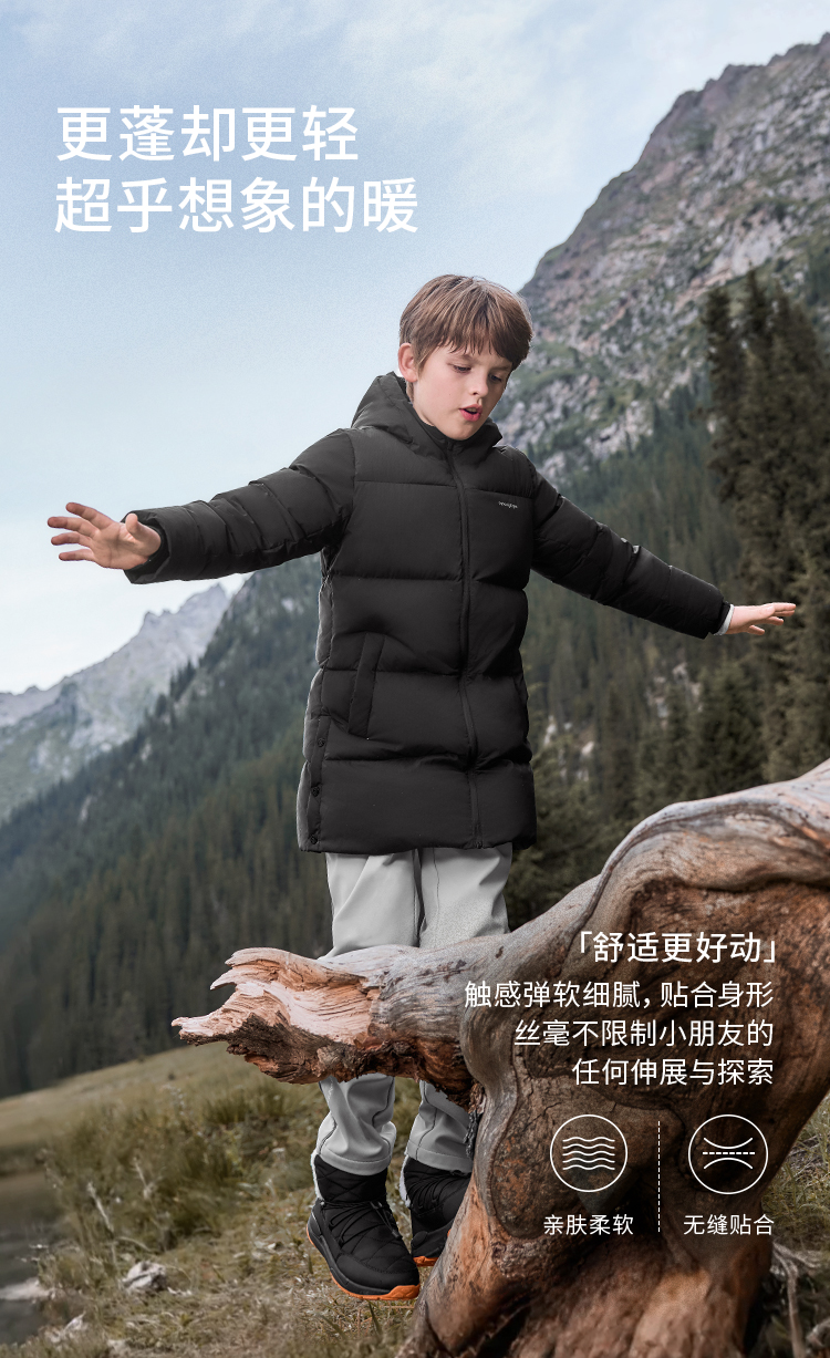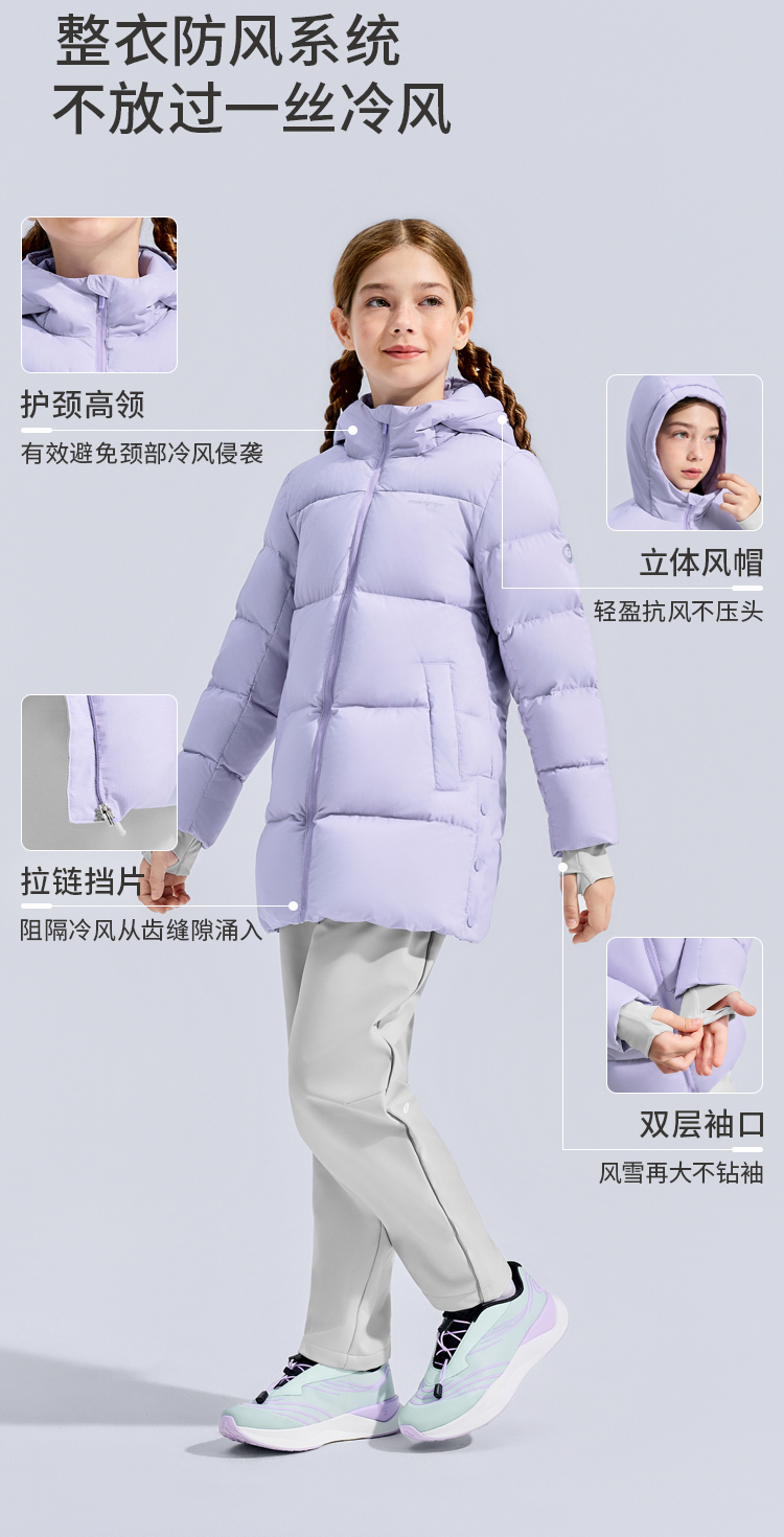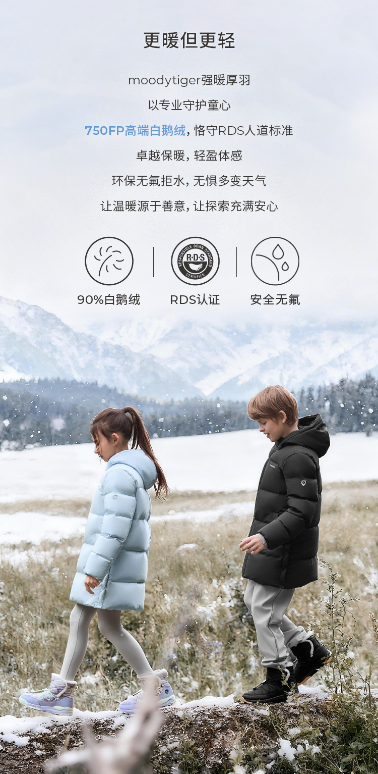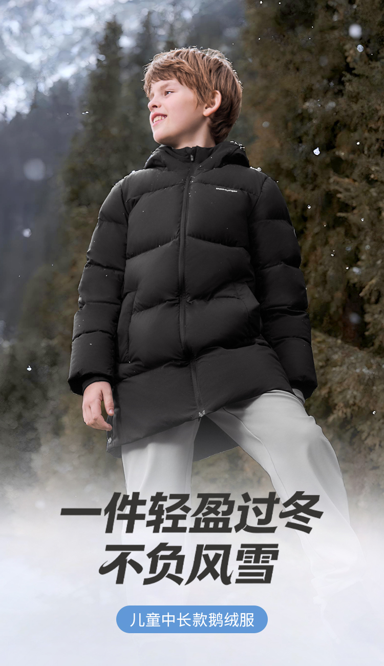 【大J专属】moodytiger男女童中长款鹅绒服冬季保暖防风拒水外套54510704