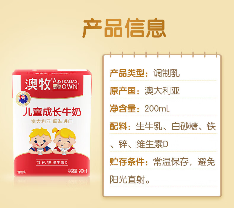 澳牧儿童牛奶 200ml*15/提