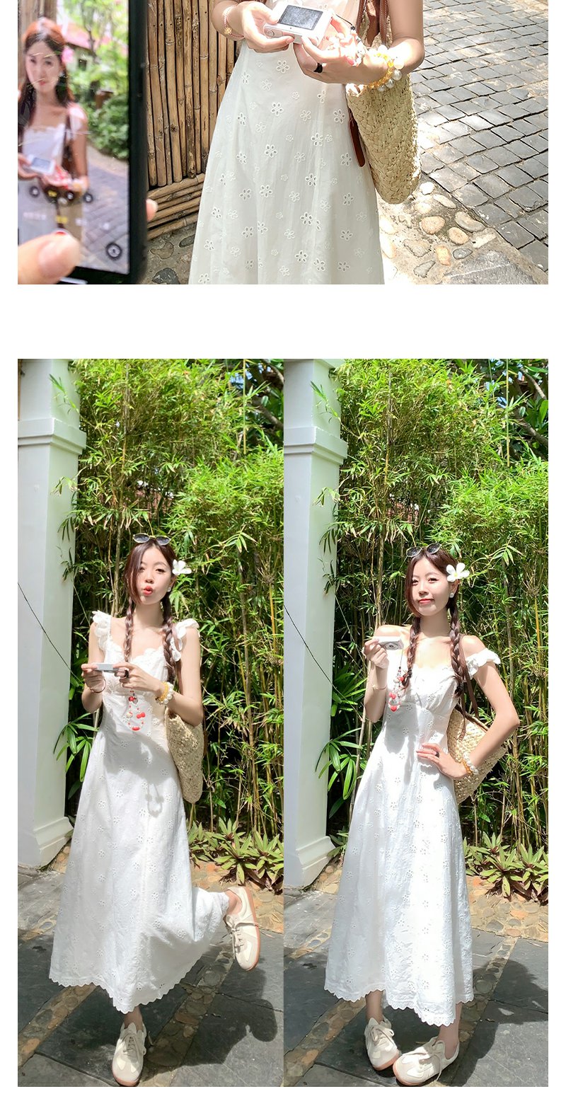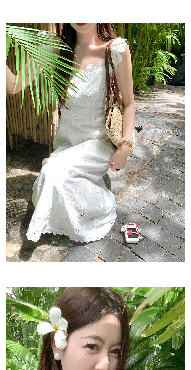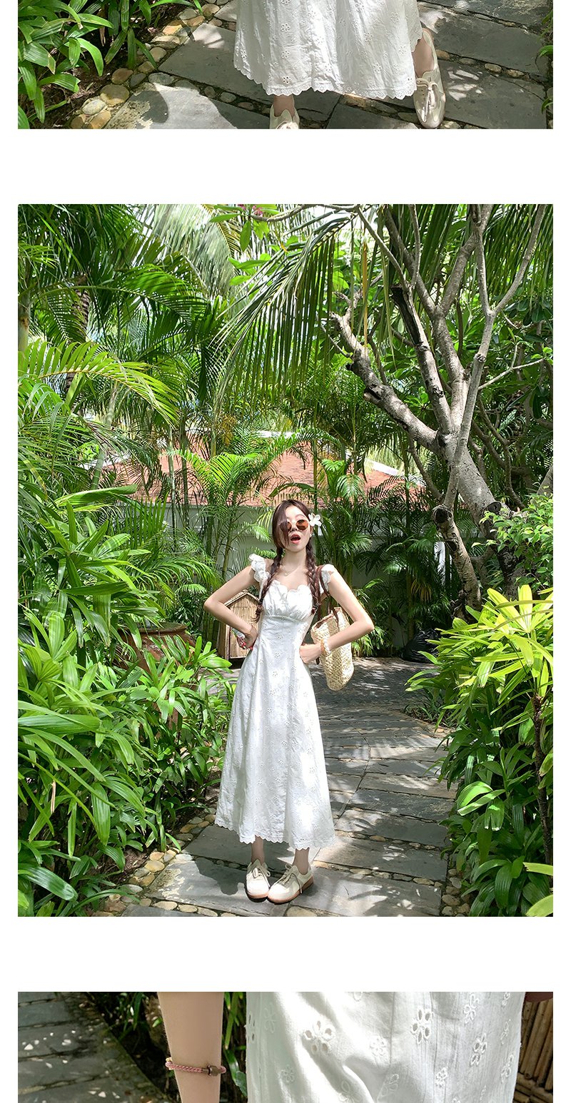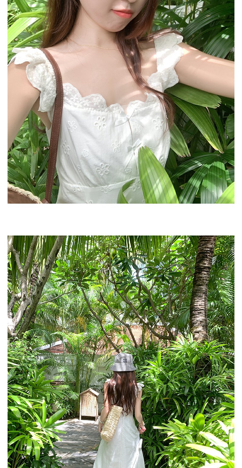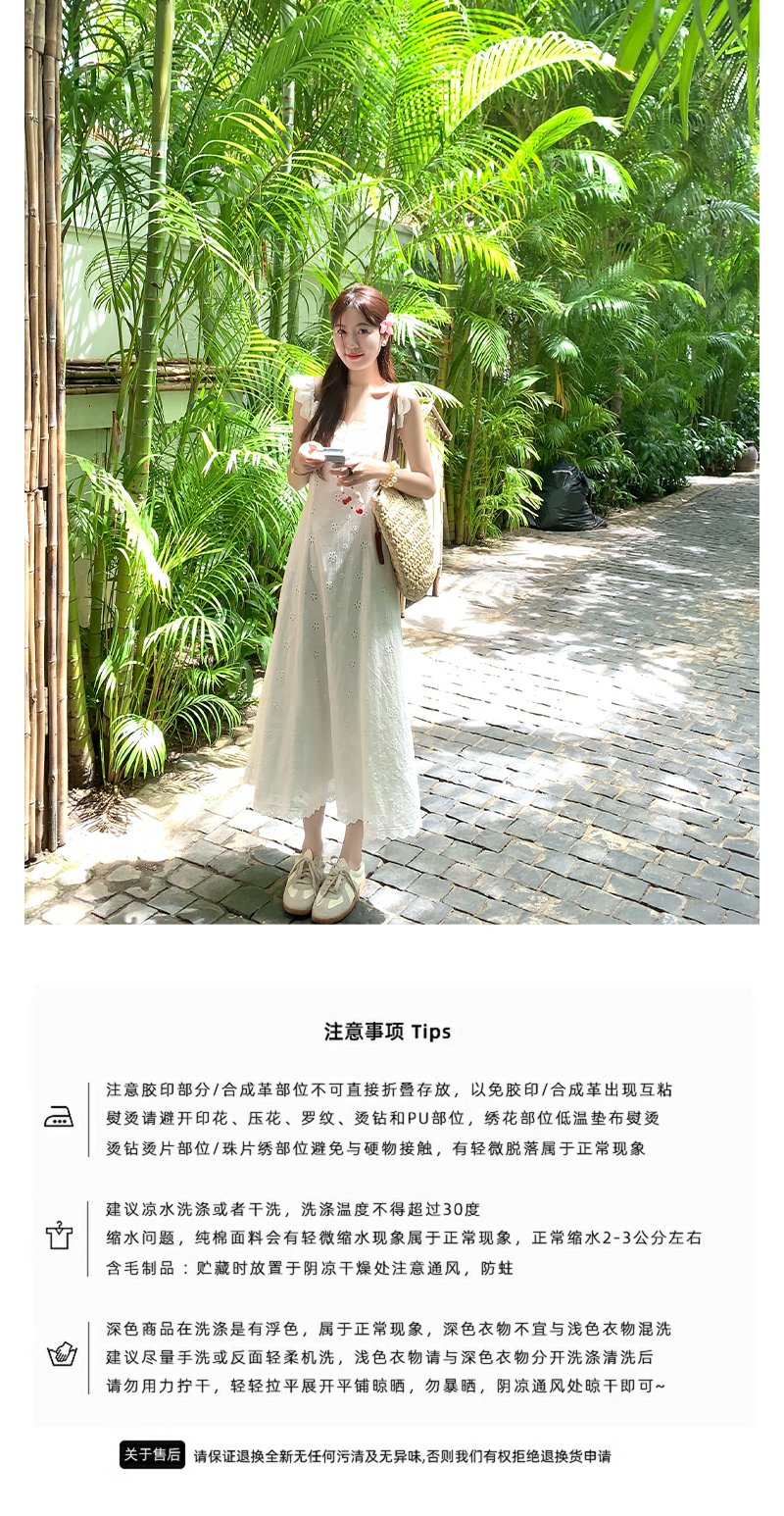 <曾小咸推荐>镂空肌理刺绣蕾丝小飞袖连衣裙