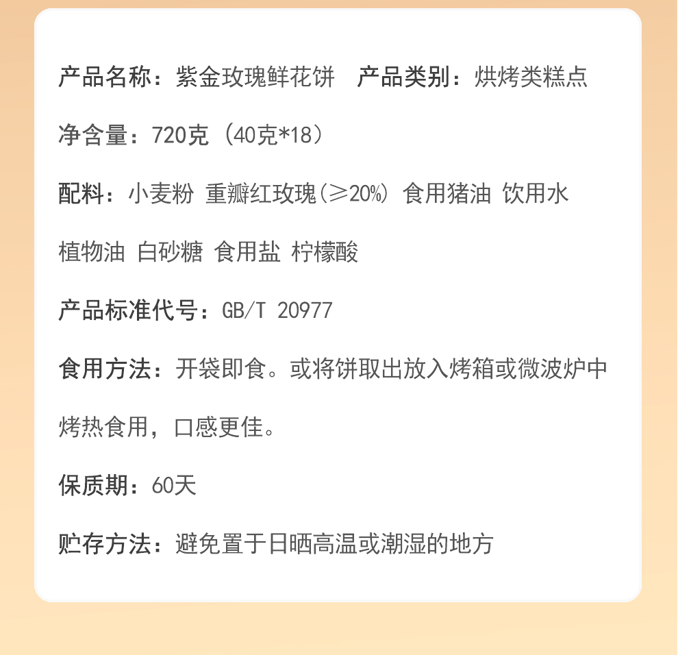 紫金玫瑰鲜花饼40g*18枚硬礼盒