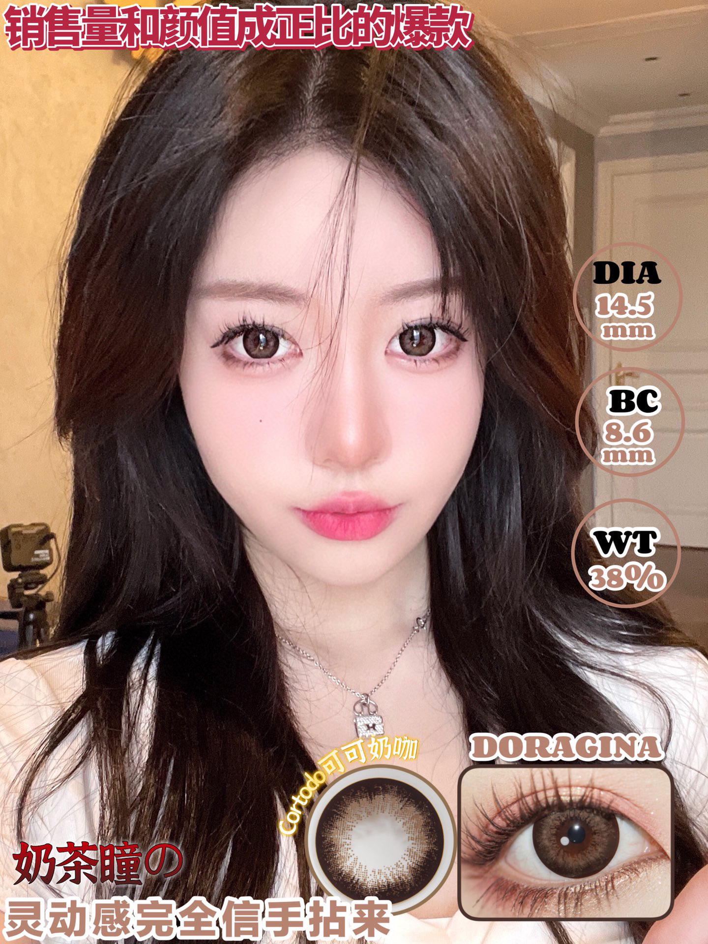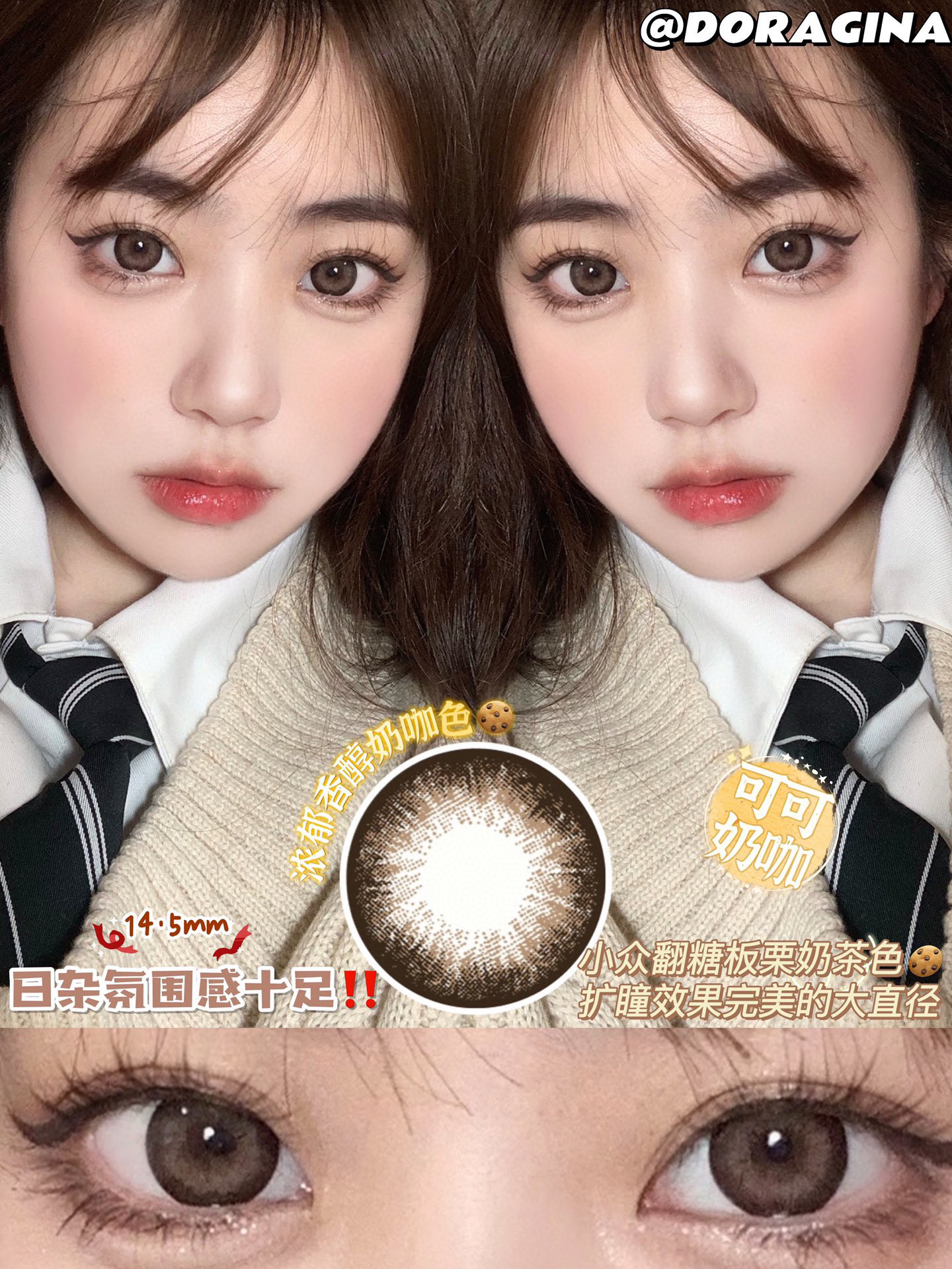 【年抛】可可奶咖Doragina| 大直径14.5,着色13.9 | 【同品牌多副更划算,选款完整色板在详情页】咖色美瞳