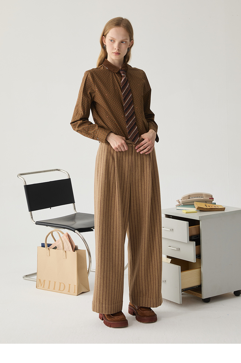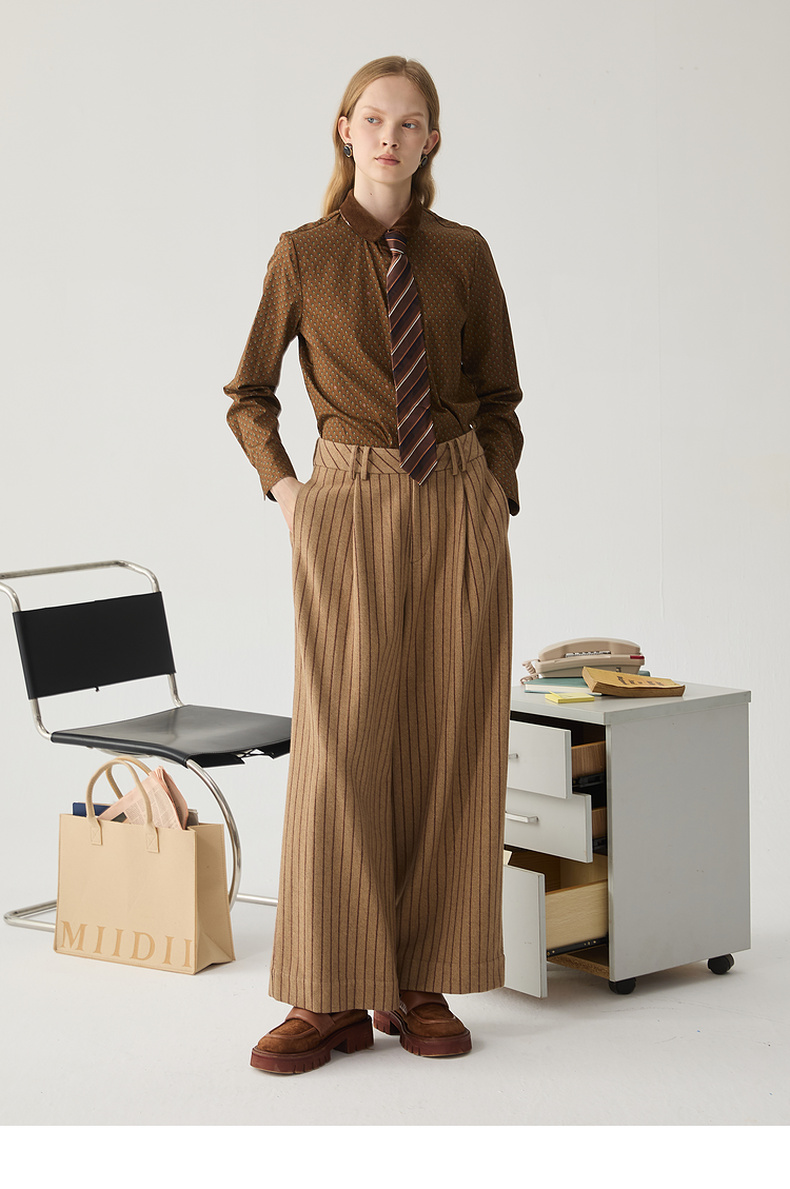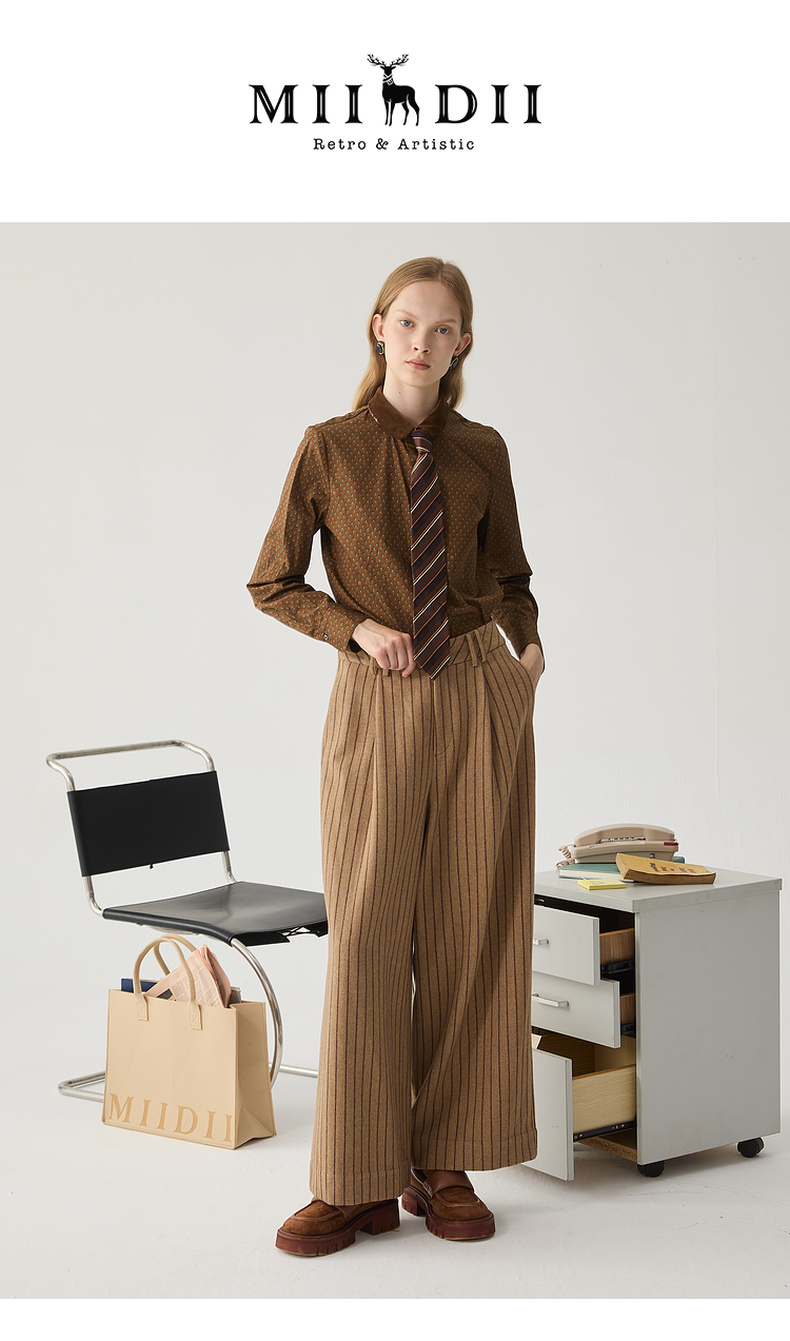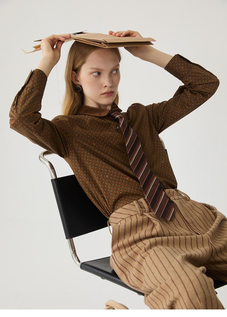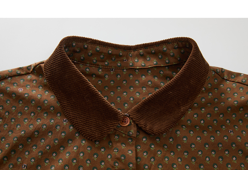 谜底灯芯绒衬衫长袖女2024冬季新品复古风波点印花衬衣244MC1560