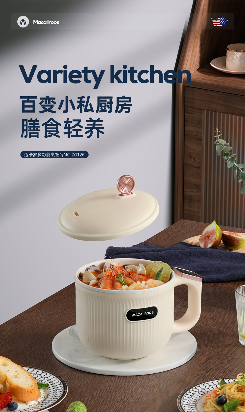 【小家电】迈卡罗MC-ZG126电煮锅多用途多功能电热锅 学生宿舍泡面火锅小电锅HF