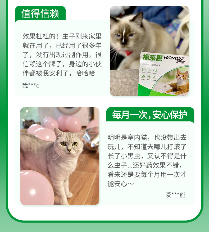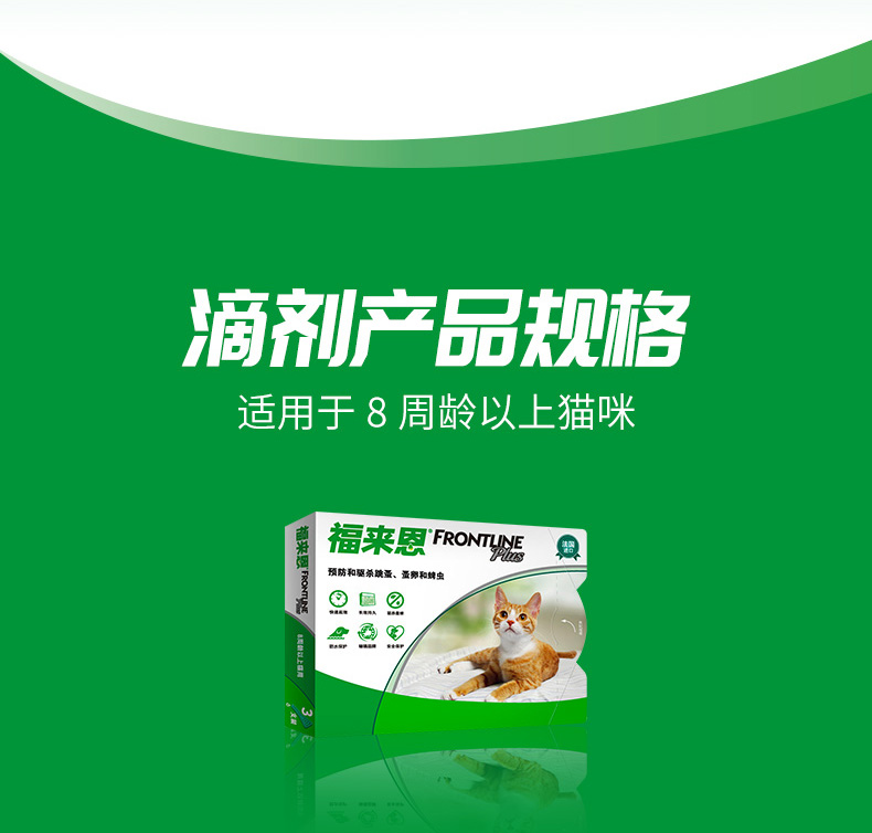 福来恩 猫咪体外驱虫 全阶段适用 整盒3支 原装有防伪